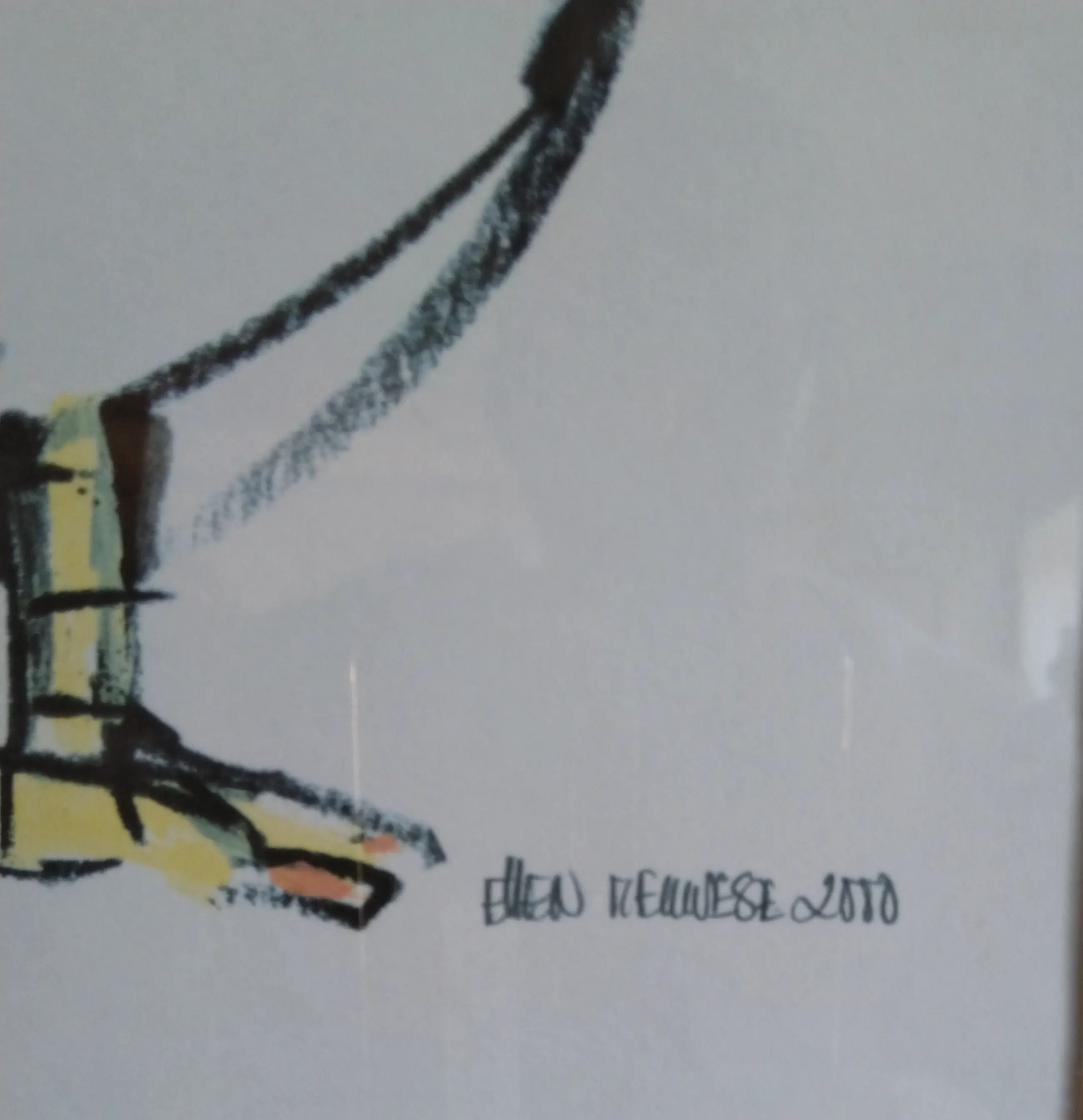 Prachtige zeefdruk in een typerende stijl van Ellen Meuwese, in zeer goede staat. Oplage niet vermeld, wellicht op de achterkant.