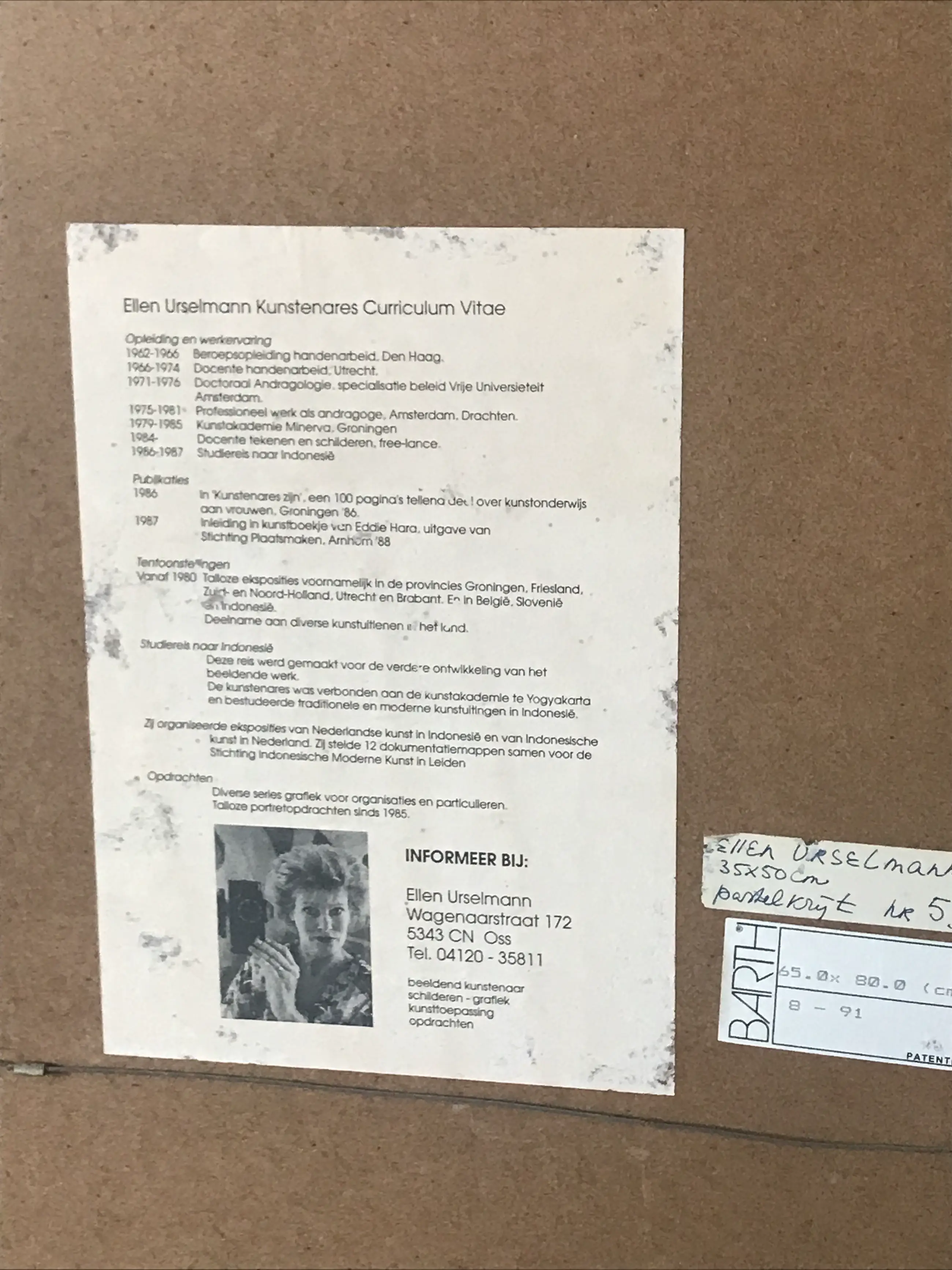 Het werk is af te halen op locatie. Als koper dient u zelf verpakkingsmateriaal mee te nemen. De locatie is: Papendrecht, Nederland