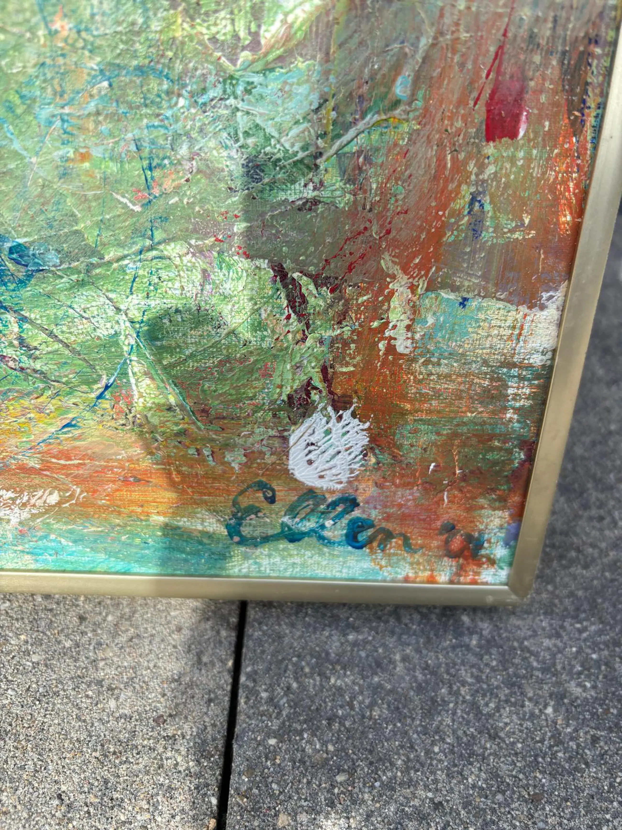 Het schilderij is gesigneerd en vertoont kenmerken die overeenkomen met het werk van de Nederlandse kunstenares Ellen van Stokkum. Wordt verkocht zonder certificaat, daarom aantrekkelijk geprijsd.