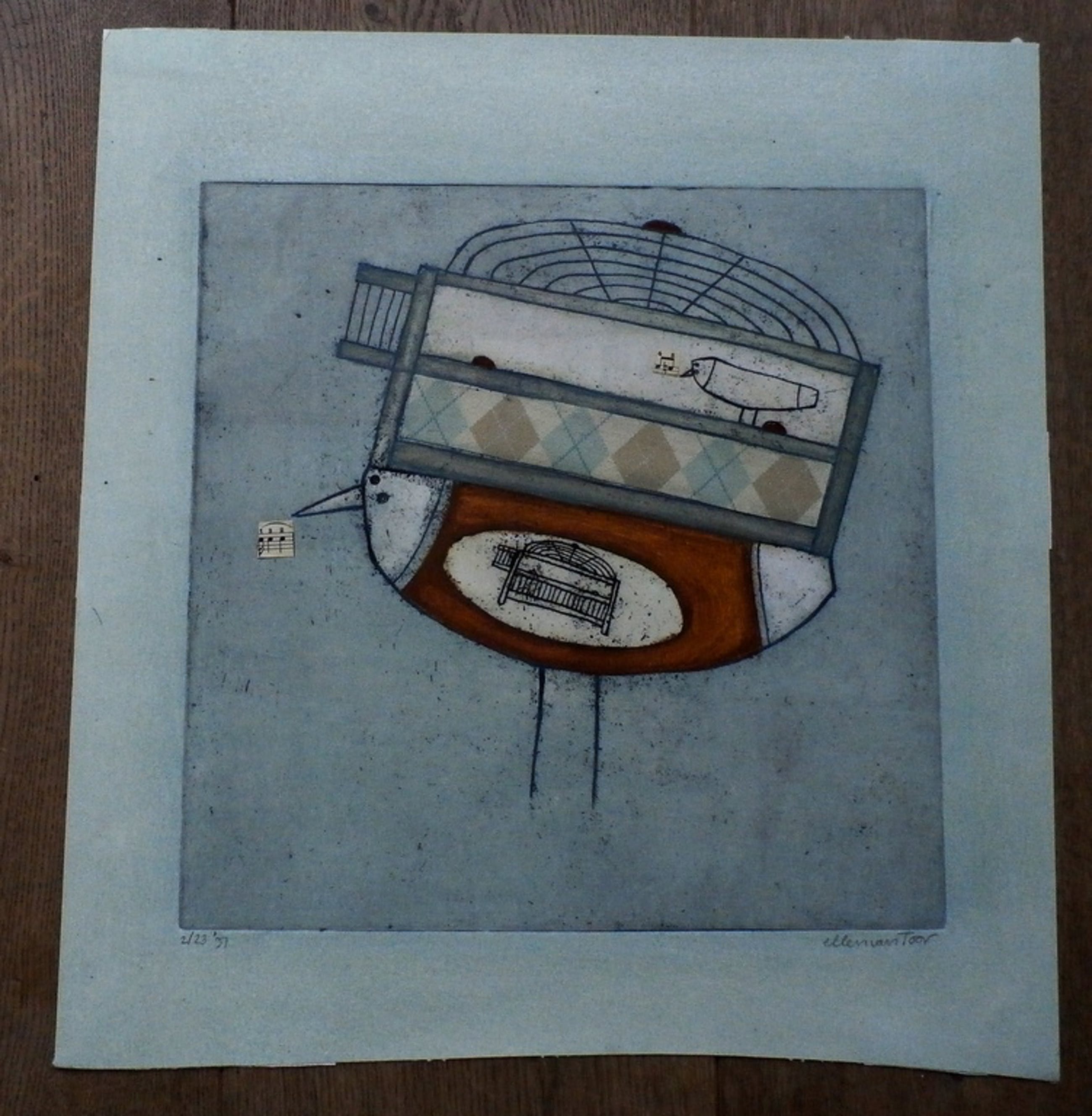 Ellen van Toor is een gedreven kunstenaar die op zoek is naar de oorsprong van de dingen in haar werk, creëert een eigen wereld van beelden deze gaan over vrijheid en beperking. Vogels en vissen bevolken haar fantasie wereld Met een enorme energie weet Ellen iedere keer opnieuw een variatie aan te brengen in haar onderwerpen Opvallend is het materiaalgebruik,bij voorkeur gebruikt ze gevonden verweerde materialen waar een verhaal achter zit zoals veertjes, kantjes,stukken behang, oude schoenen en geroeste voorwerpen, ze maakt boeiende ondergronden van modder vermengd met houtlijm waar ze structuren in aan brengt. Ellen maakt etsen, collages , schilderijen,objecten en sieraden. Haar titels zijn een speelse toevoeging aan de werken met de bedoeling de verbeelding van de toeschouwer te prikkelen en te ontroeren. Ellen's werk is te zien op beurzen, in galeries en musea in binnen en buitenland