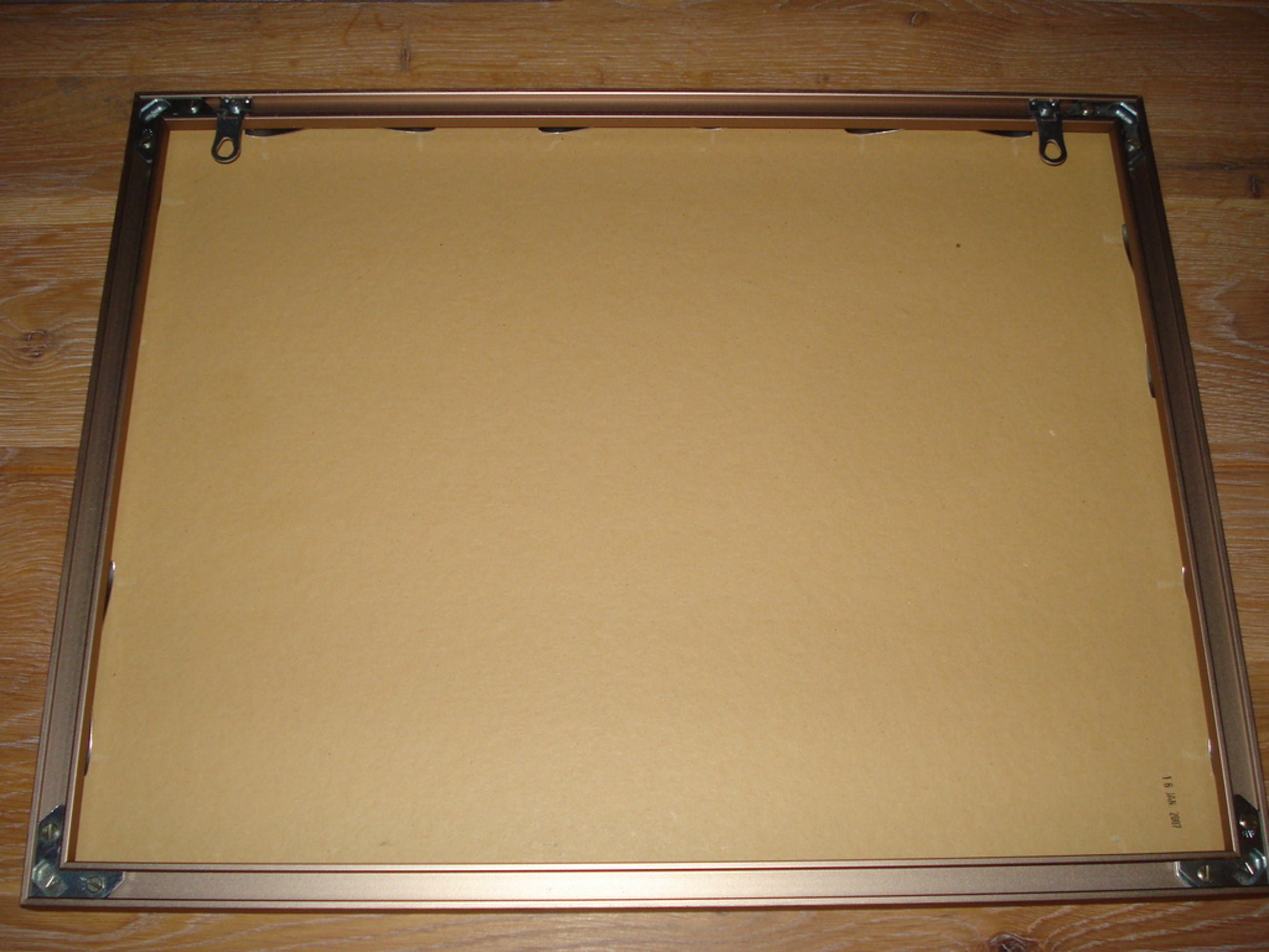 Ingelijst in bronskleurige aluminium wissellijst.