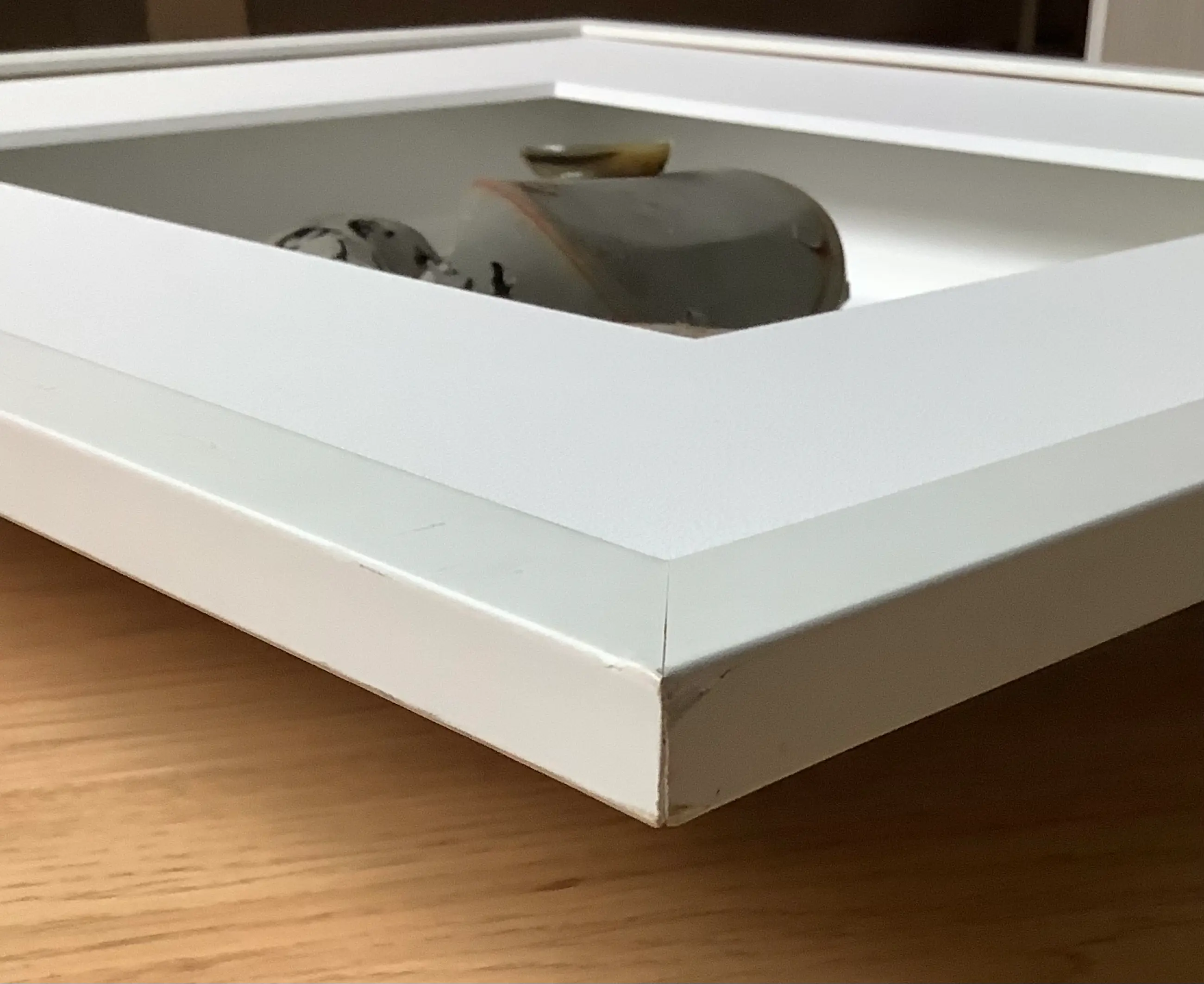 Betreft speciaal voor deze collage gemaakte houten witte lijst/kast.