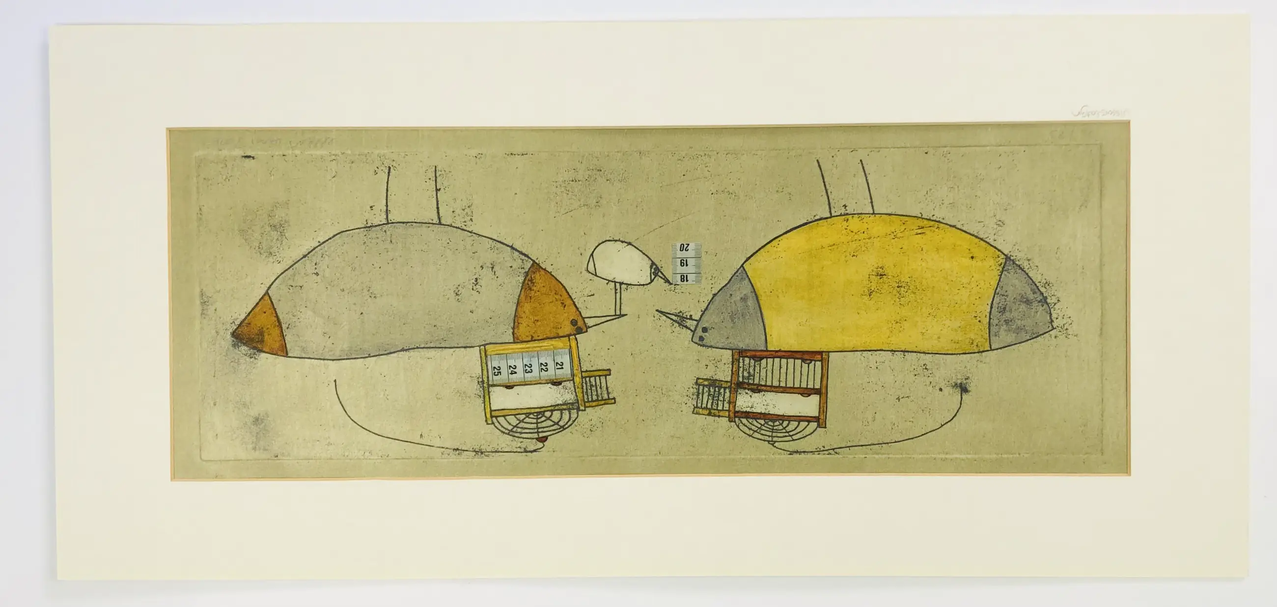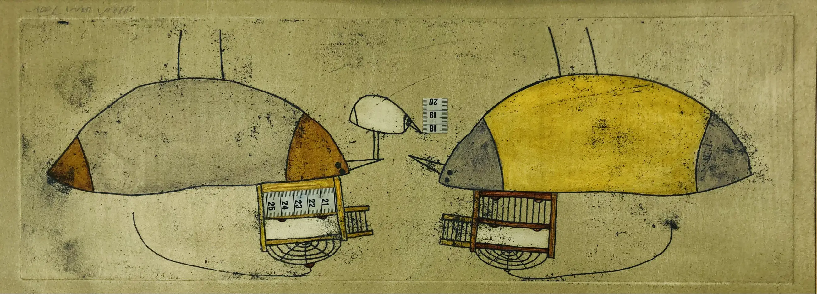 Ets met collagetechniek van Ellen van Toor (1958) Gesigneerd met potlood.