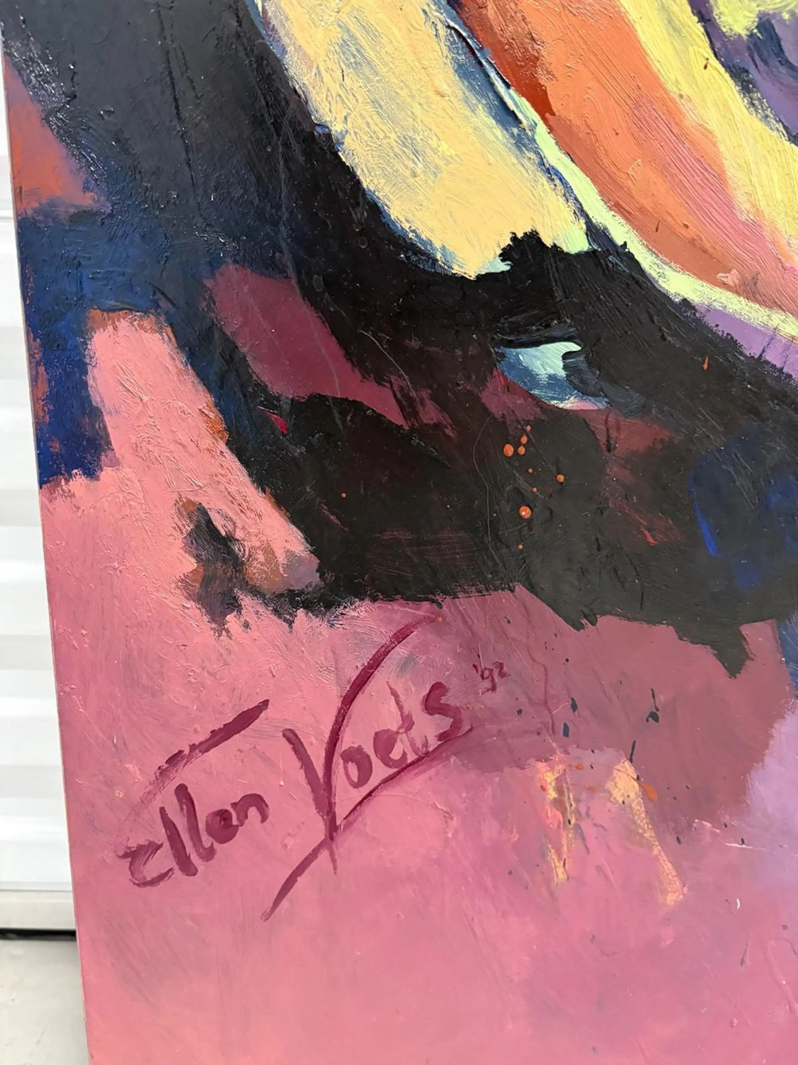Het gebruik van olieverf op paneel versterkt de diepte en textuur van het schilderij. De zichtbare penseelvoering geeft beide zijden een tactiele, bijna sculpturale kwaliteit. Met een totaalformaat van 166 × 150 cm heeft het werk een monumentale aanwezigheid, terwijl de verticale panelen zorgen voor ritme en balans binnen de compositie.
