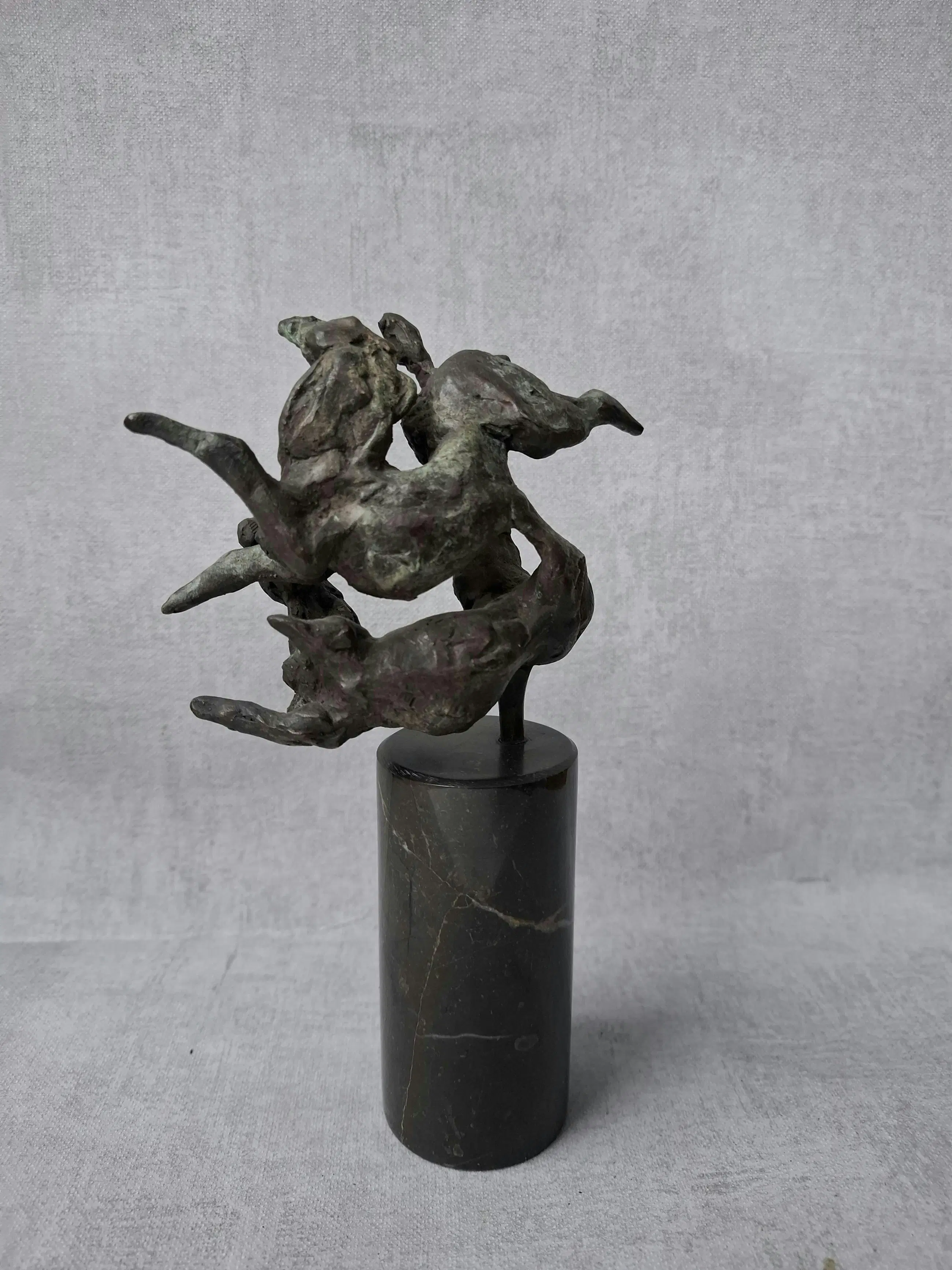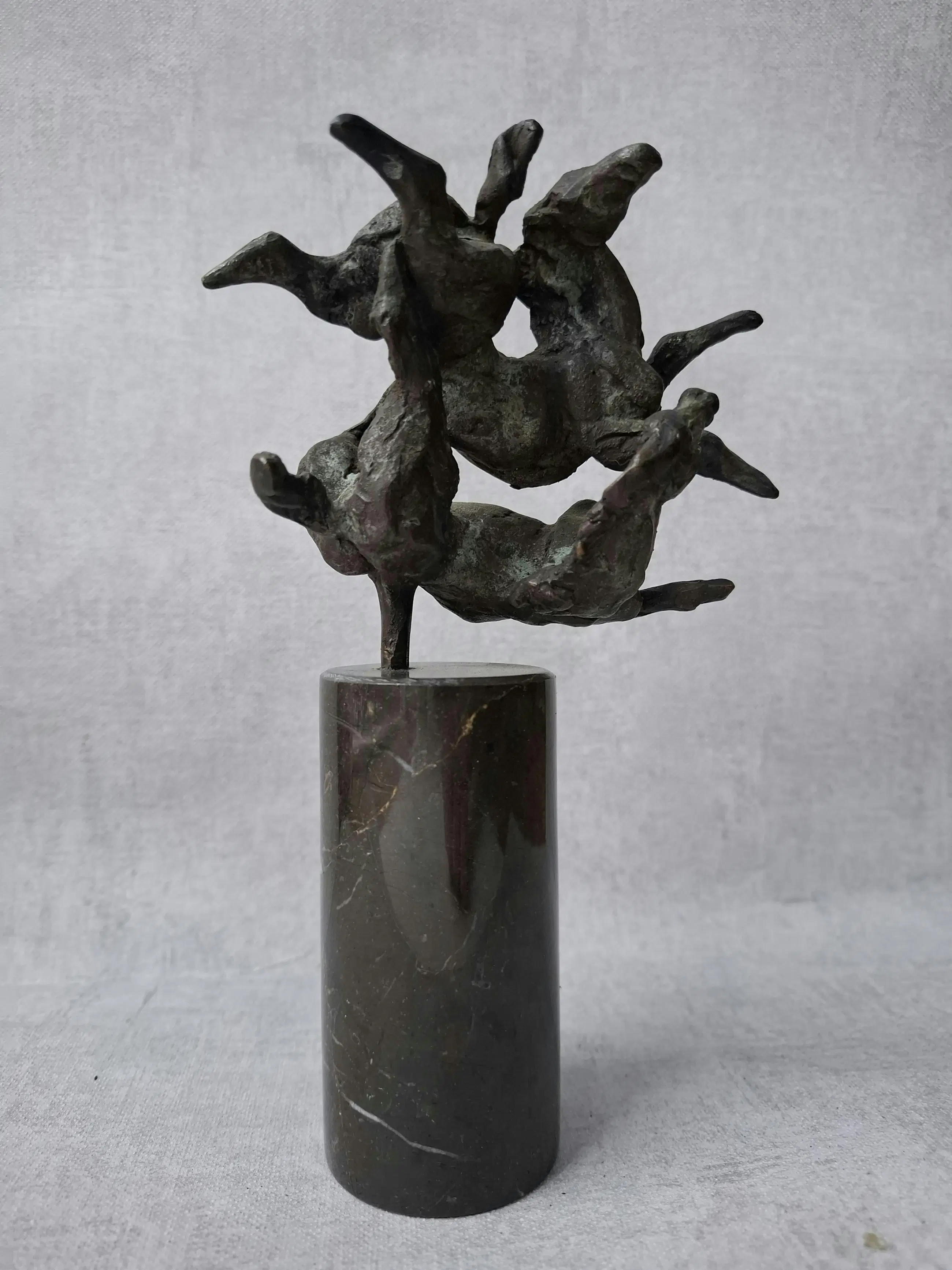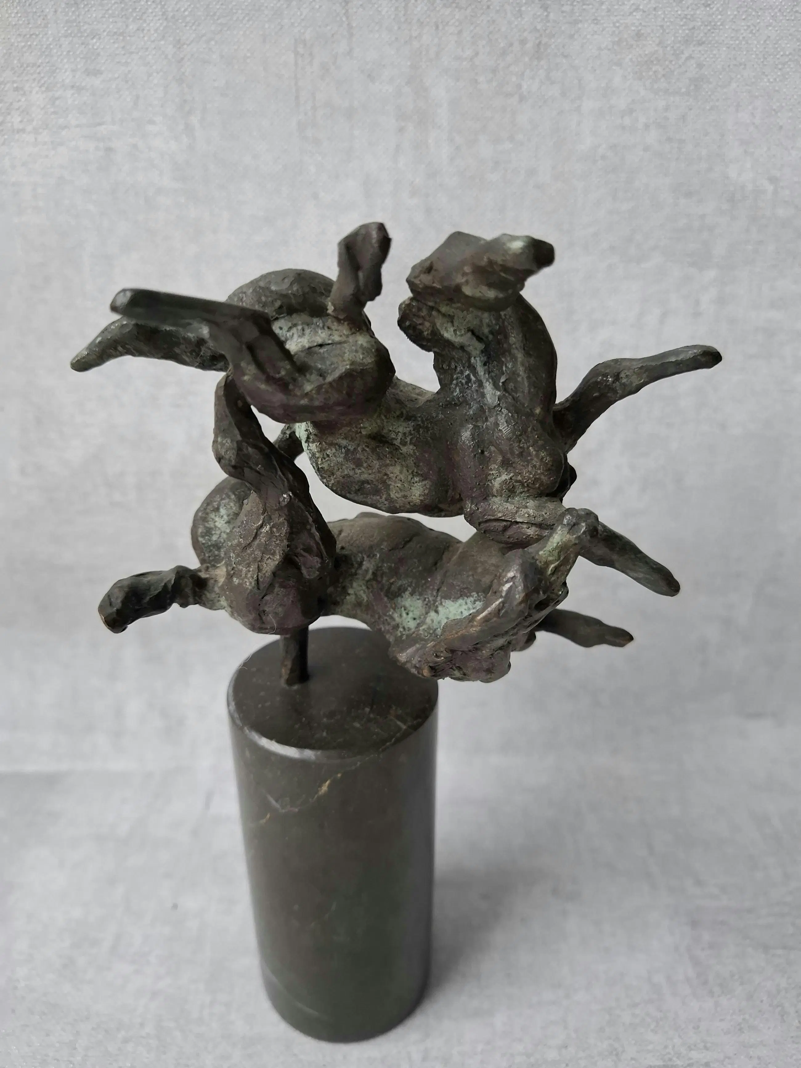 Mooi werk van Ellen van Welten. Genaamd vreugde spel. Op een ronde marmeren sokkel. Unicum.