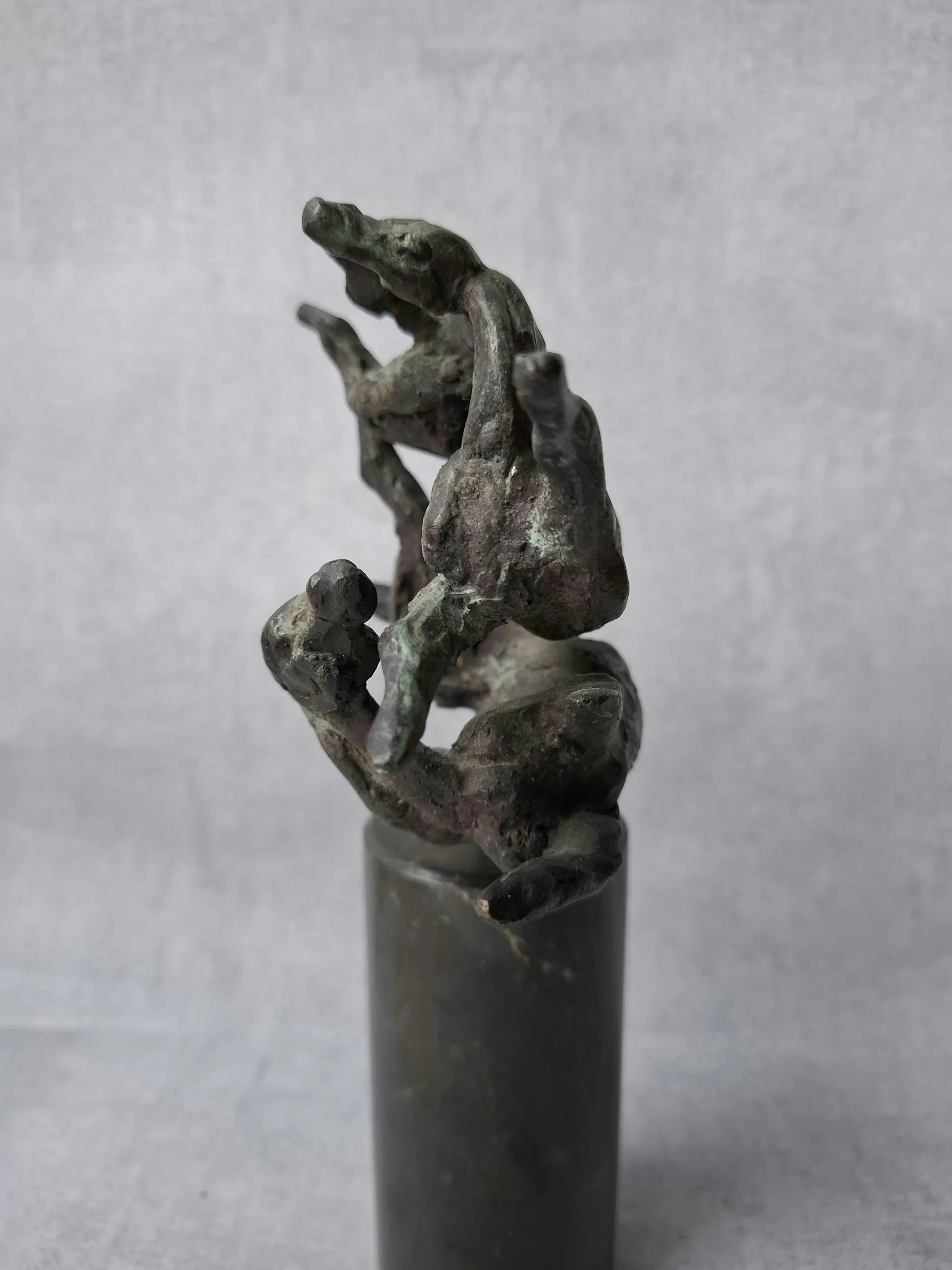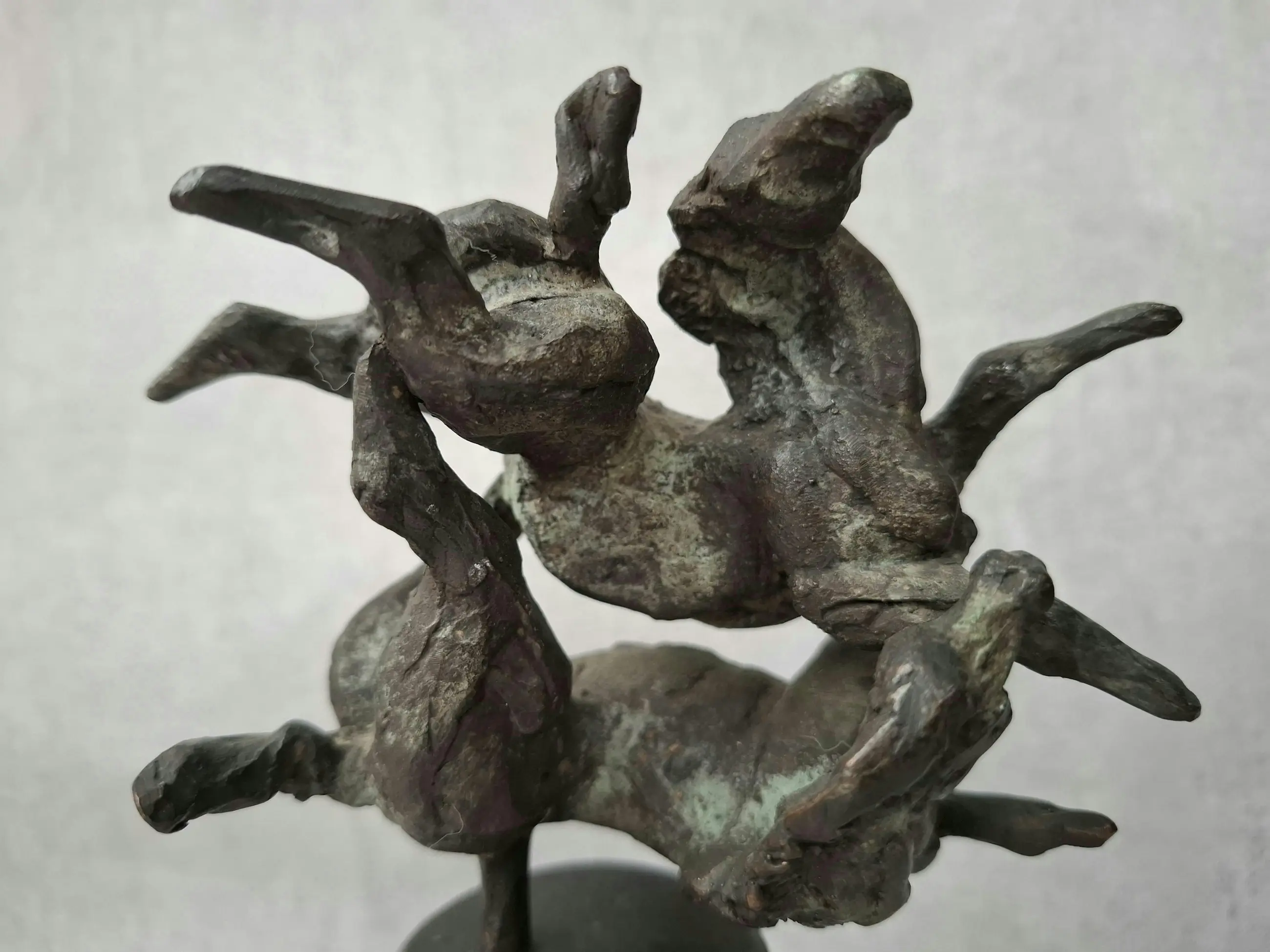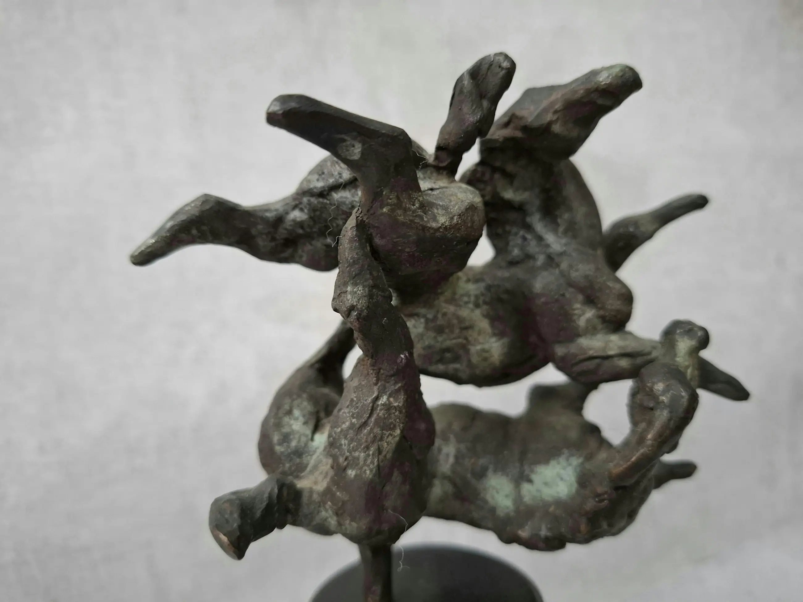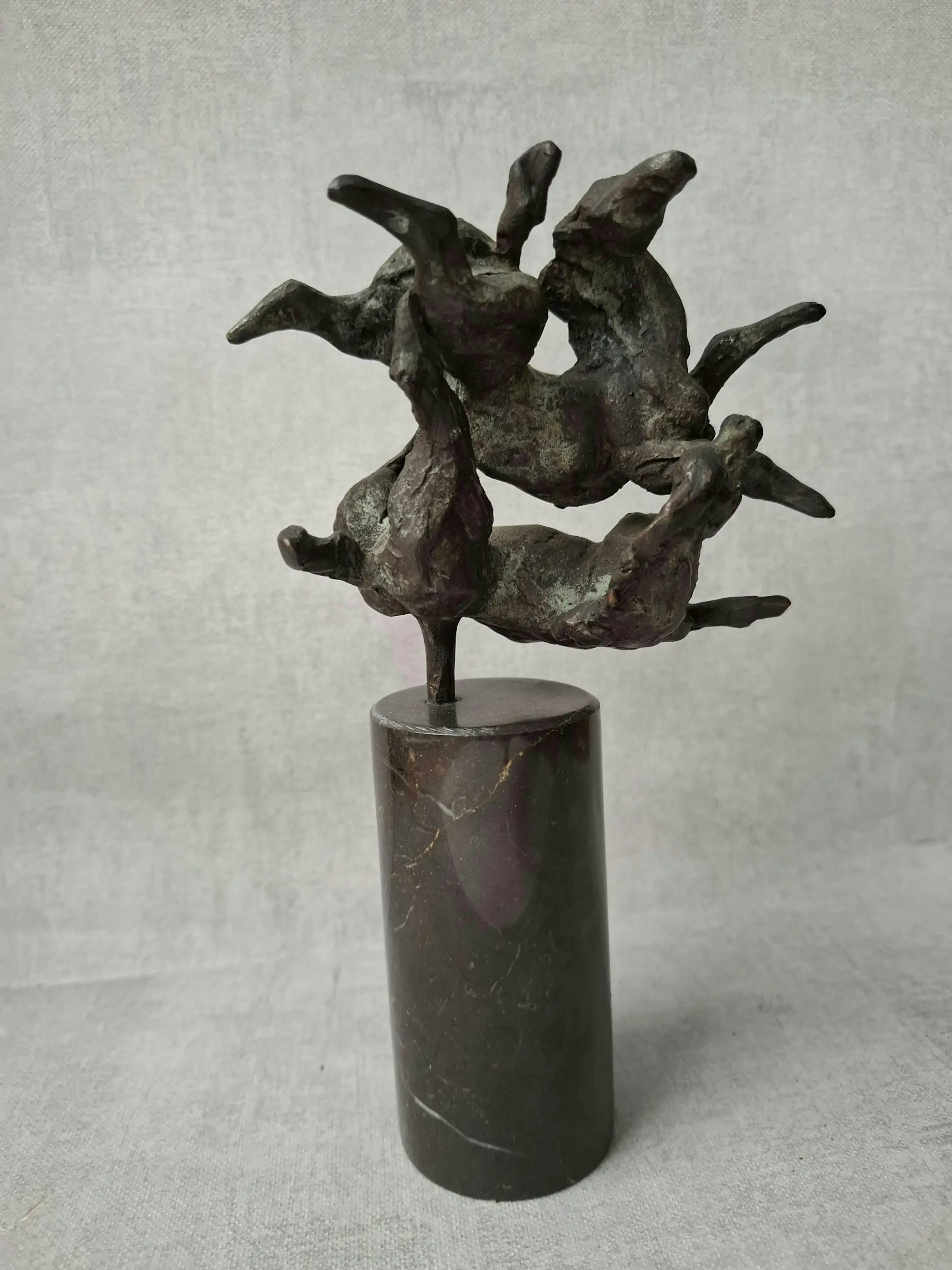 Mooi werk van Ellen van Welten. Genaamd vreugde spel. Op een ronde marmeren sokkel. Unicum.