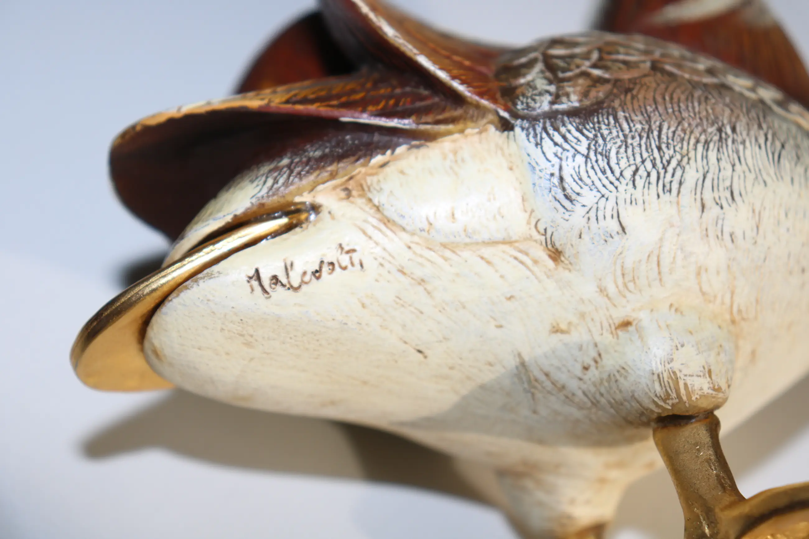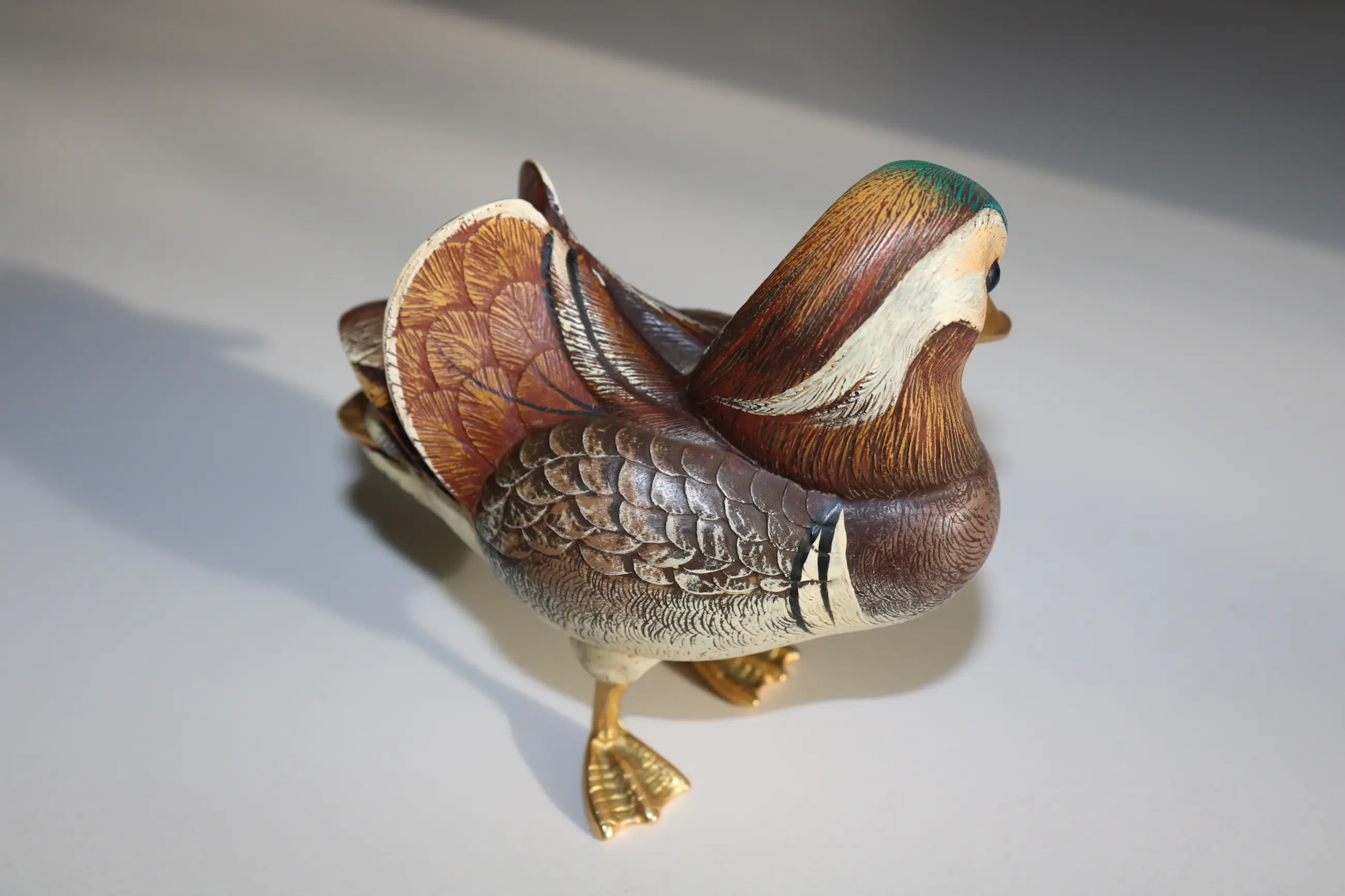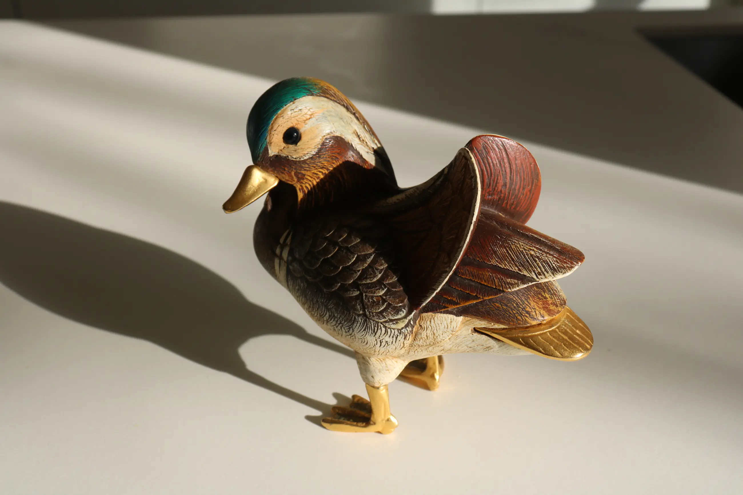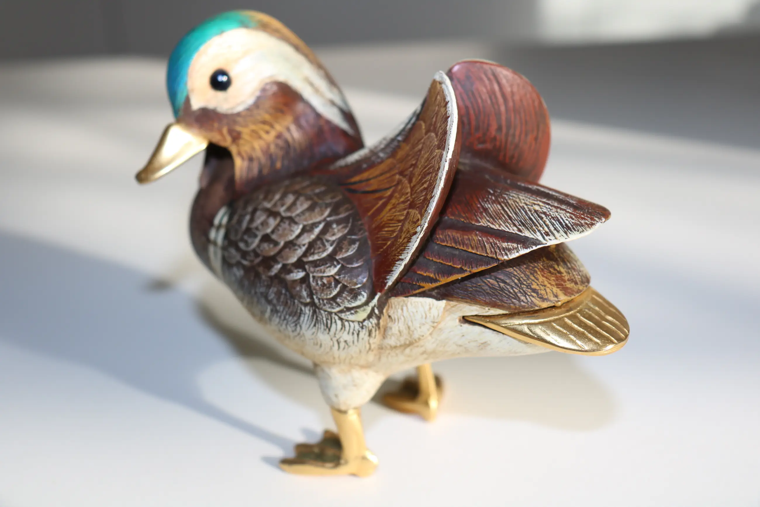 Opvallende set schattige handgemaakte eendjes ontworpen door Elli Malevolti uit Italië. Met glazen ogen. Poten, snavels en staarten zijn gemaakt van messing. Dit zijn verzamelaarsstukken.