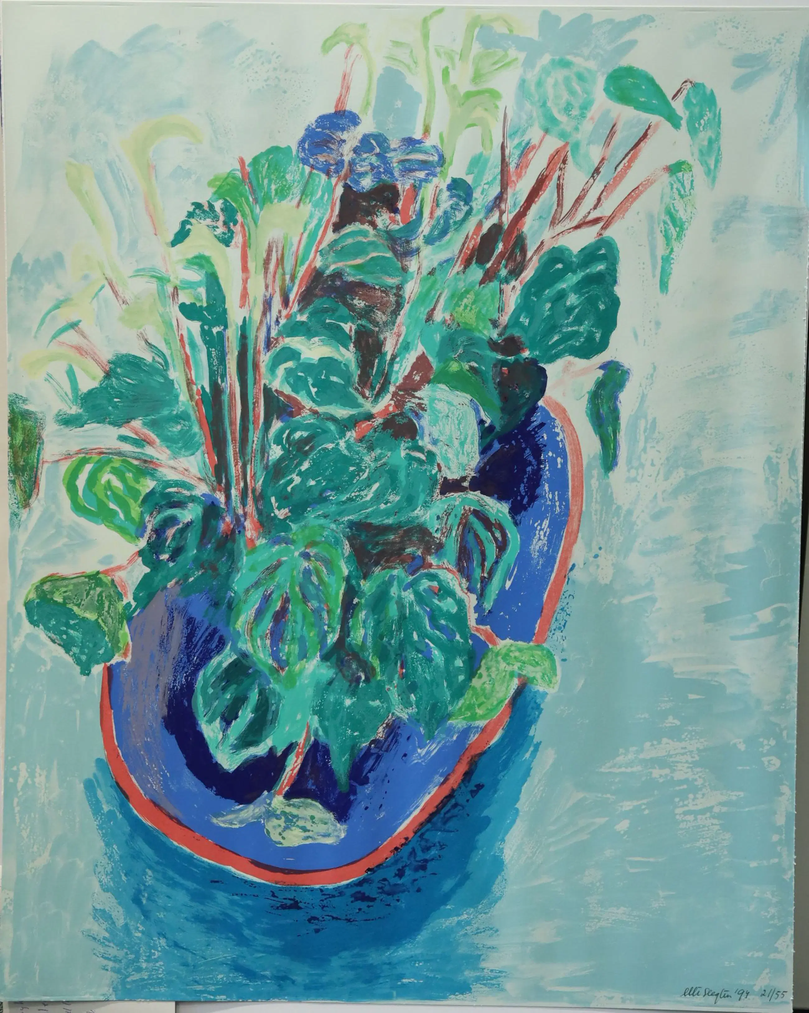 Een originele zeefdruk van Elli Slegten oplage 21/55 uit 1994. Abstract kleurrijk bloemstuk