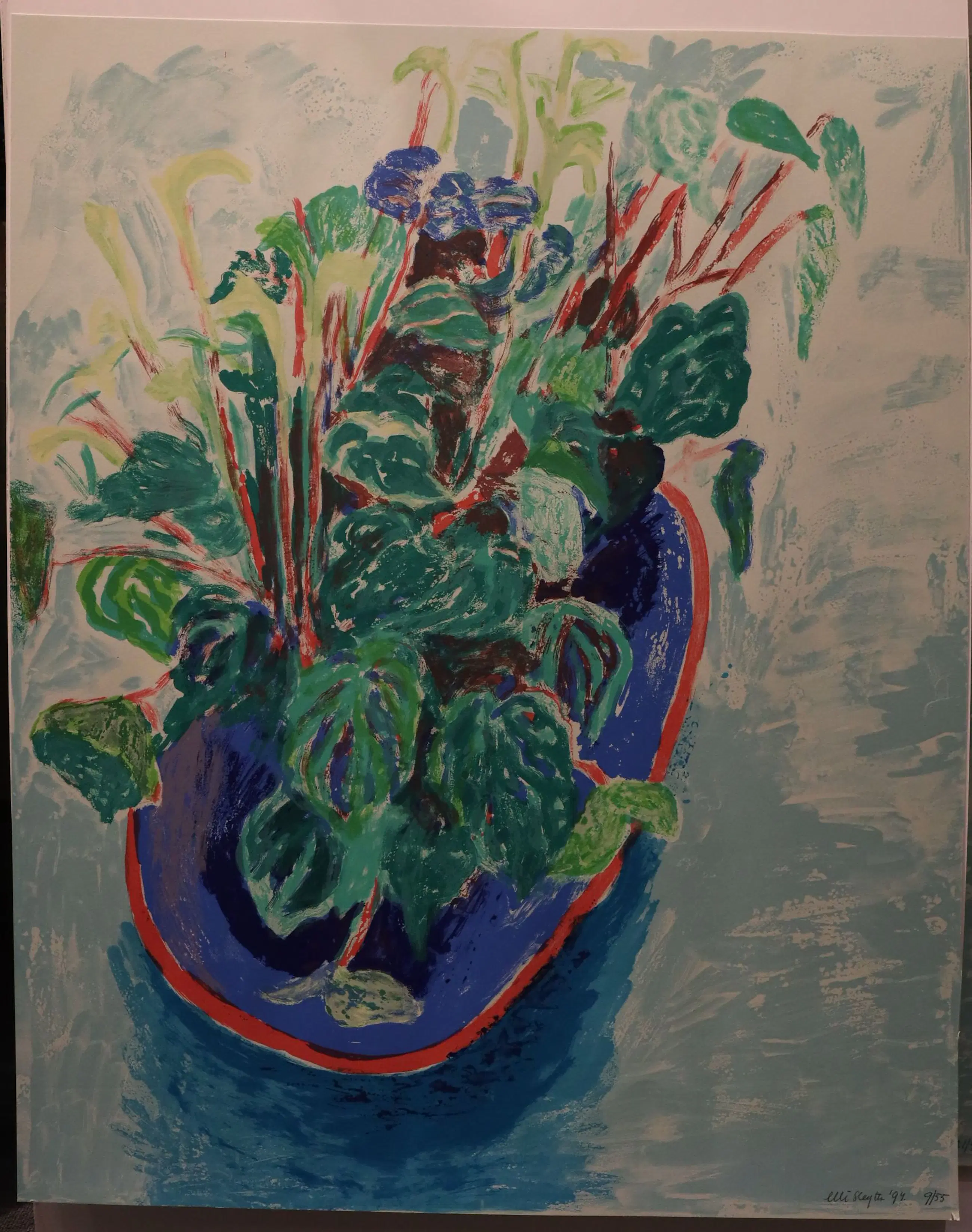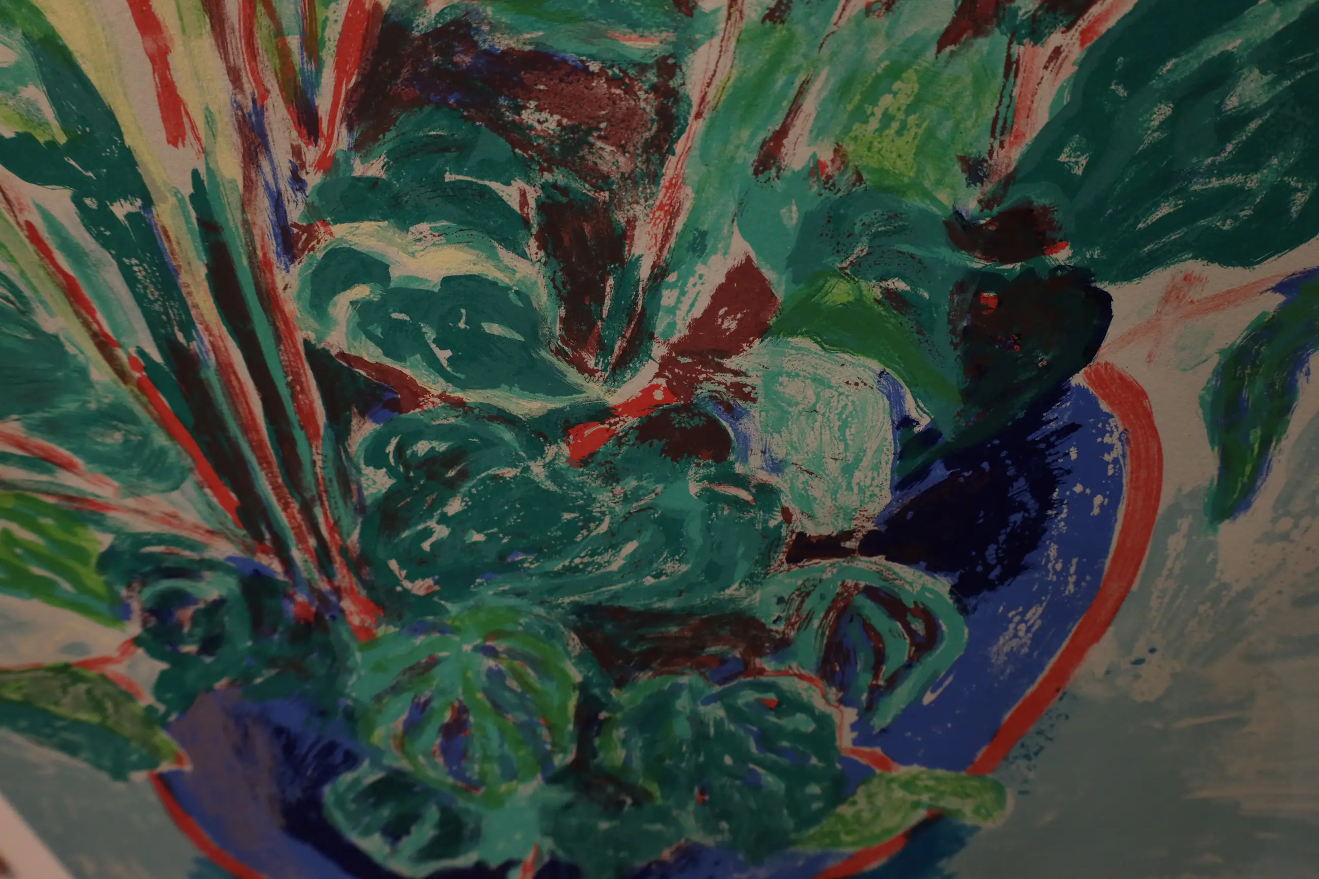 Een originele zeefdruk van Elli Slegten oplage 9/55 uit 1994. Abstract kleurrijk bloemstuk