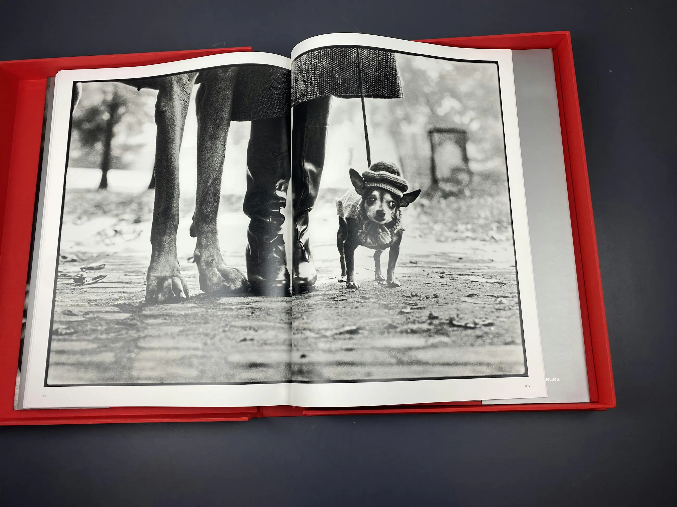 Deze gelimiteerde editie bevat enkele van zijn meest memorabele werken. Van zijn beeld van Marilyn in die witte jurk tot zijn portret van een geklede chihuahua in verhouding tot een paar vrouwenbenen of dat van een Duitse Dog – in alle gevallen was het Erwitts feilloze gevoel voor timing en zijn oog voor het opmerkelijke die het werk uniek maakten.