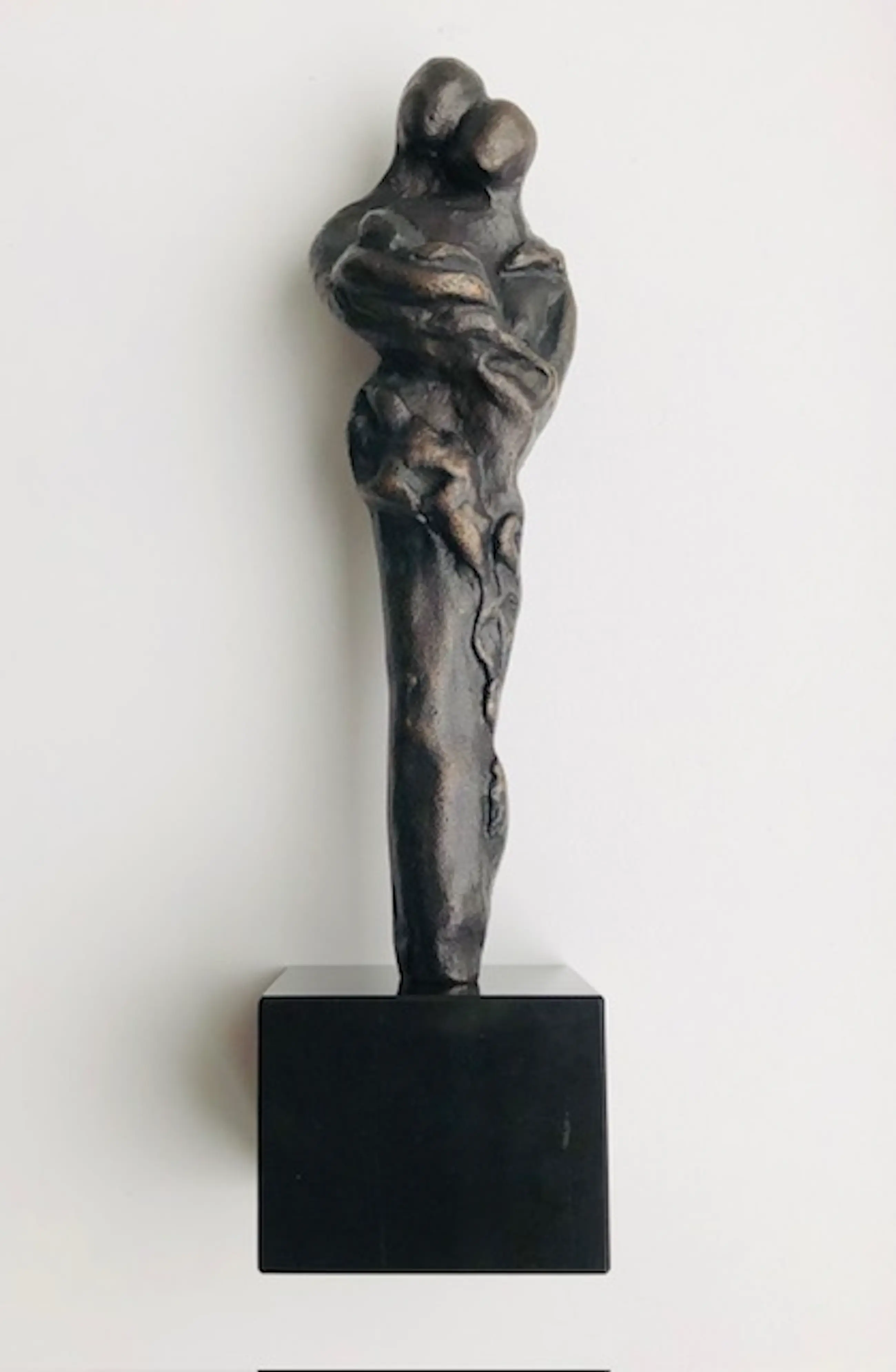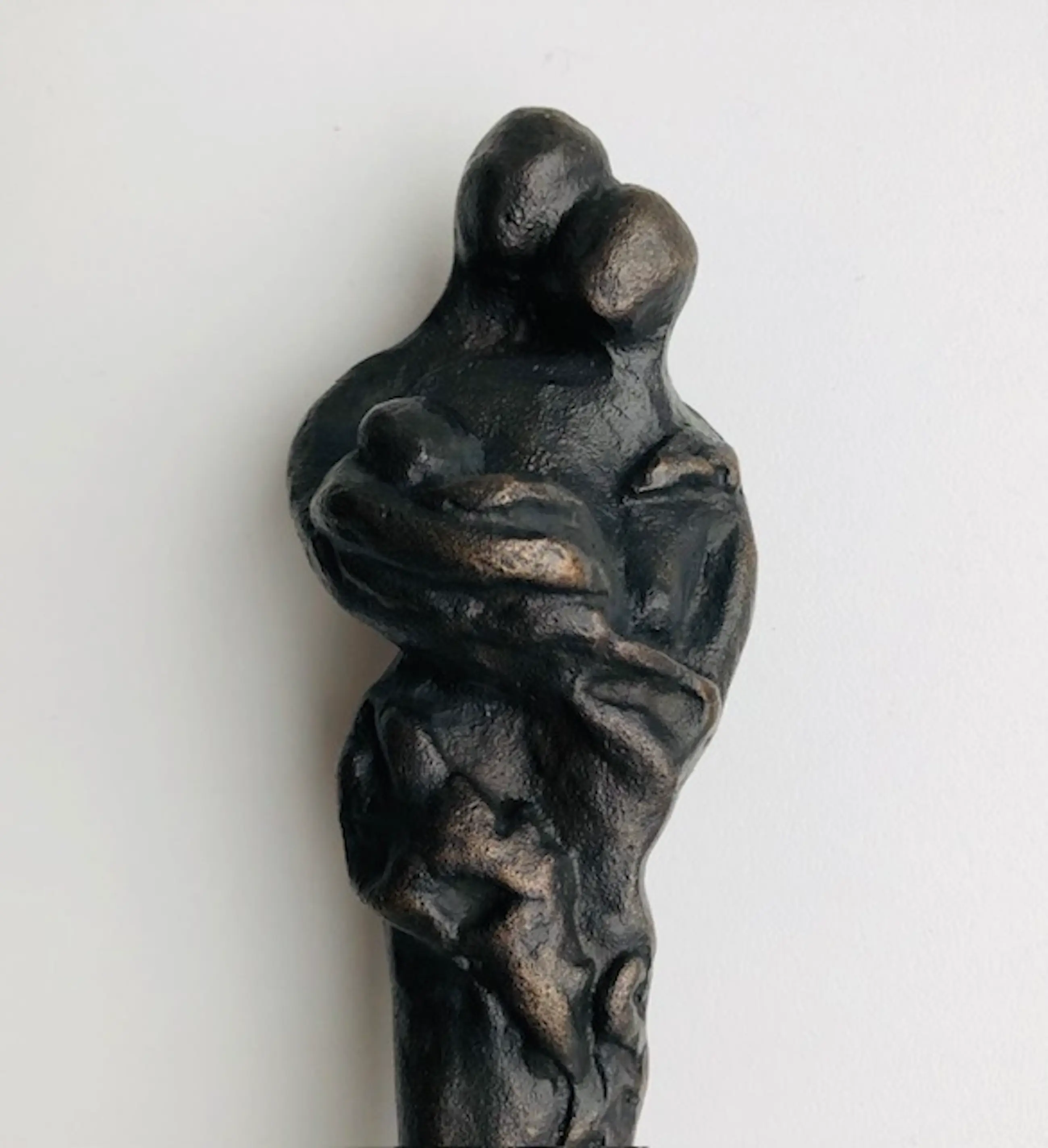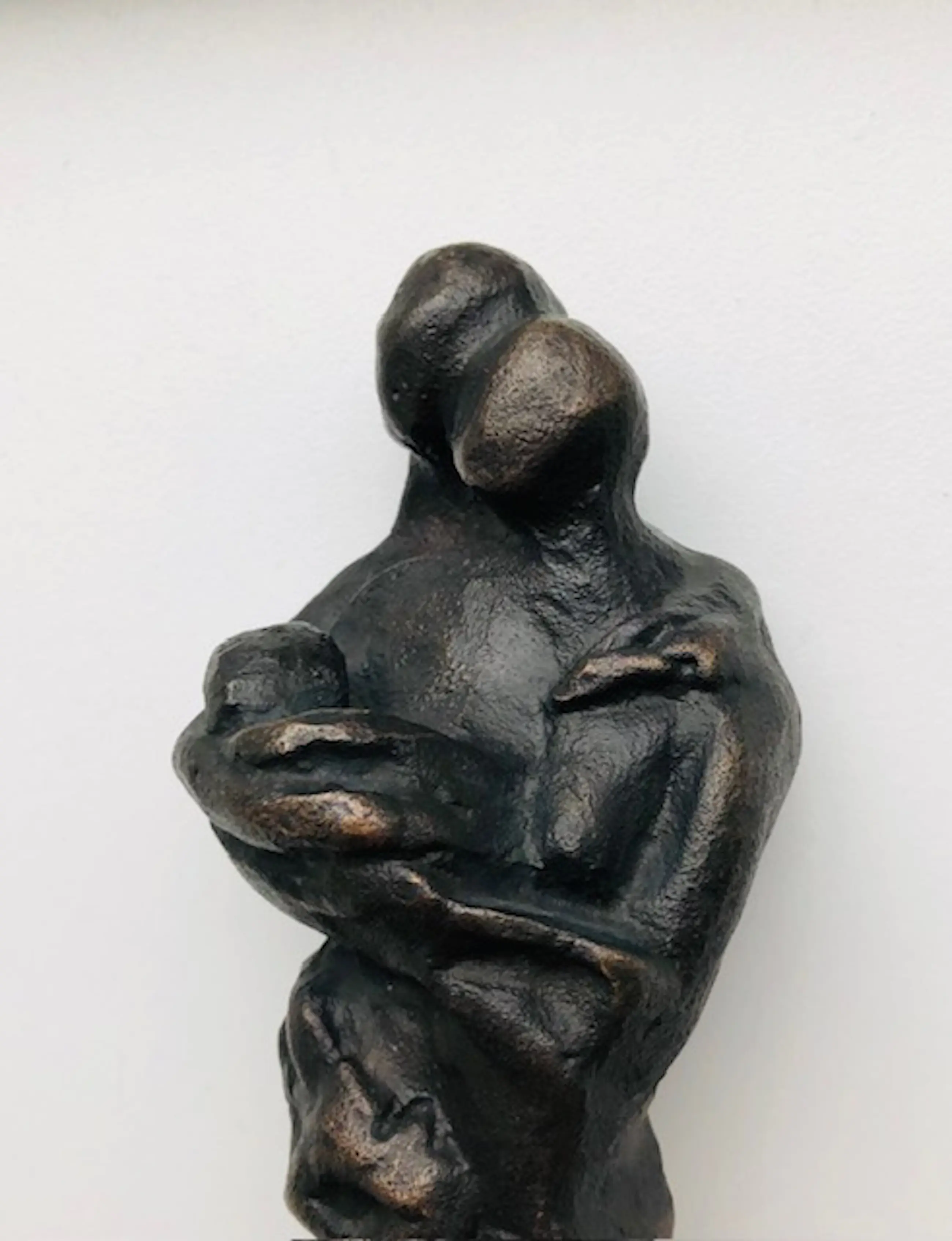Mooi beeld voorstelling Vader, Moeder en Baby. Gesigneerd EC ( Elly du Clou ) Uitstekende staat.