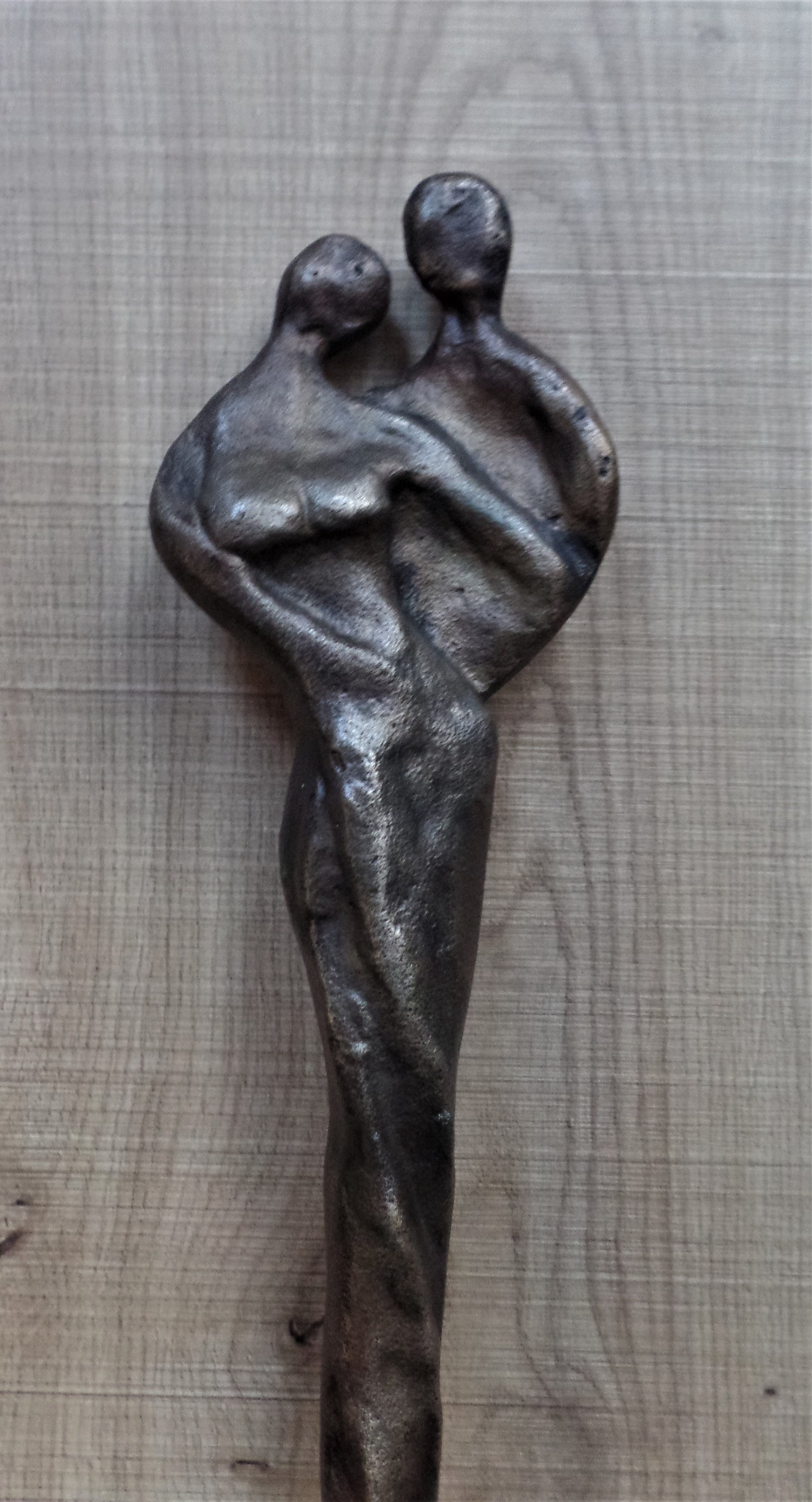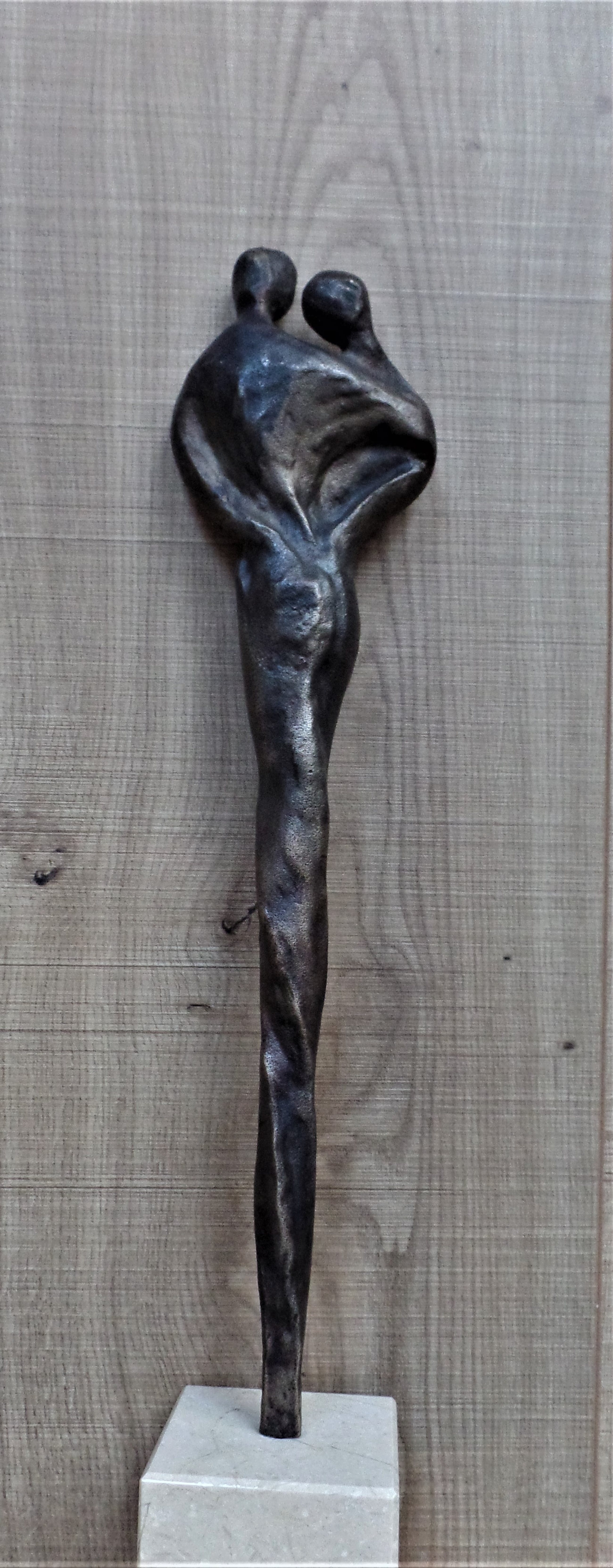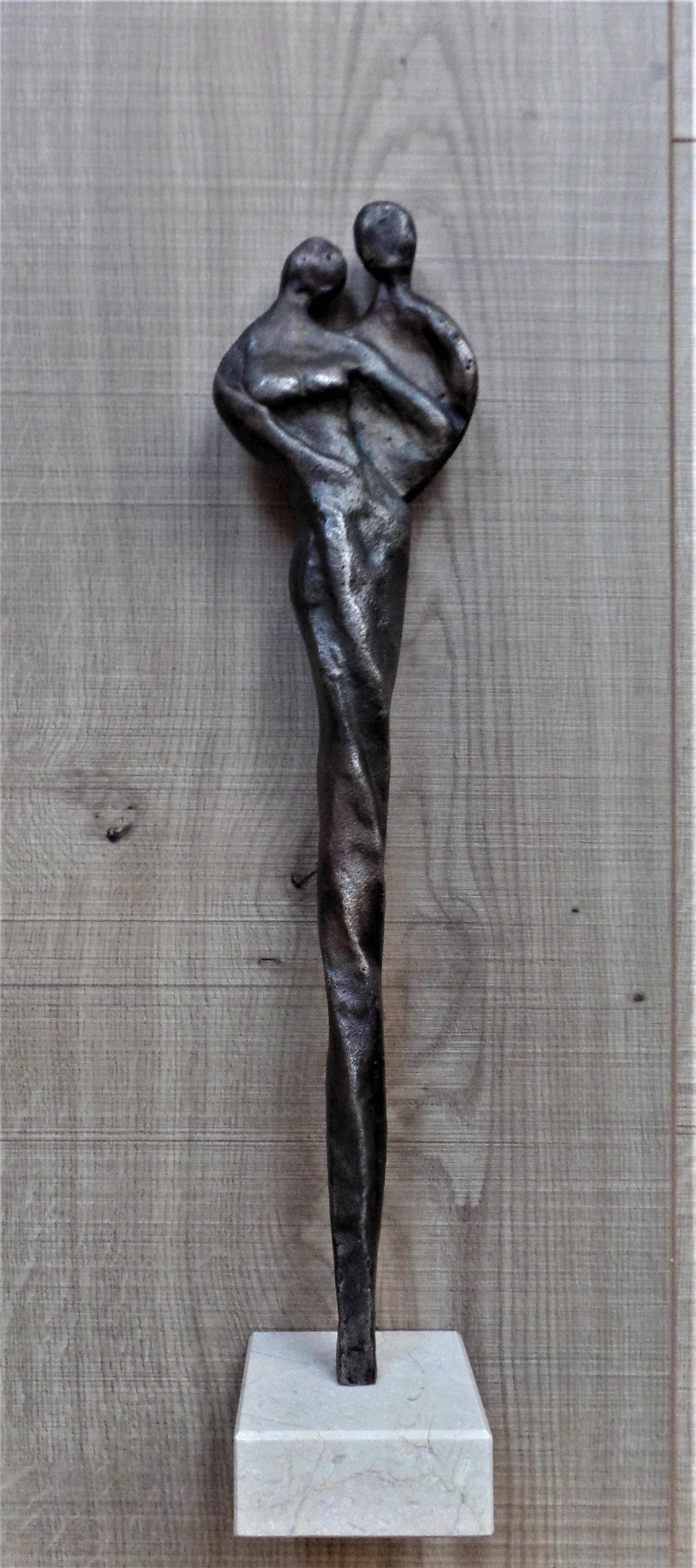 Dit in brons gegoten sculptuur symboliseert verbondenheid, liefde en afhankelijkheid tussen twee mensen,
