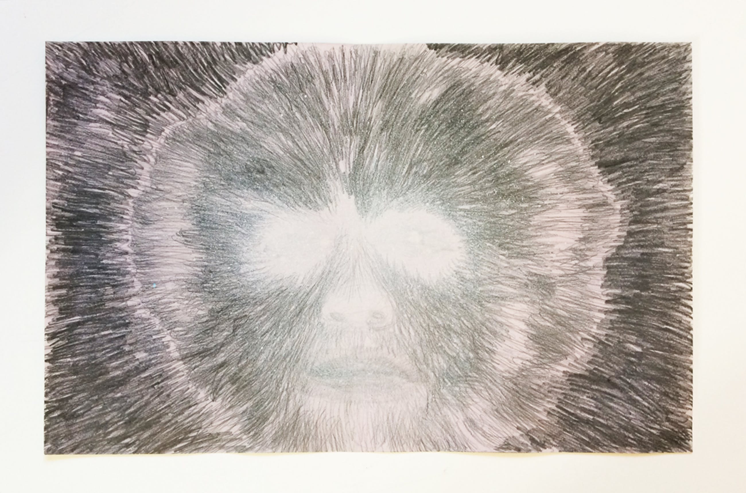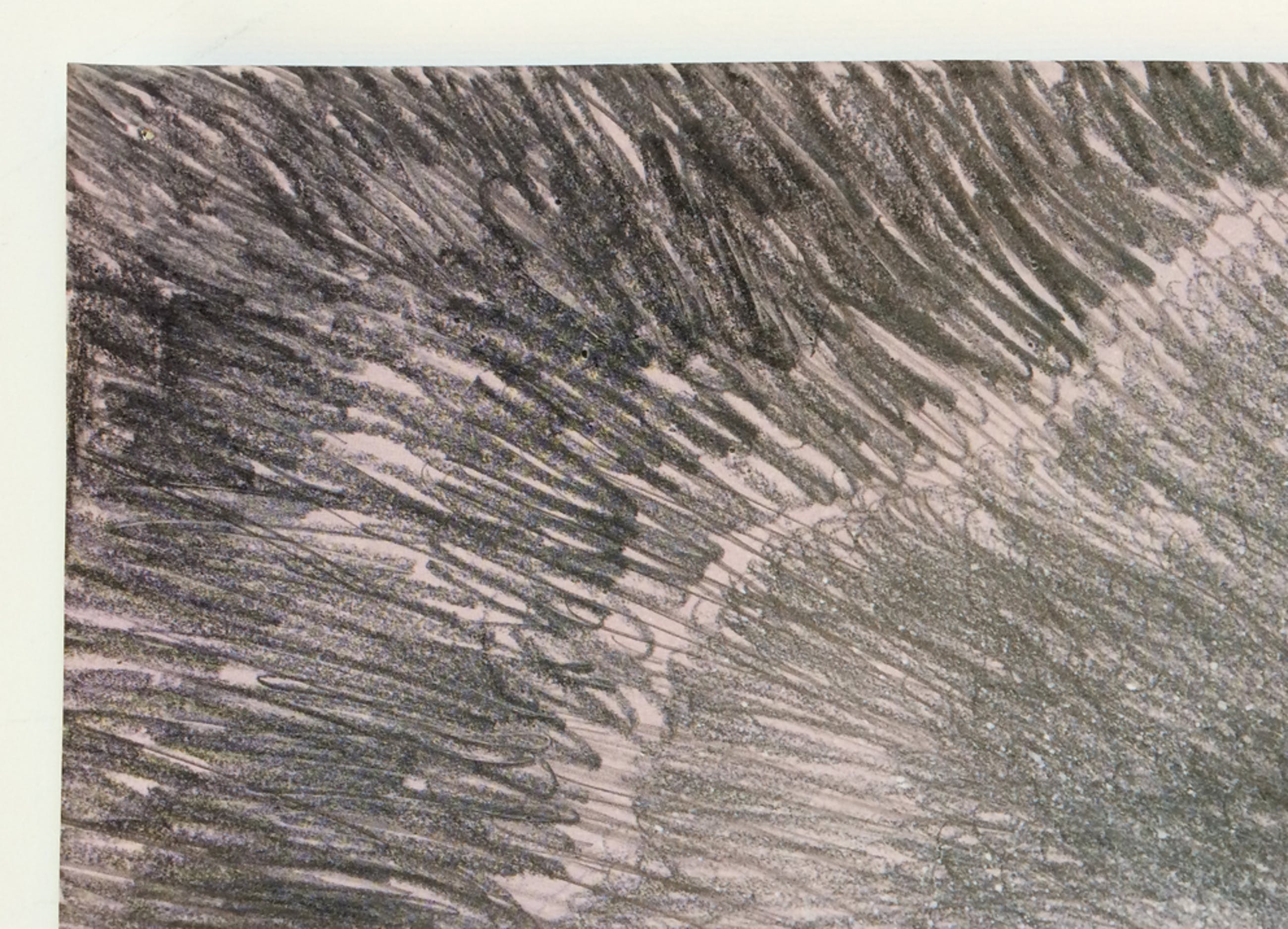 Ondergrond gedrukt en elke afdruk is handmatig ‘bijgetekend’ met grafiet-potlood.