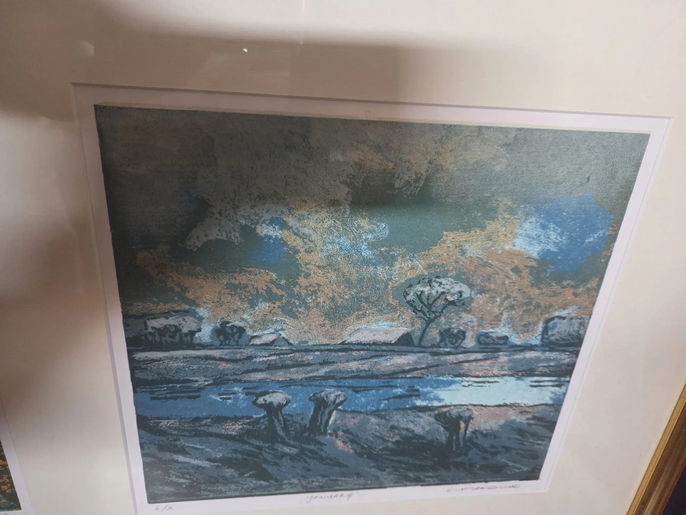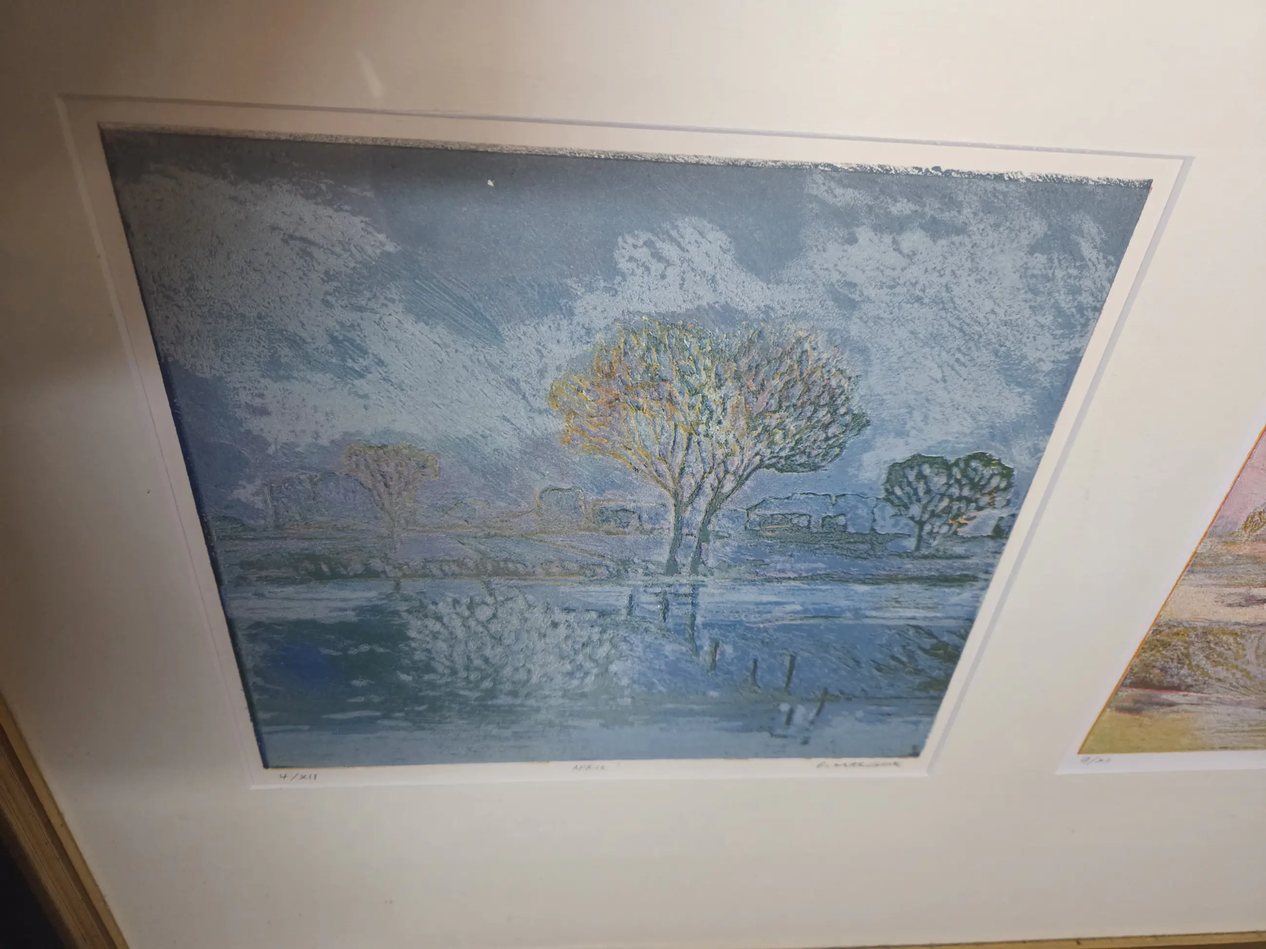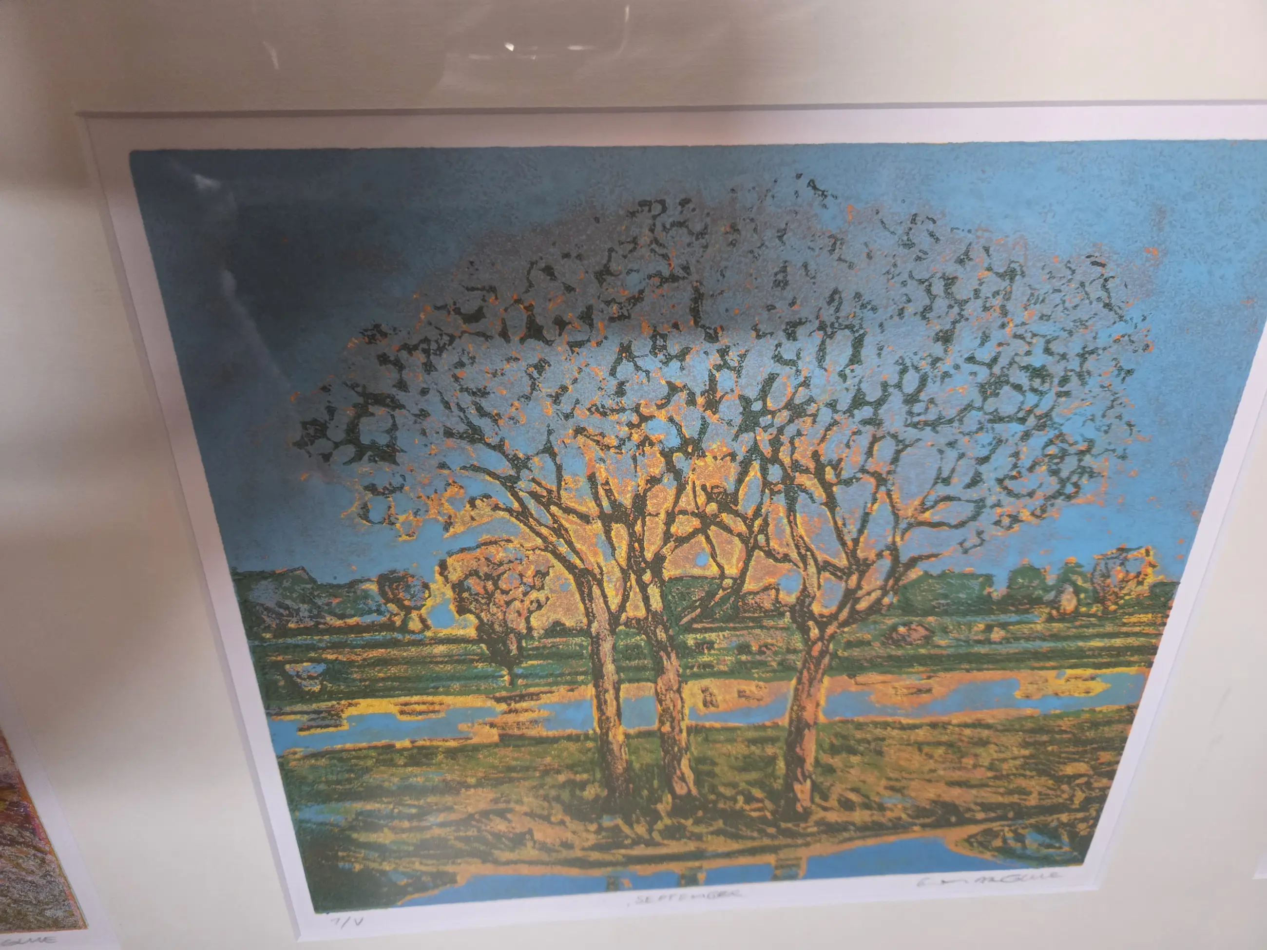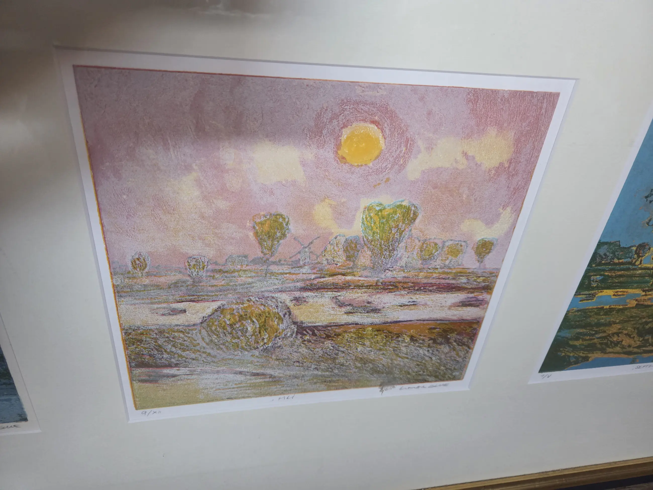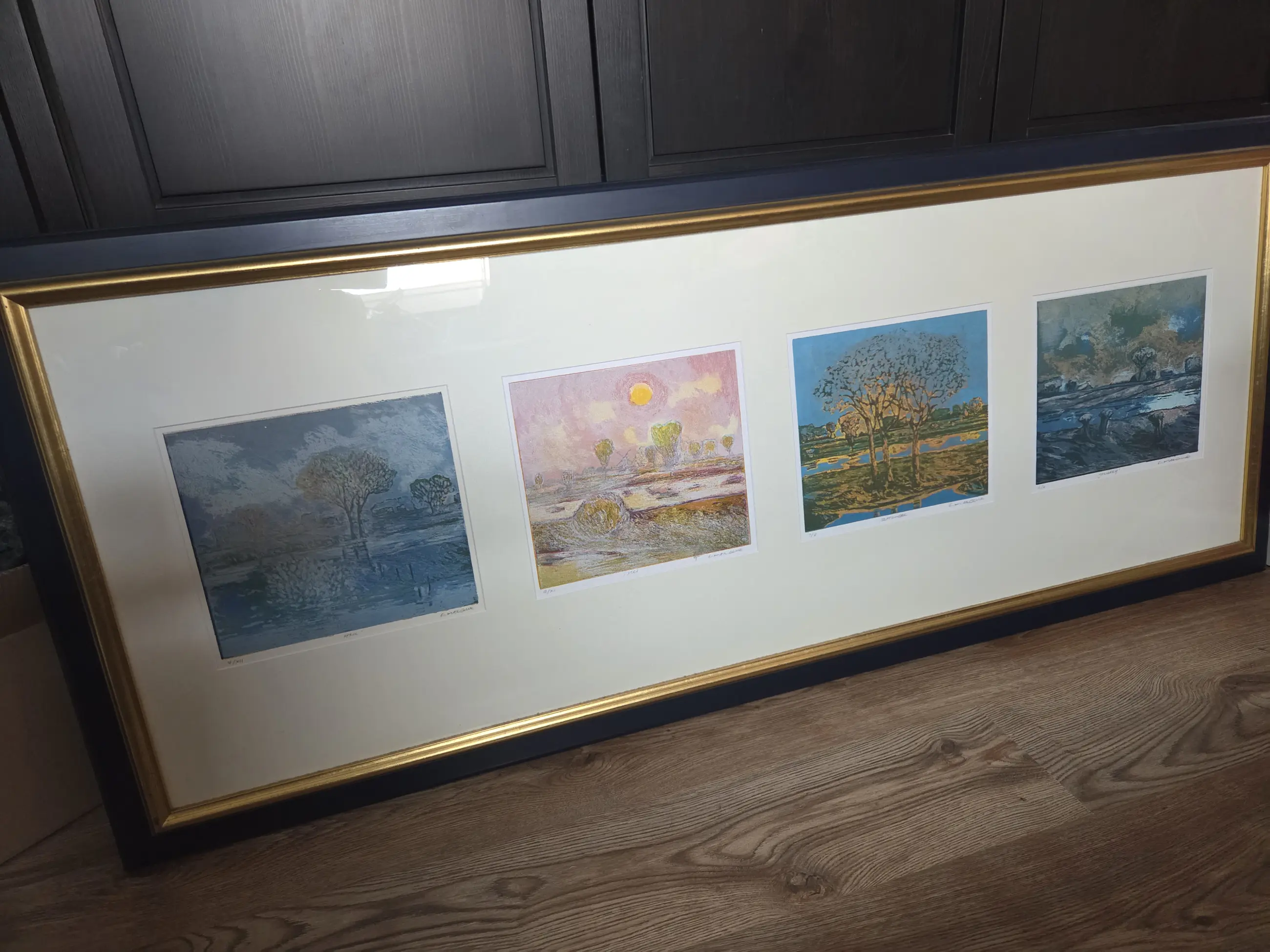 4 prints van Elmer Gille van de seizoenen in een lijst met passpartout.