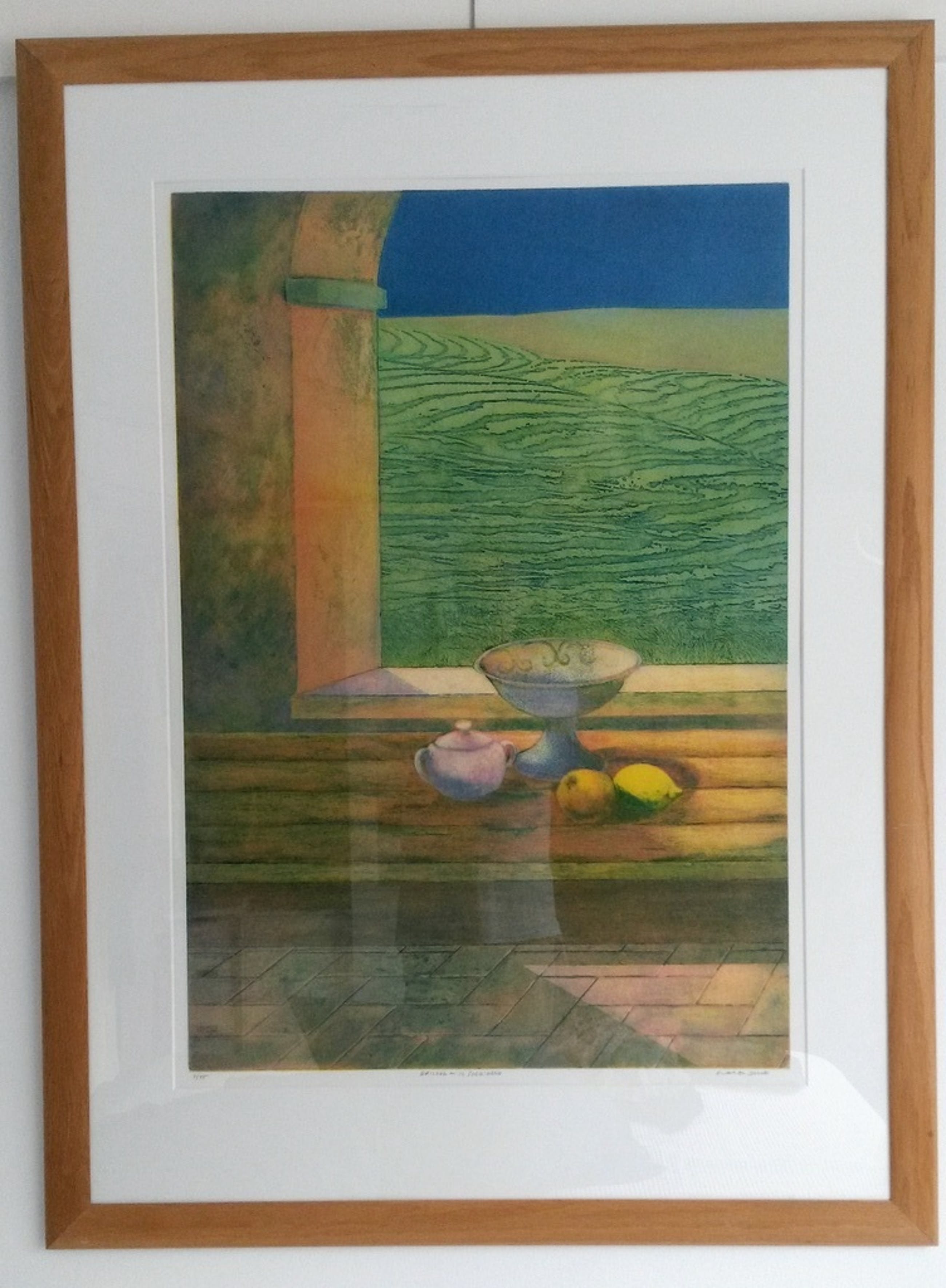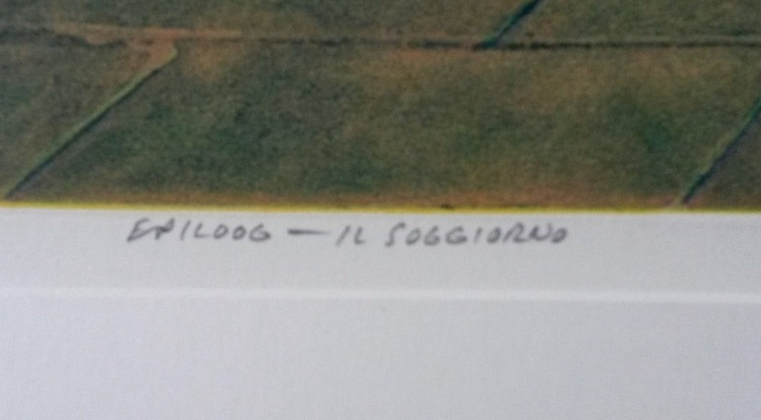 Fraai werk van Elmar Gille, getiteld Epiloog - Il Soggiono. Het is een groot werk, van 85 x 59 cm in een houten Barth lijst van 117 x 87 cm. In de eigen kenmerkende diepdruktechniek van Gille. Met potlood staat er de signatuur onder, de titel en de oplage 7 / 75. Het geheel is in een uitmuntende conditie. Het werk is afkomstig uit de kunstcollectie van ING / Nationale Nederlanden (stickers achterop). Op de foto's zijn reflecties zichtbaar.