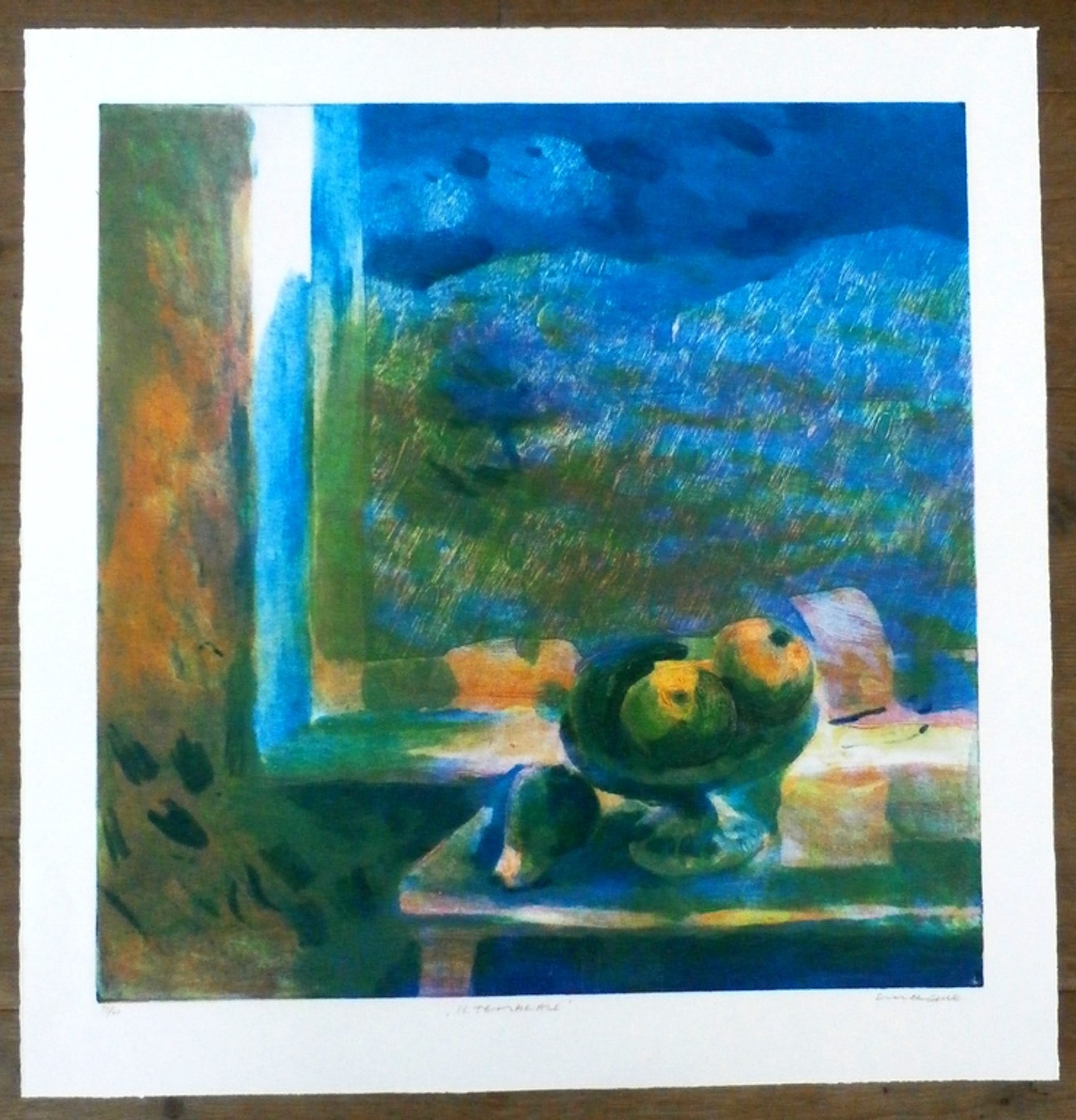 Elmar Gille - ets : Il Temporale. Nummer: 31/60. Afmetingen blad: h76,5 x b75 cm; Afmetingen voorstelling: h64,5 x b64 cm. Rechtsonder, met potlood, gesigneerd door de kunstenaar. Herkomst: collectie ABN AMRO. De authenciteit van dit werk wordt volledig gegarandeerd. Een certificaat van echtheid kan, op aanvraag, worden meegestuurd.