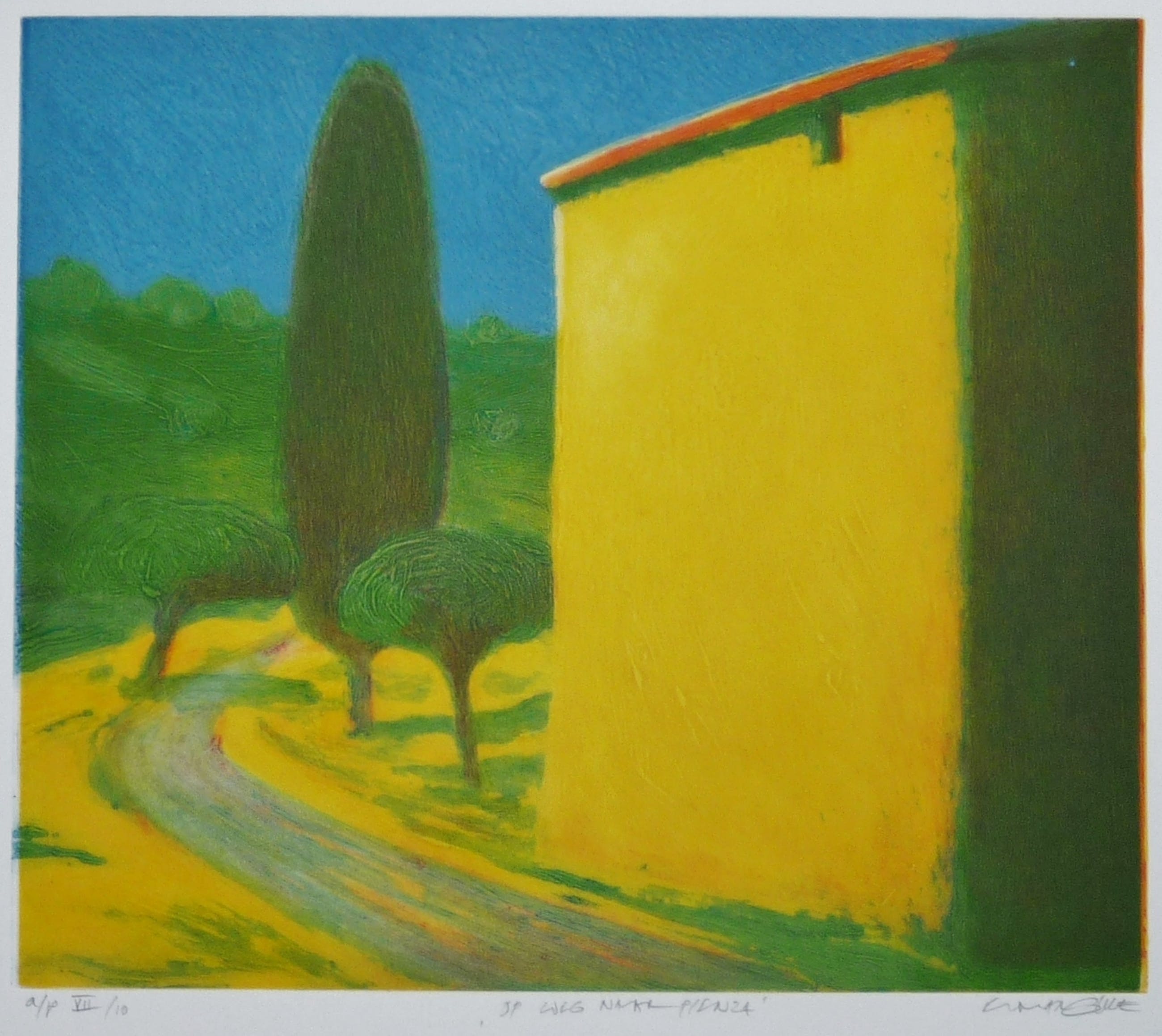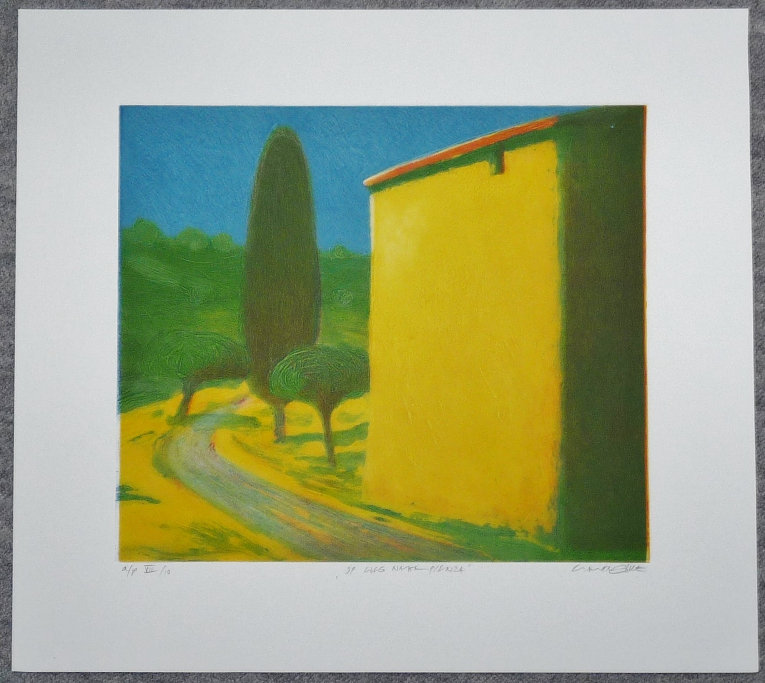 *Van links naar rechts in potlood: a/p (artist proof) 7/10 - Op weg naar Pienza - Elmar Gille