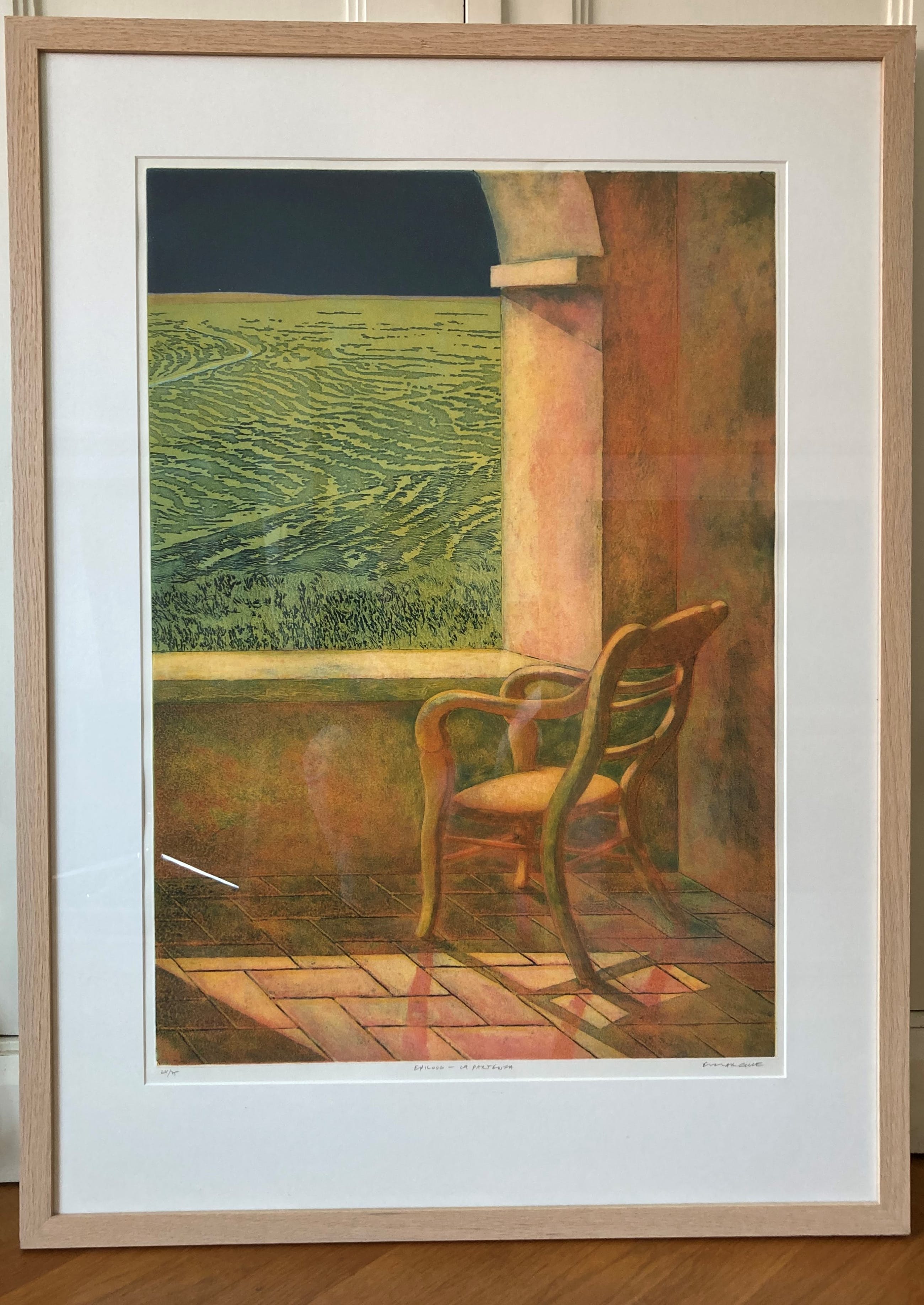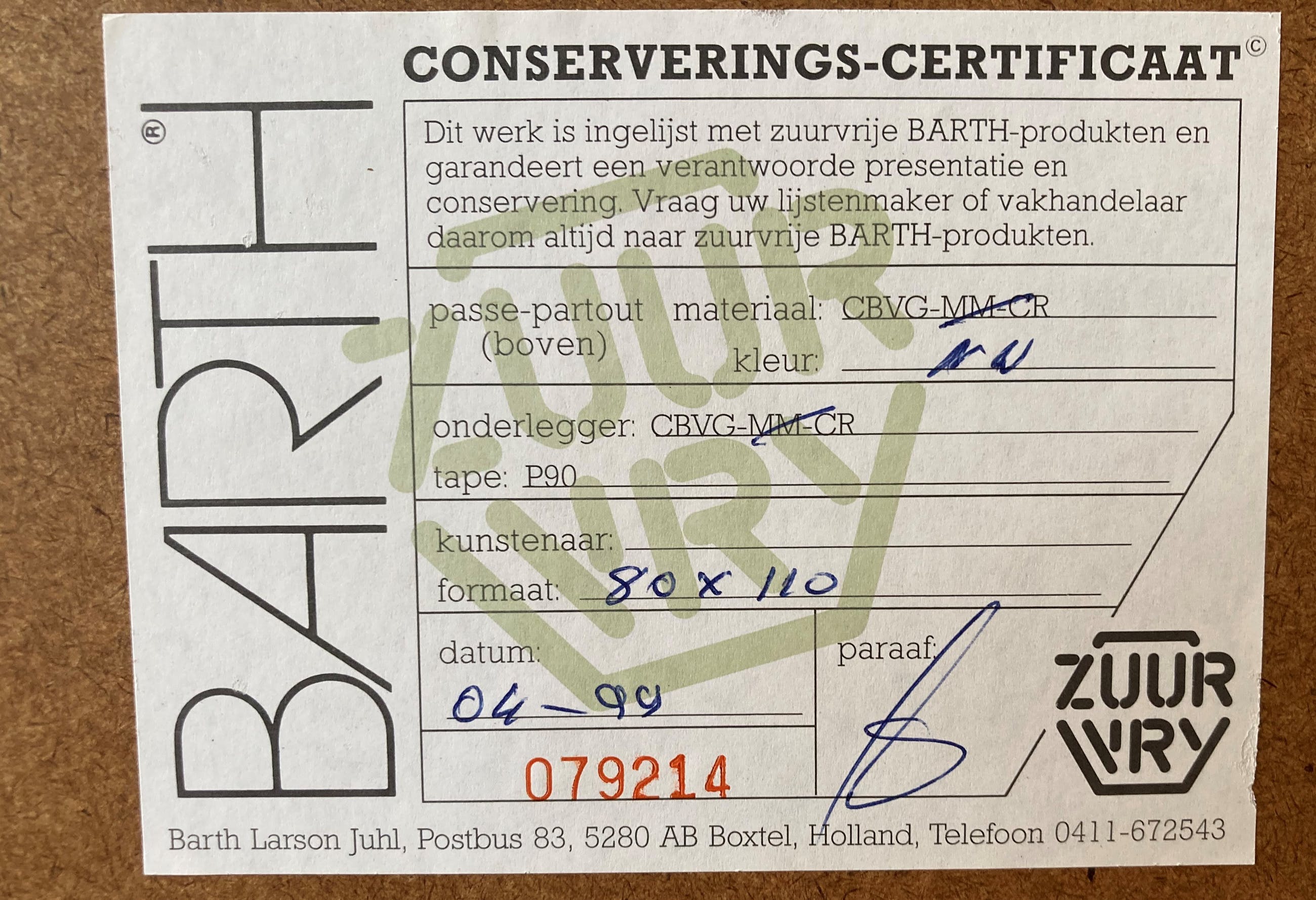 Het geheel is in een uitmuntende conditie. Kan direct aan de wand. Op de foto's zijn spiegelingen zichtbaar door het glas. Oorspronkelijke galerieprijs: € 950.