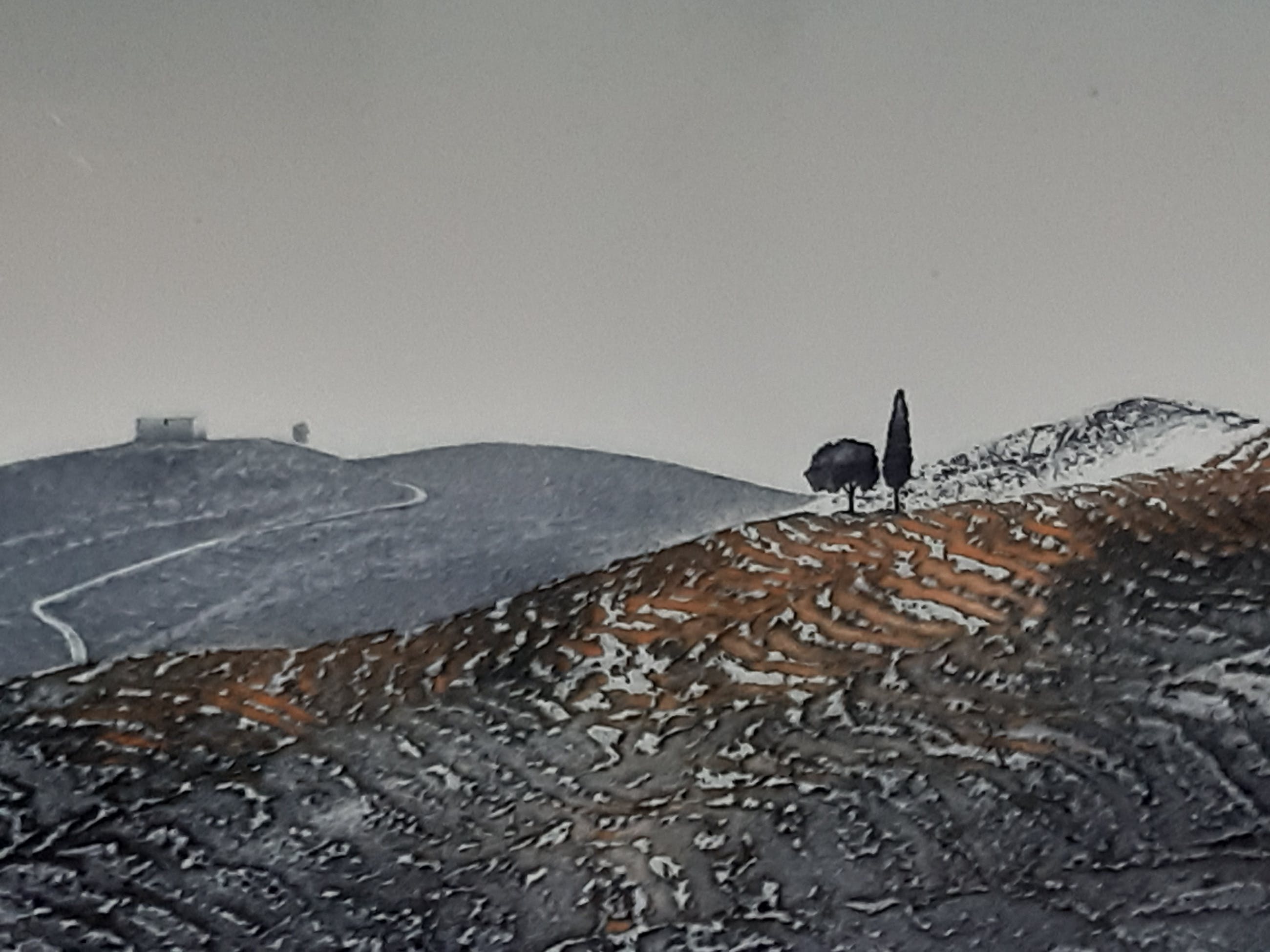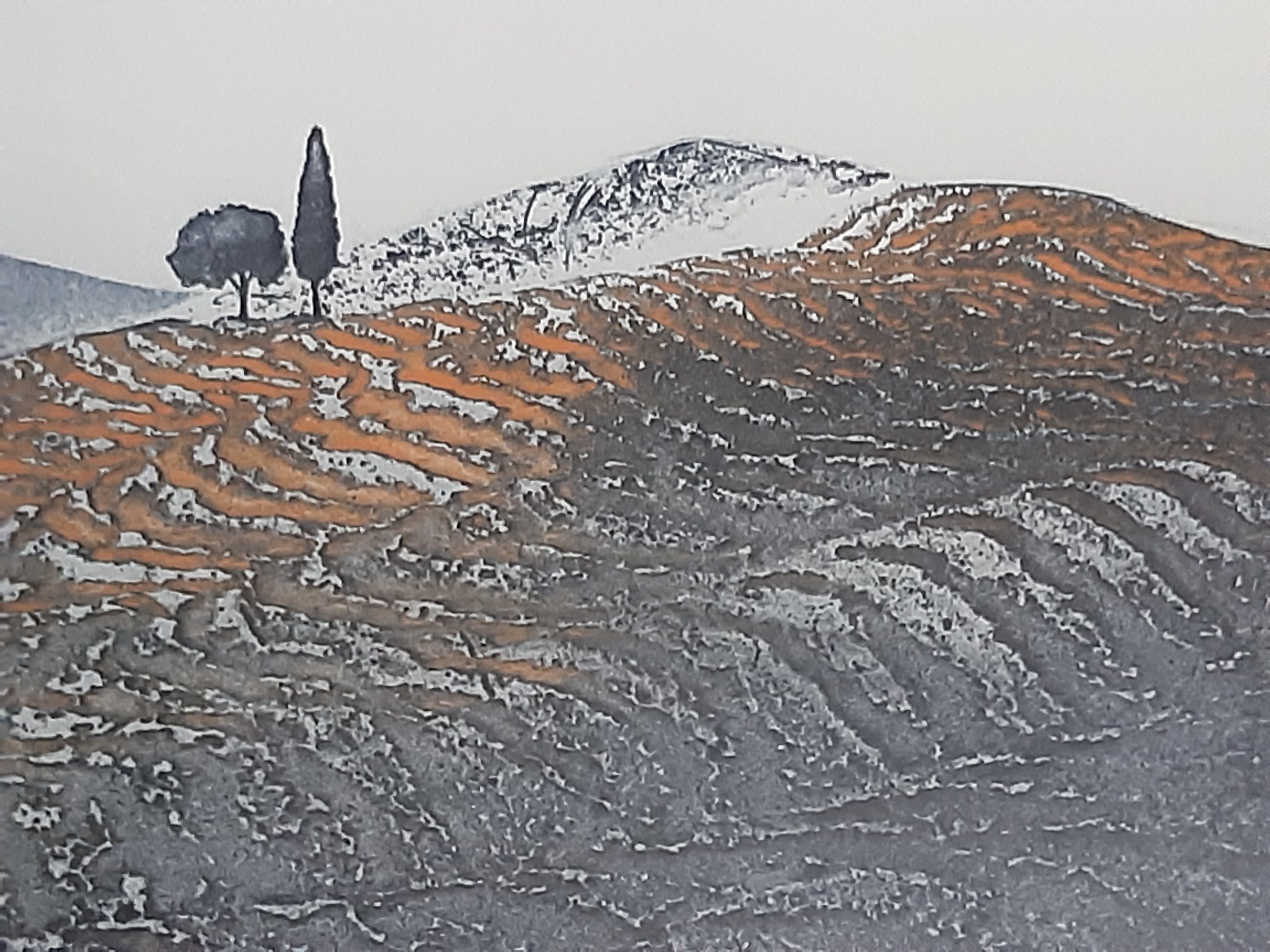 In een prachtig heuvellandschap een tweetal bomen, metafoor voor man en vrouw