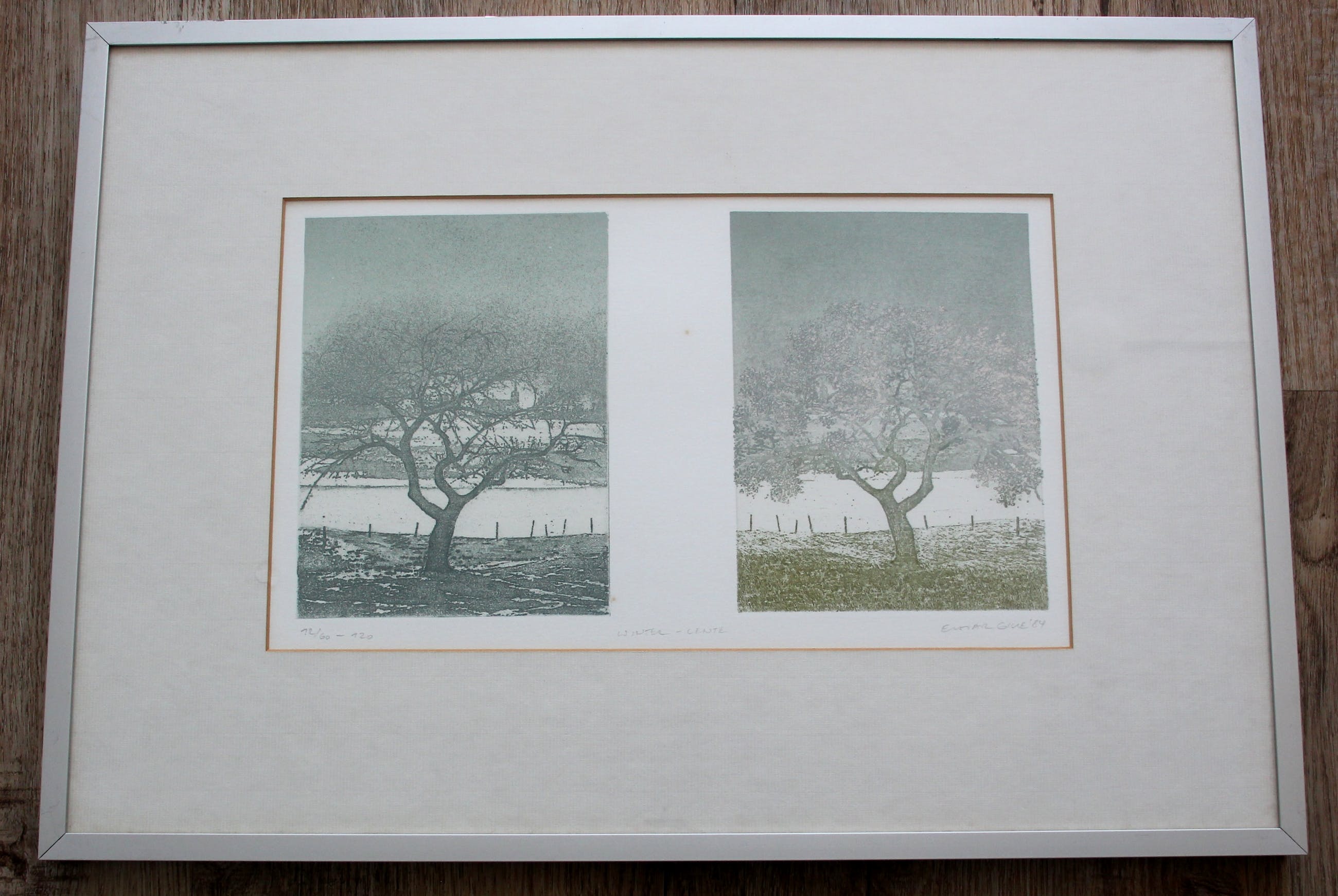 Twee ingelijste litho's van Elmar Gille uit 1984. Titel: winter - lente. Nummer: 12/60. Afmetingen incl. lijst: H36 x b51 cm, afmetingen voorstelling: H17 x b31 cm. Het werk is rechtsonder gesigneerd door de kunstenaar. De authenticiteit van het, aangeboden, werk wordt volledig gegarandeerd. Een certificaat van echtheid kan, op aanvraag, worden gemaild.