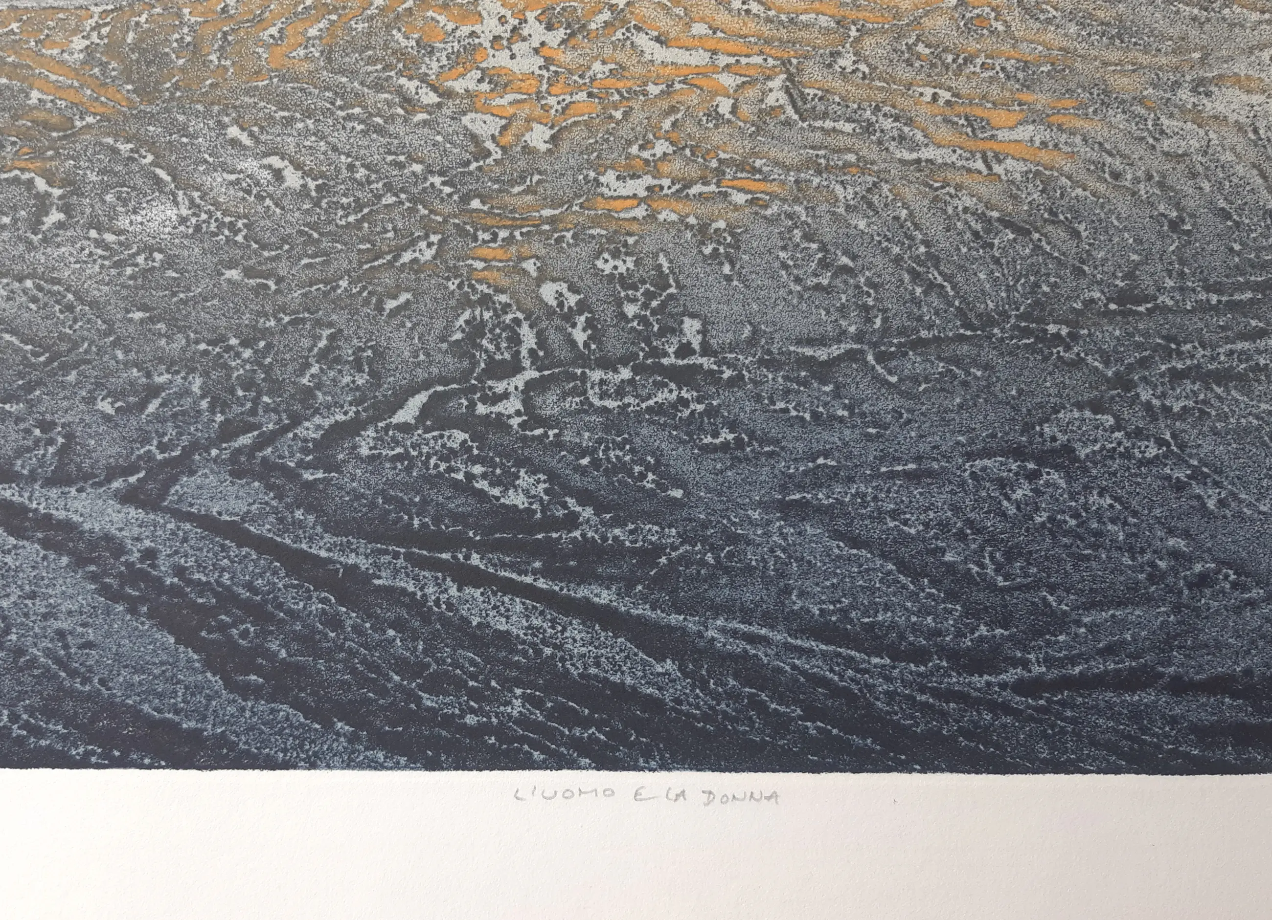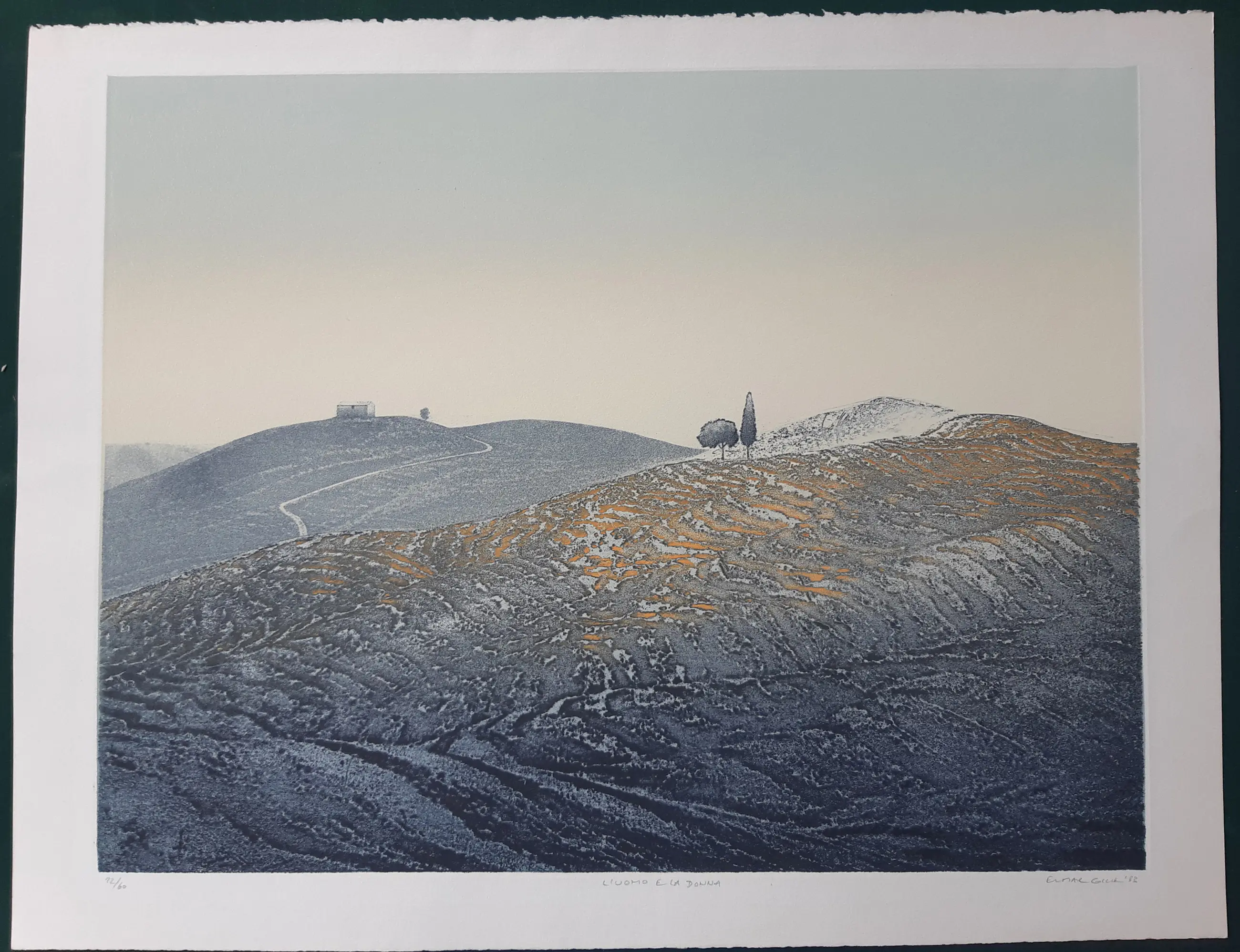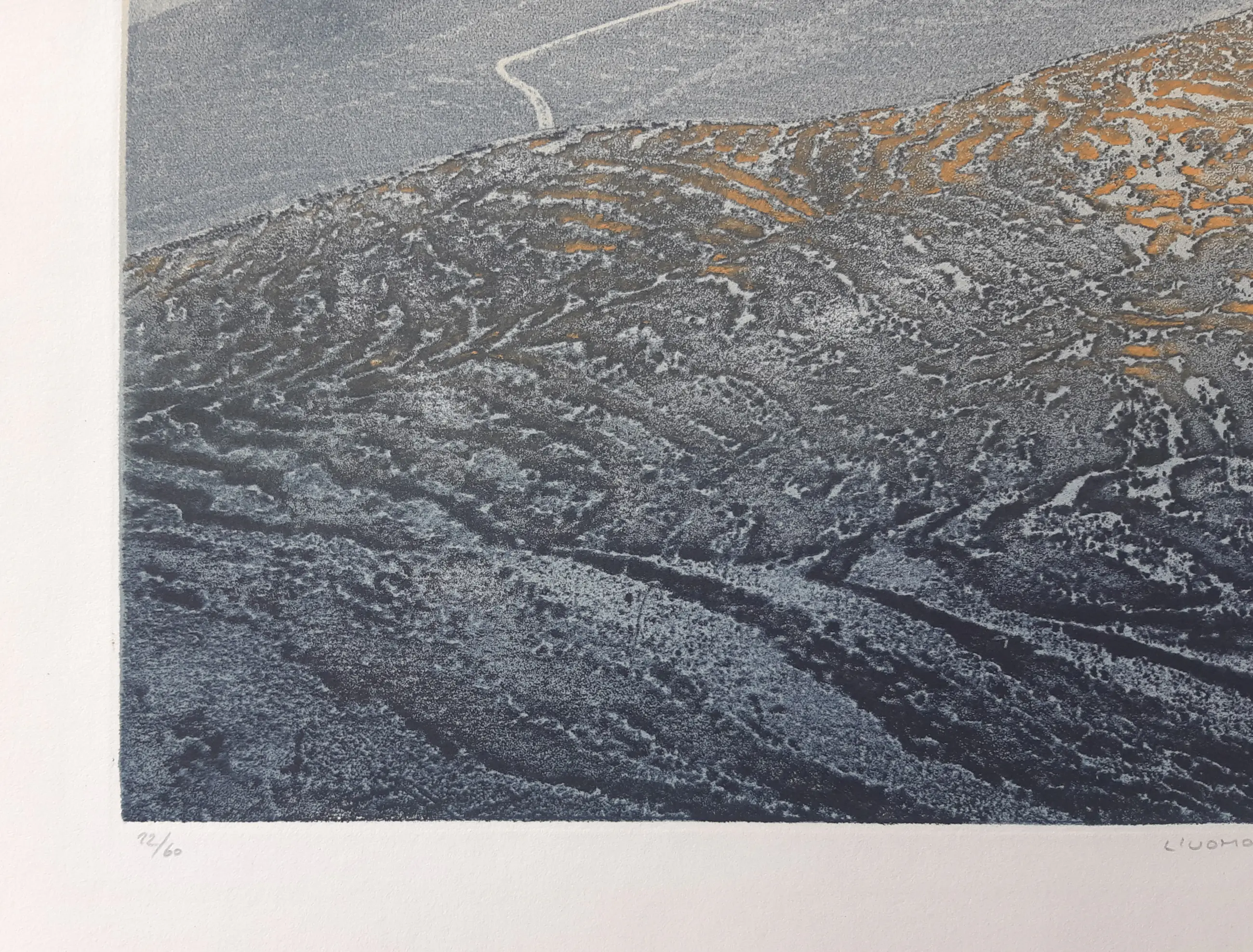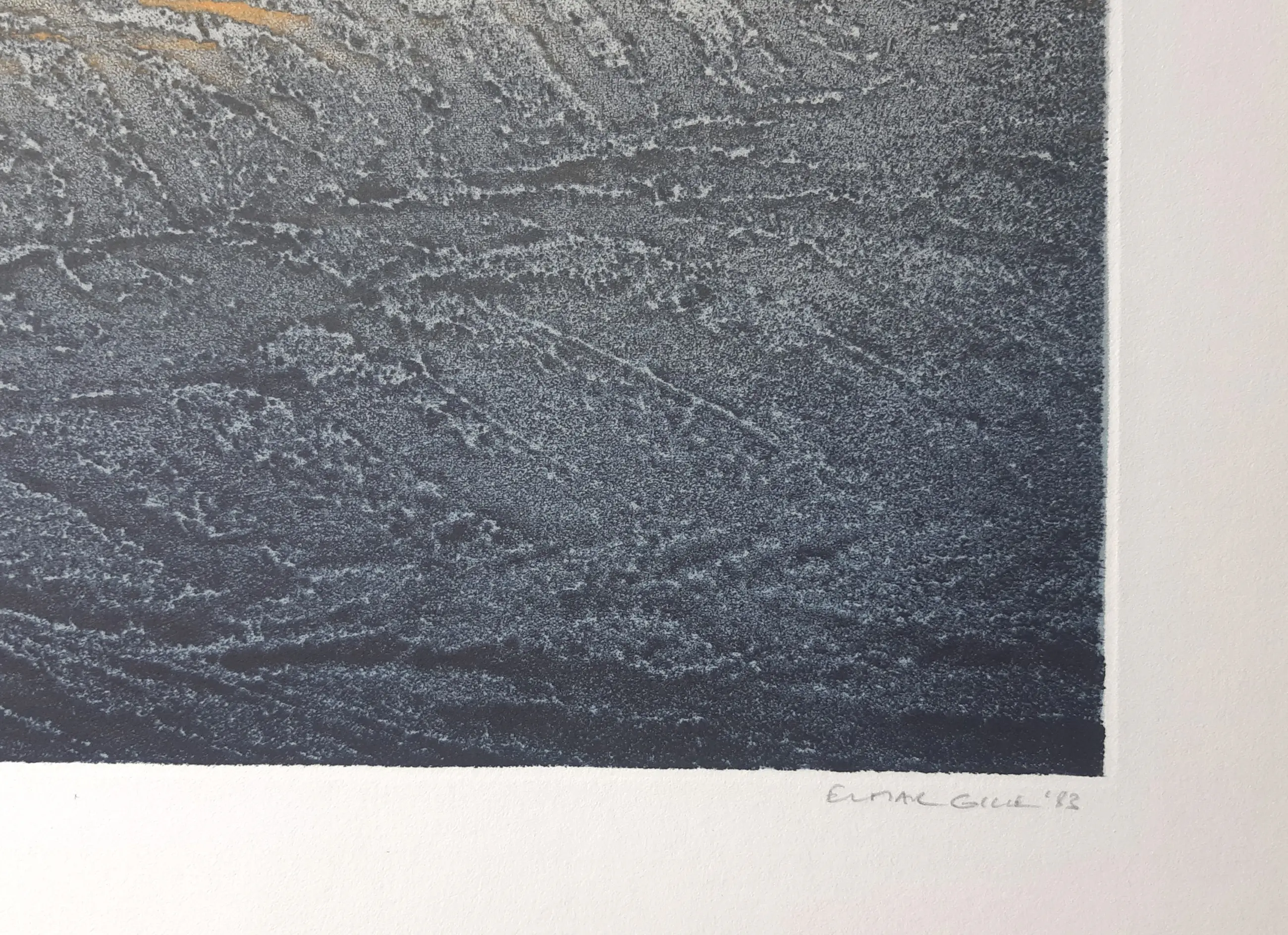 Gille experimenteerde met verschillende druktechnieken. Dit is een combinatie van ets en hoogdruk, wat subtiele kleuren oplevert. Het werk is met potlood gesigneerd, genummerd en gedateerd. De afbeelding meet 42 x 55 cm. De conditie is uitstekend.