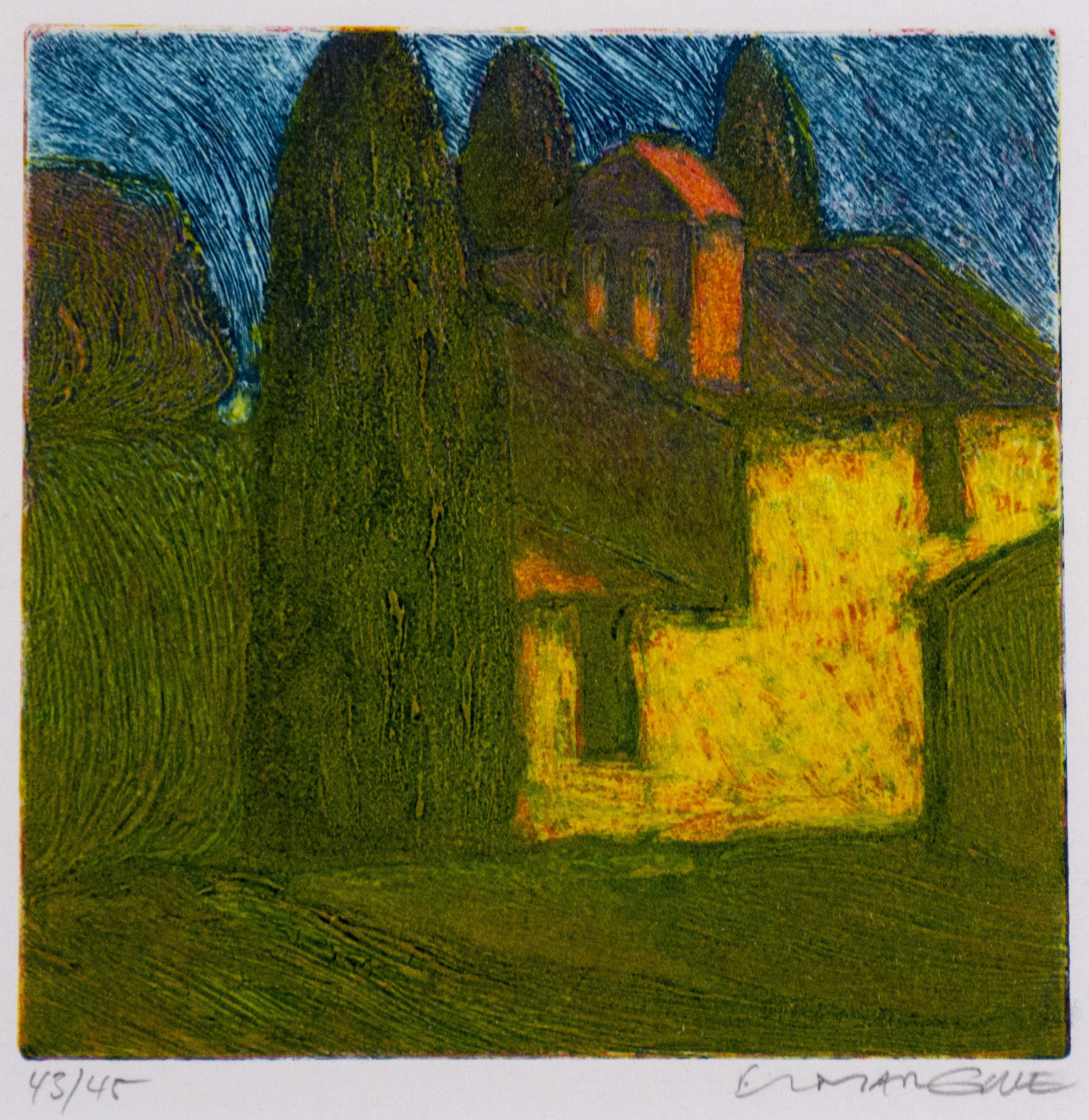 Grafisch werk van Elmar Gille, in zijn kenmerkende diepdruktechniek. Gesigneerd en genummerd - Ingelijst in houten lijst. Het werk is in uitstekende staat.