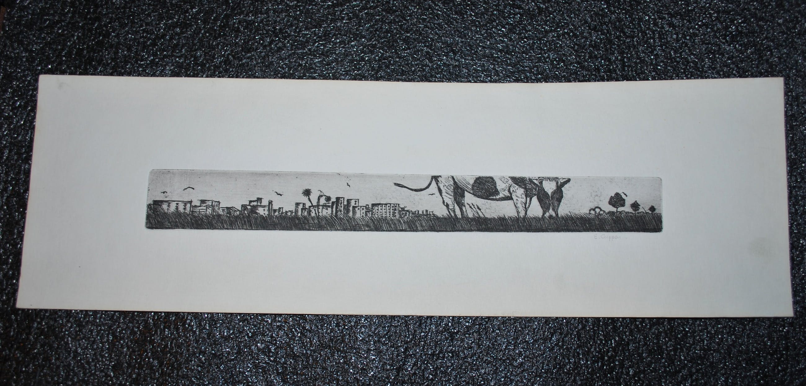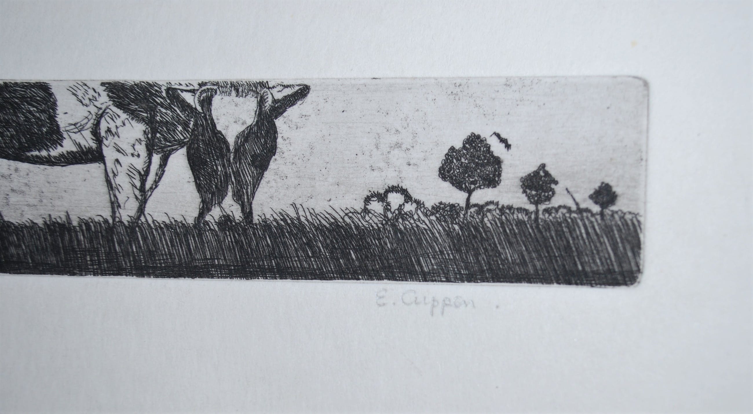 Els Cuppen - grazende koe - ets in breed formaat: 4x32 cm kopen? Bied vanaf 20!