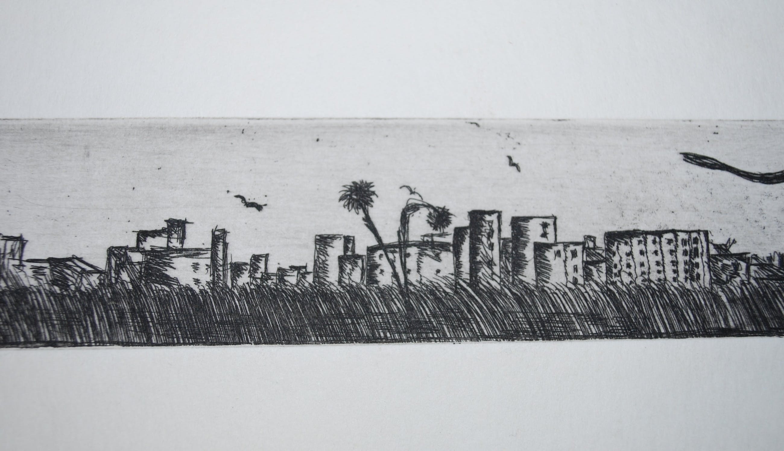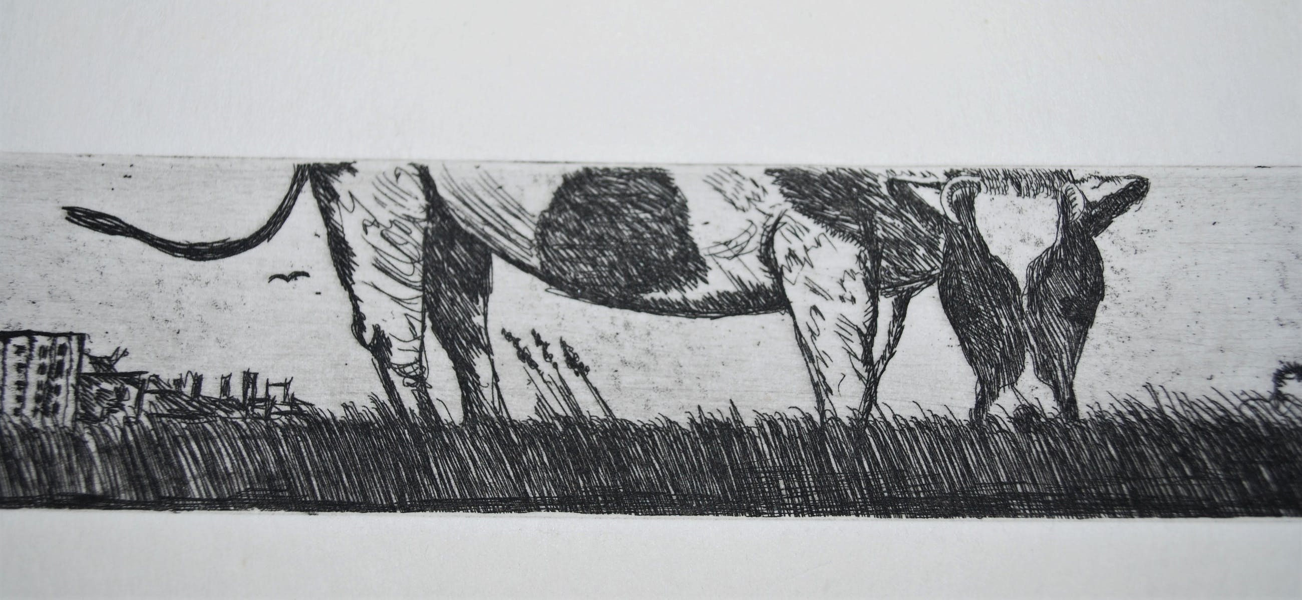 Els Cuppen - grazende koe - ets in breed formaat: 4x32 cm - Verkocht