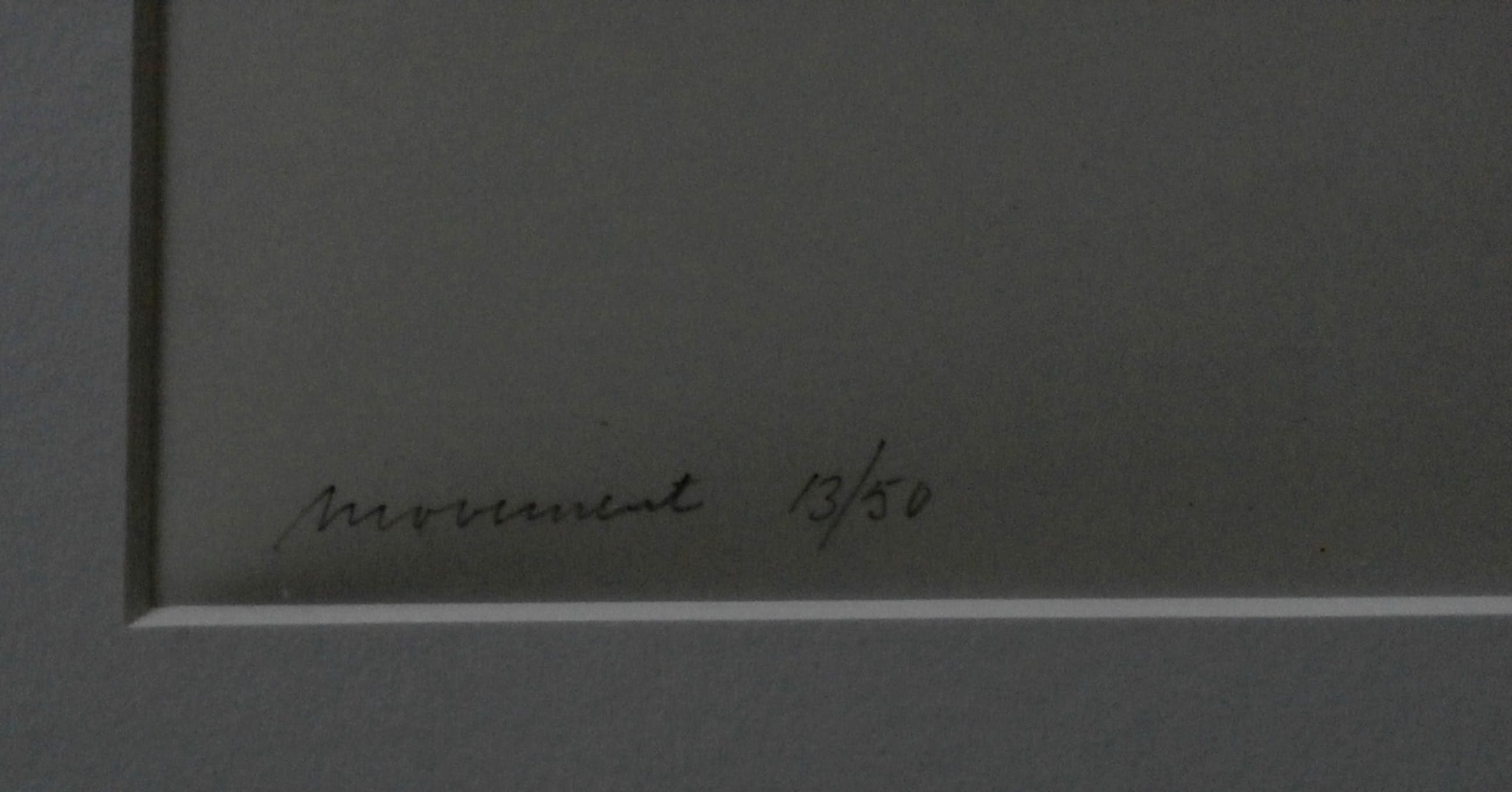 De zeefdruk is rechtsonder door de kunstenaar met potlood gesigneerd.