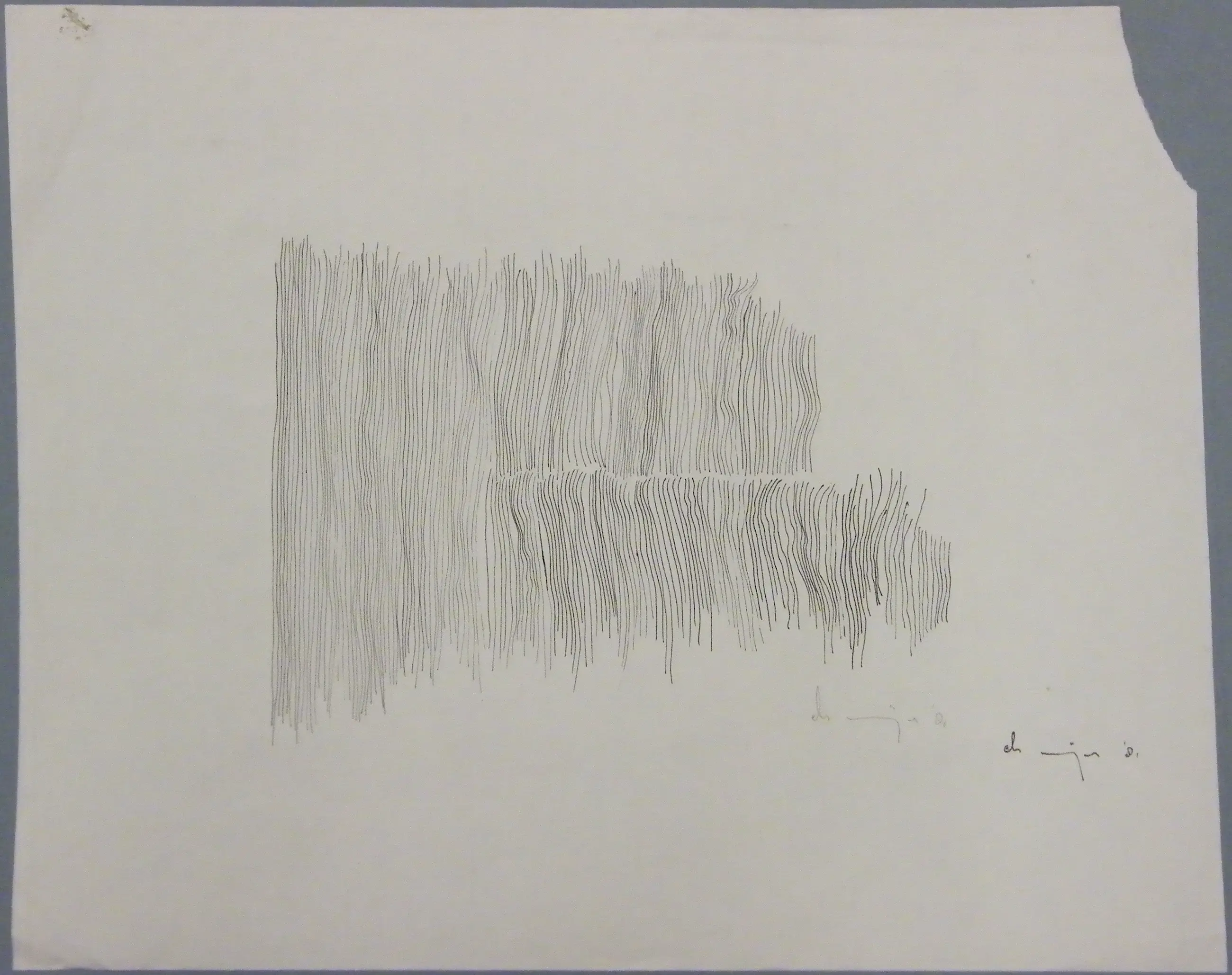 Niet gelijst, hap papier weggescheurd rechts boven. Kleine vlekjes.