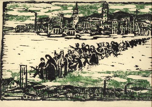 Holz -oder Linolschnitt auf ganz dickem Papier.Etwa DinA4. Farbspuren vom Druck am Rand und rückseitig.. Nicht signiert. Versand 7 Euro. Fragen bitte vorab klären. Privatverkauf.
