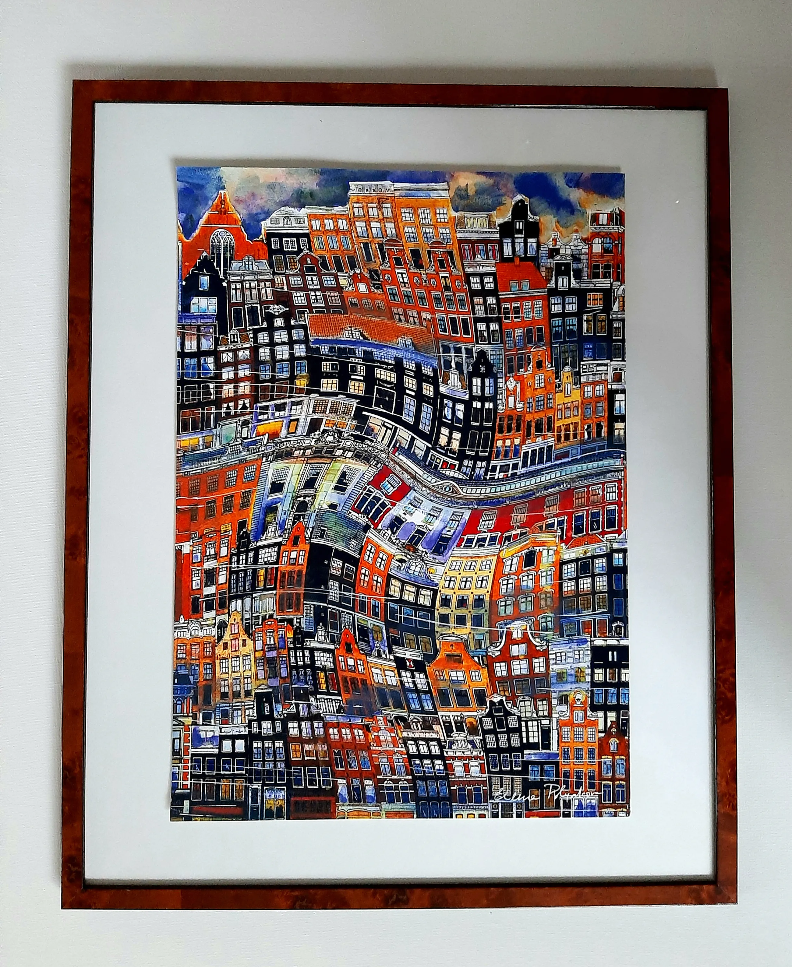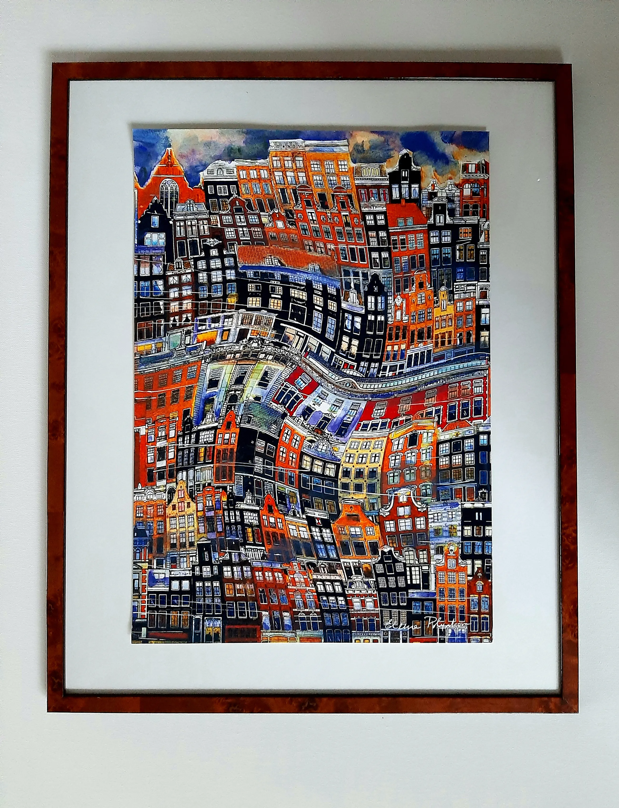 Acrylverf en inkt over giclee op papier , ingelijst.