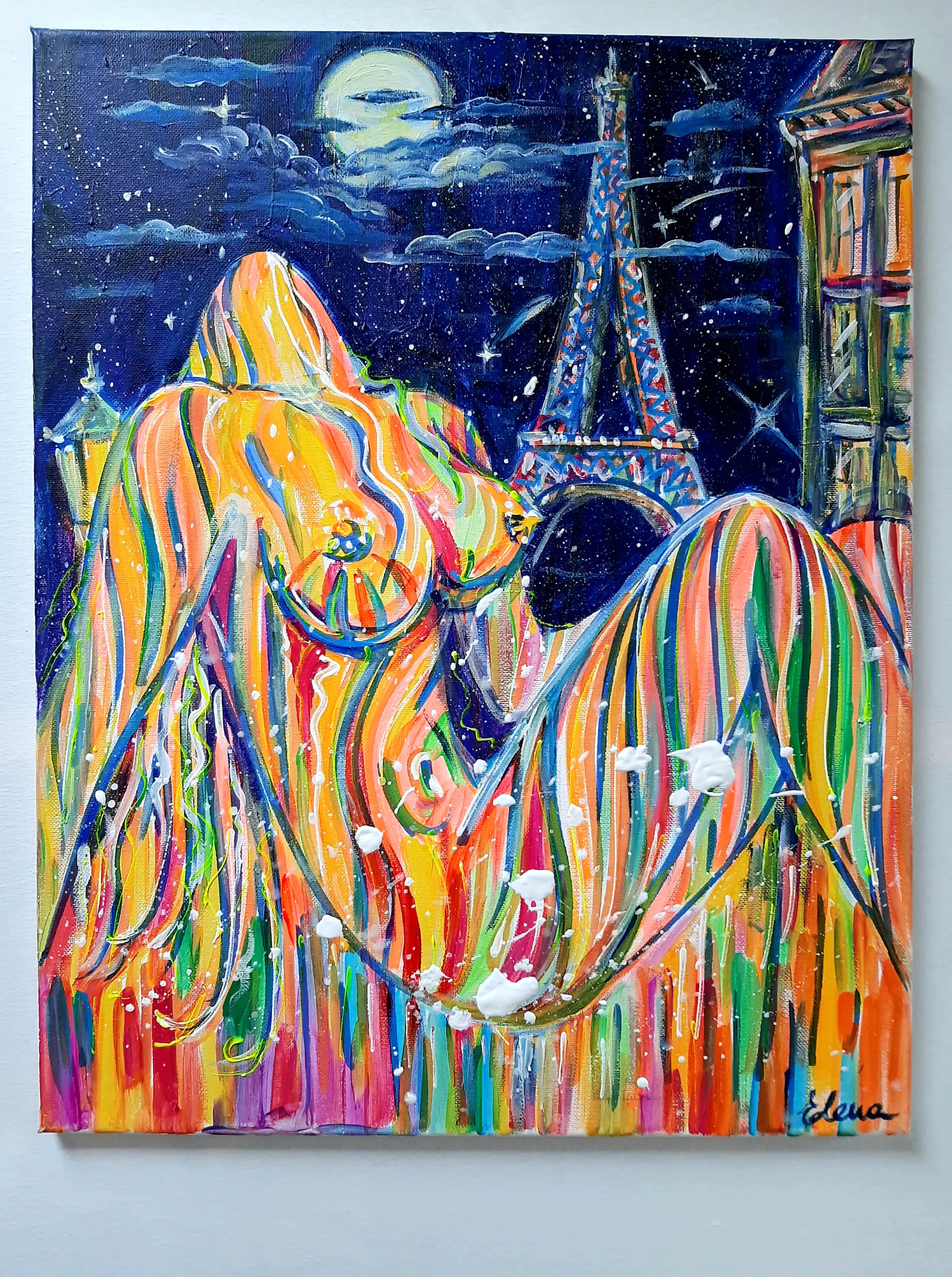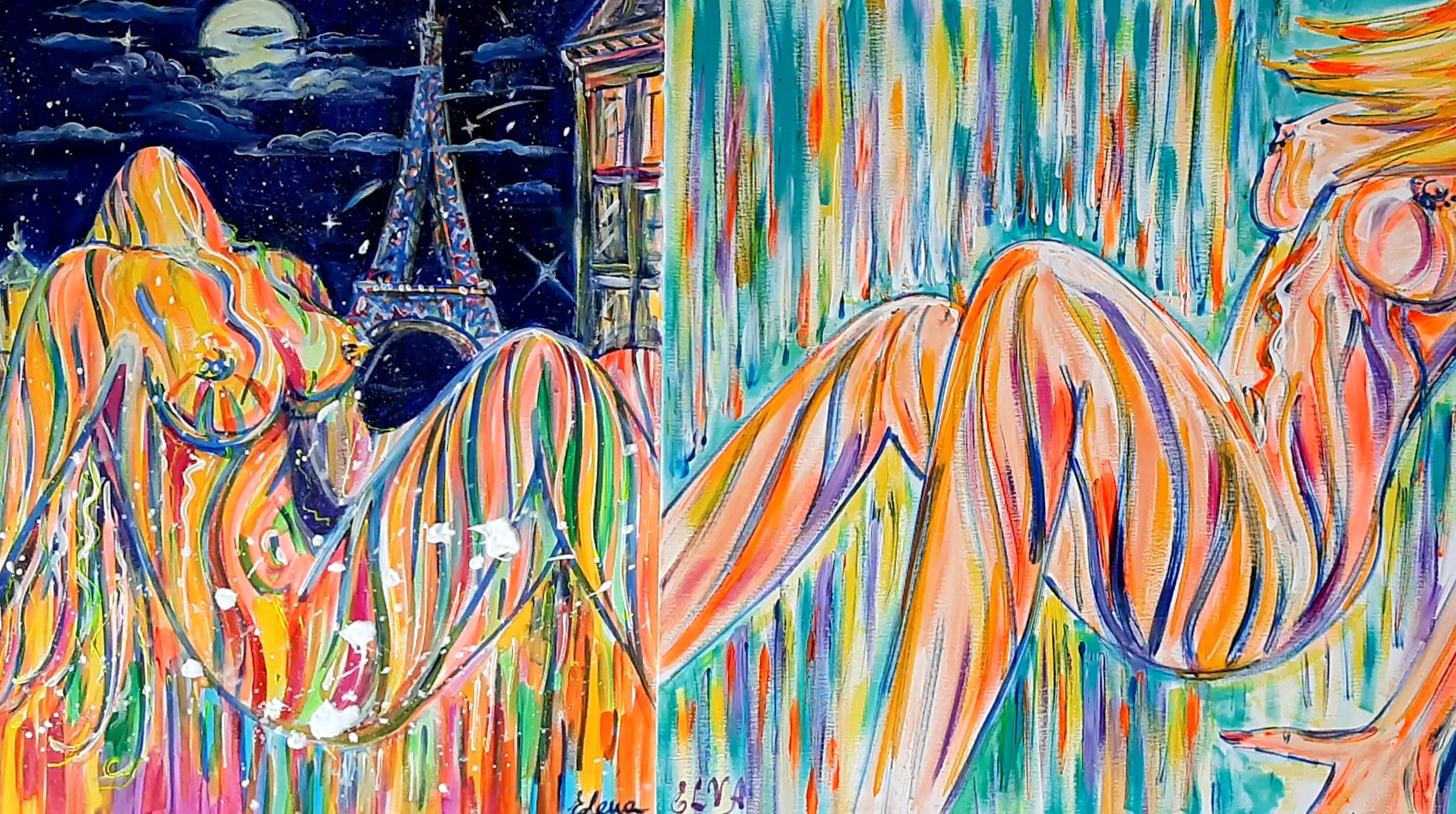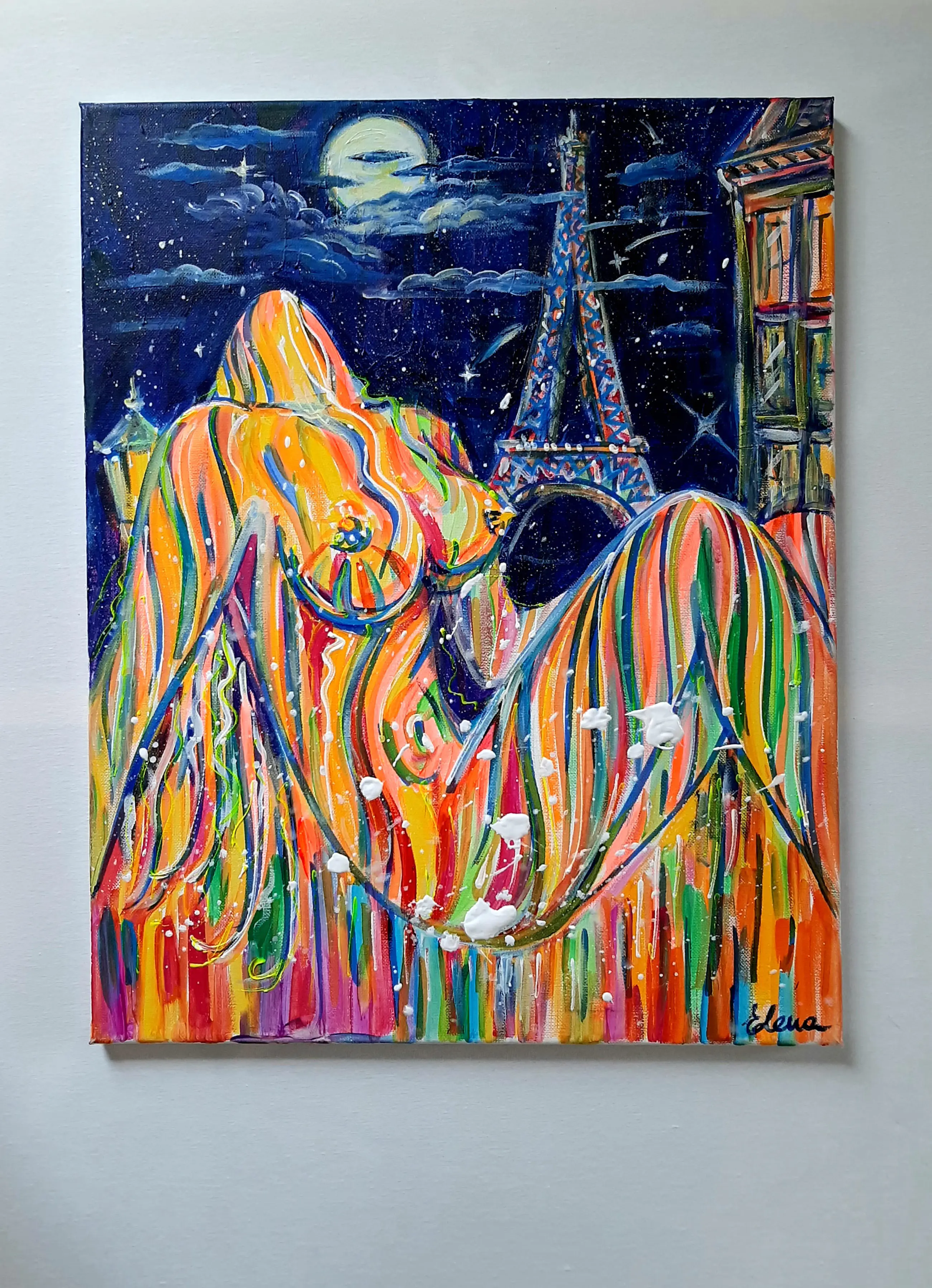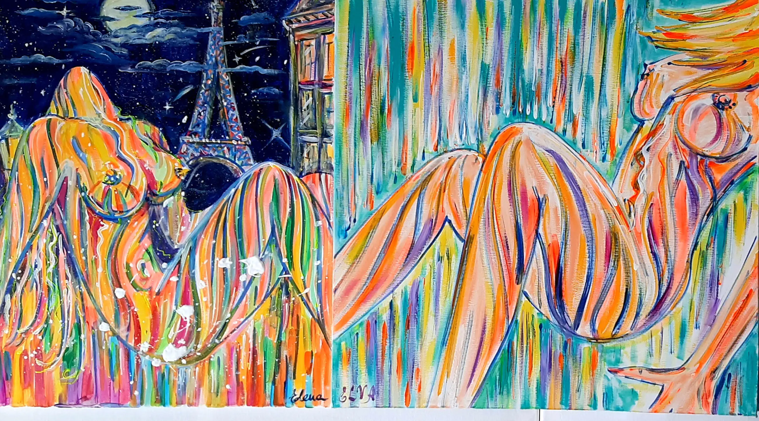 1. In Paris - acrylverf op doek 50x40 cm 2.Naakt in de kleur - acrylverf op 3D doek 50x50 cm