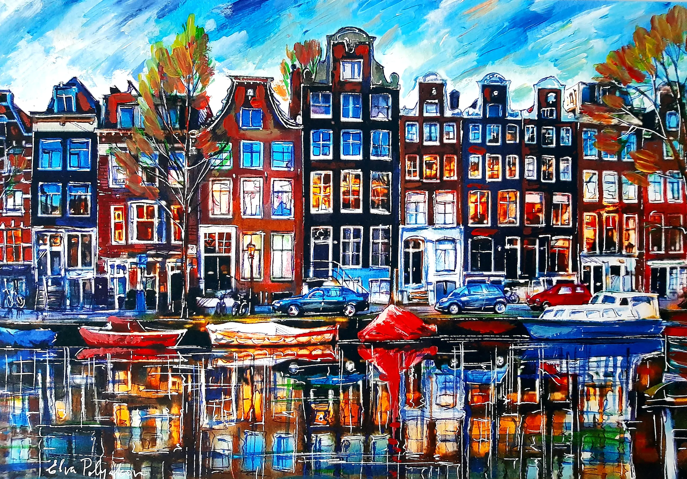 De kunstenaar zoekt de emotie van licht en beweging. Techniek op grens expressieve en impressionistische schilderijen, met zijn eigen unieke stijl.