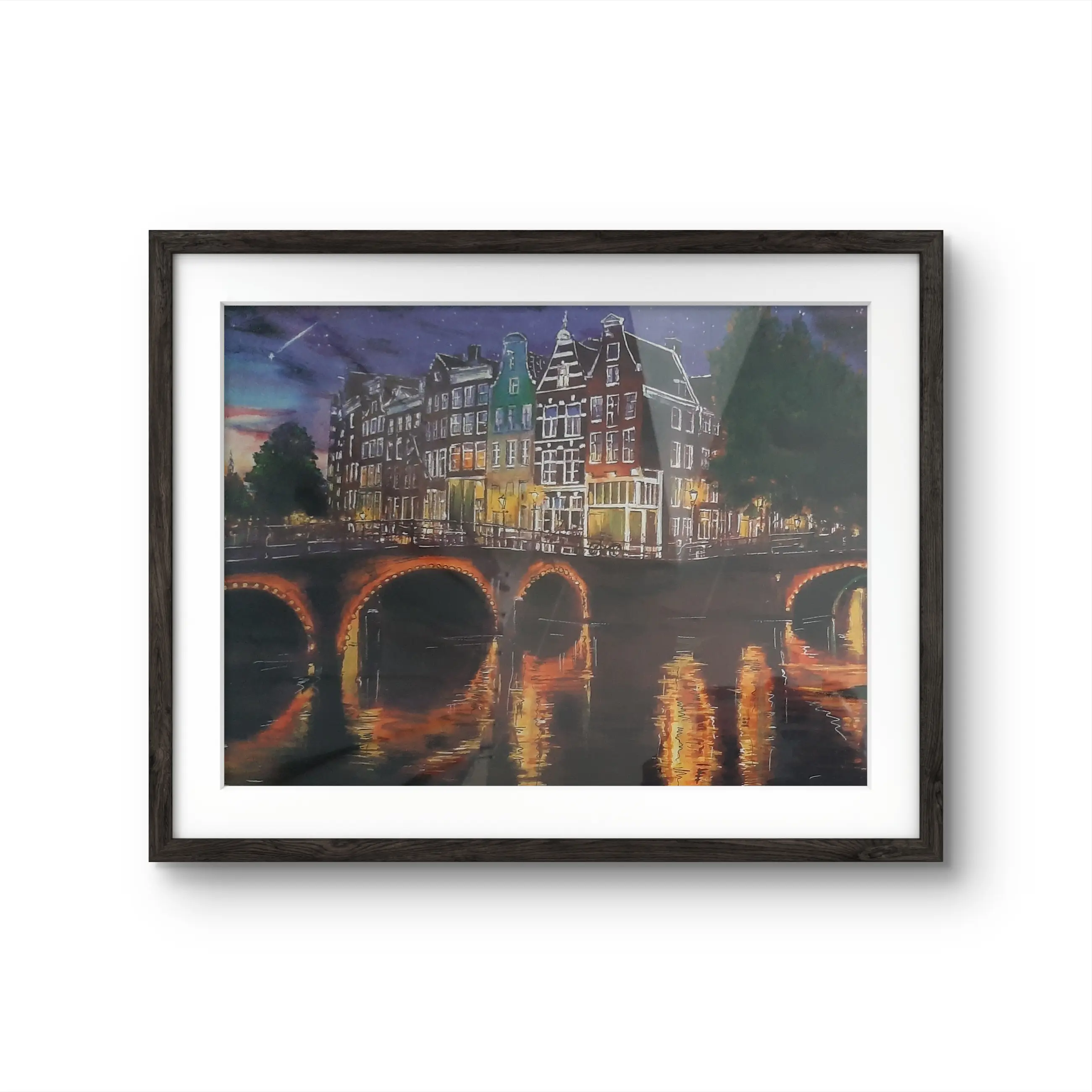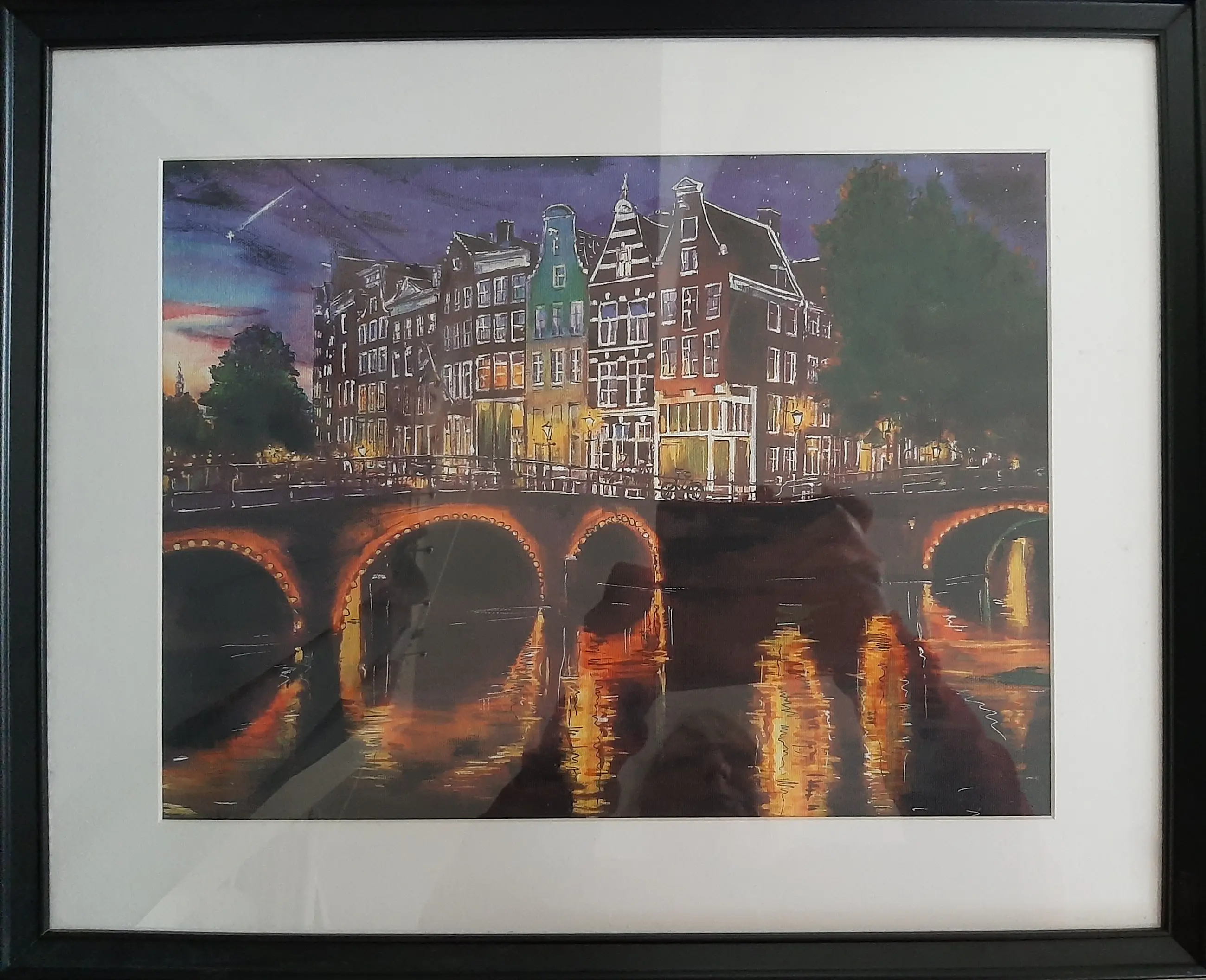 Een prachtige schilderij , mixed media : aquarel, acrylverf en inkt boven giclee ( oplage 3/10) op canvas achter glas, gesigneerd. Elke werk zijn uniek. Certificaat met kunstenaar handtekening inbegrepen.
