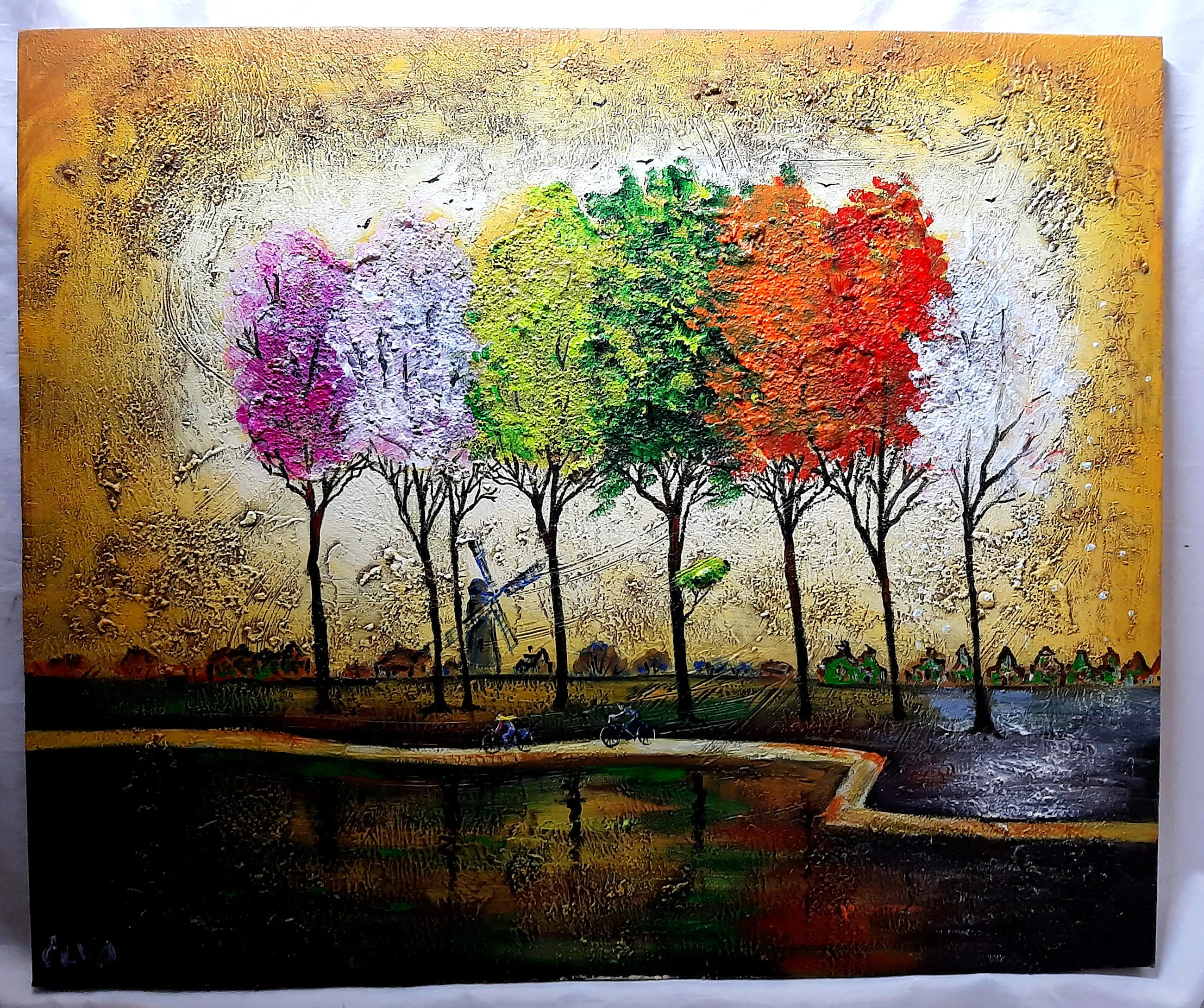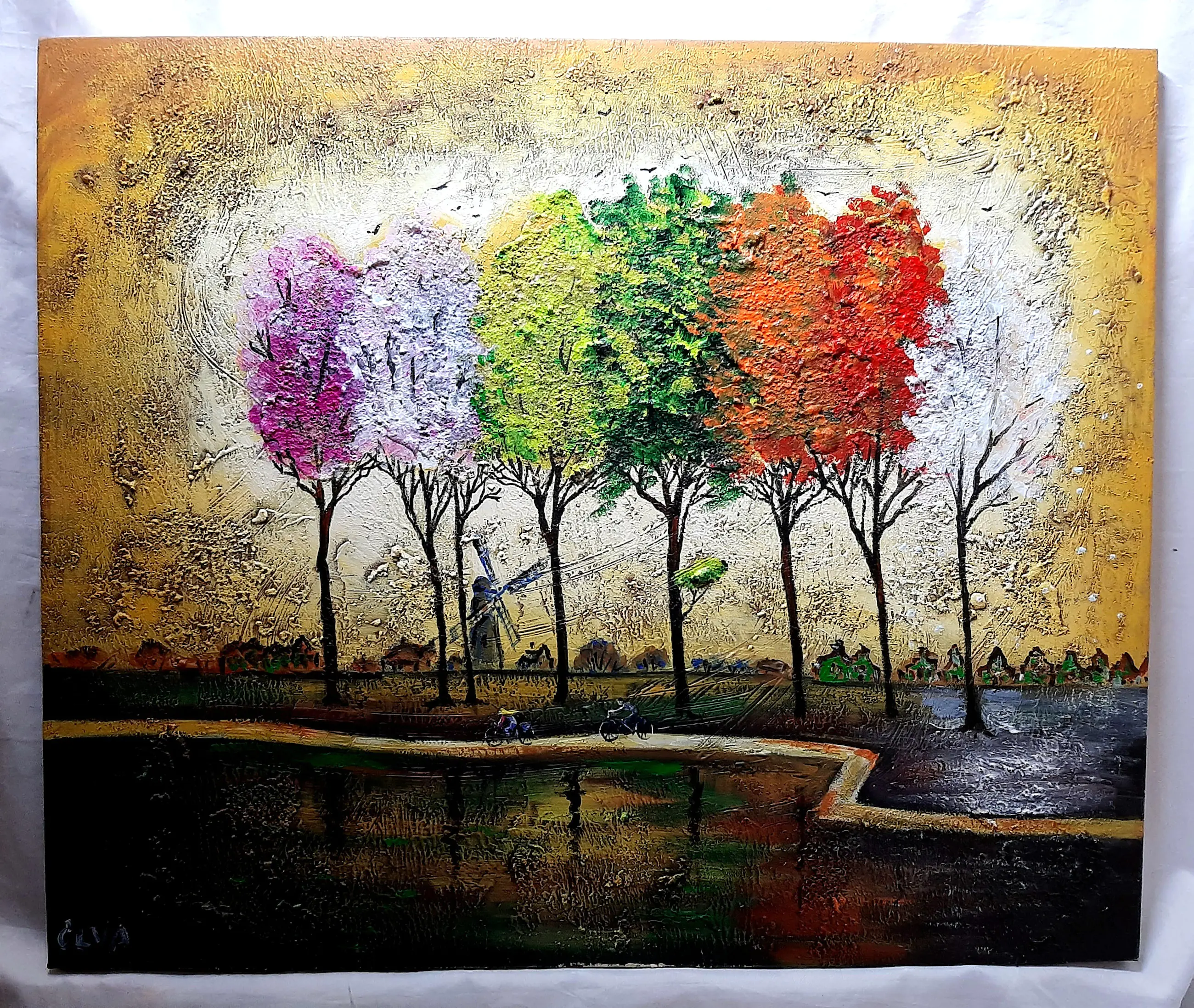 Dit prachtige schilderij behoort tot het penseel van de beroemde Nederlandse schilderes Elva Polyakova, vroeger Elena Polyakova. Acrylverf op hoogwaardig canvas, gesigneerd "ELVA" rechtonder, medeondertekend op de achterkant. Dit kunstwerk is gemaakt in de beste tradities van de Europese schilderkunst. Een mooie combinatie van lyriek en expressieve energie van kleuren. ELVA is geregistreerd en vermeld in de officiële kunstgidsen. Zeer sterke rating in veilinghuizen (€900 in 2017 op Catawiki veiling, kavel NR. 9643335). Origineel en uniek kunstwerk. Verkocht met een door de kunstenaar ondertekend echtheidscertificaat. Veilig verpakt bijgehouden verzending.