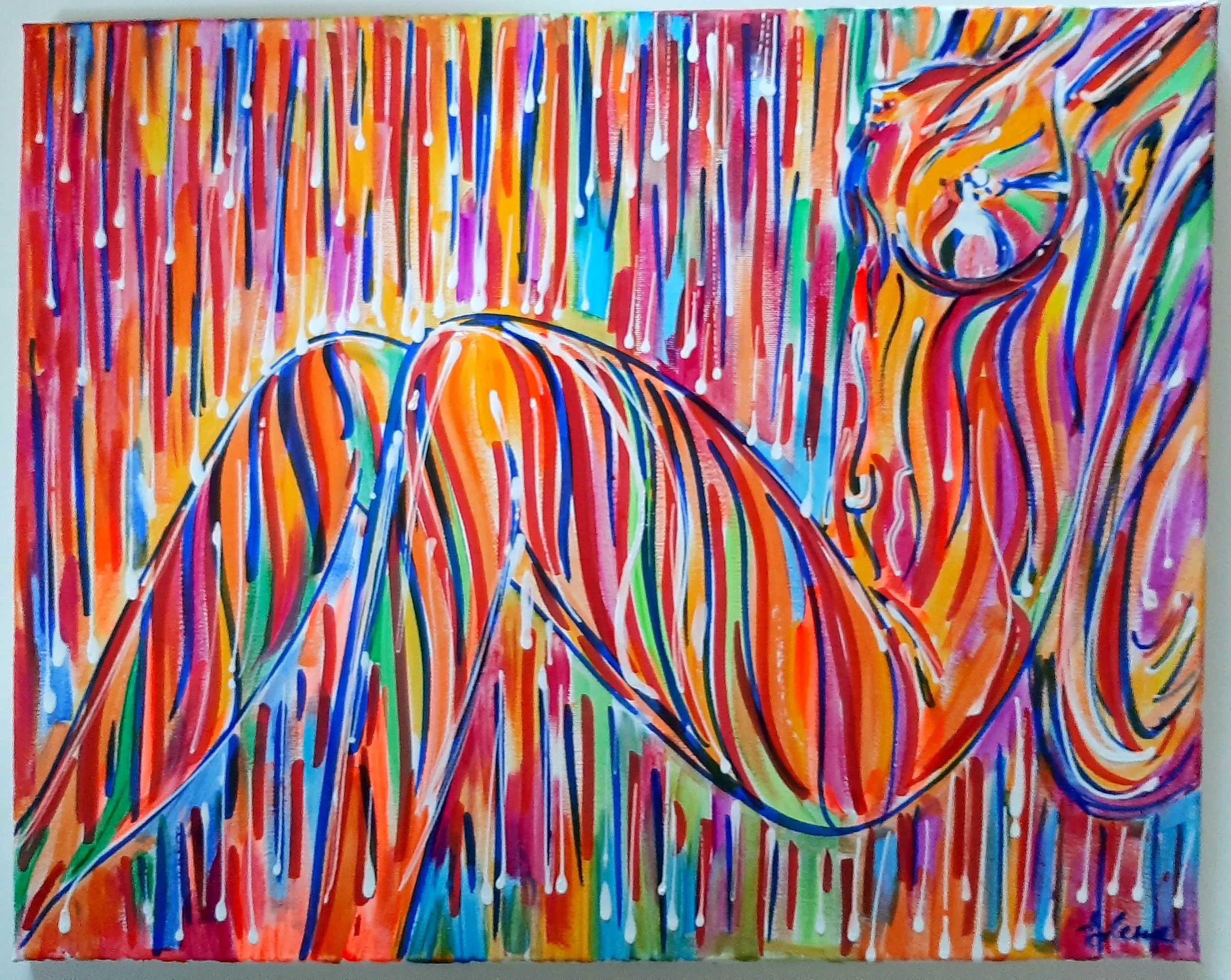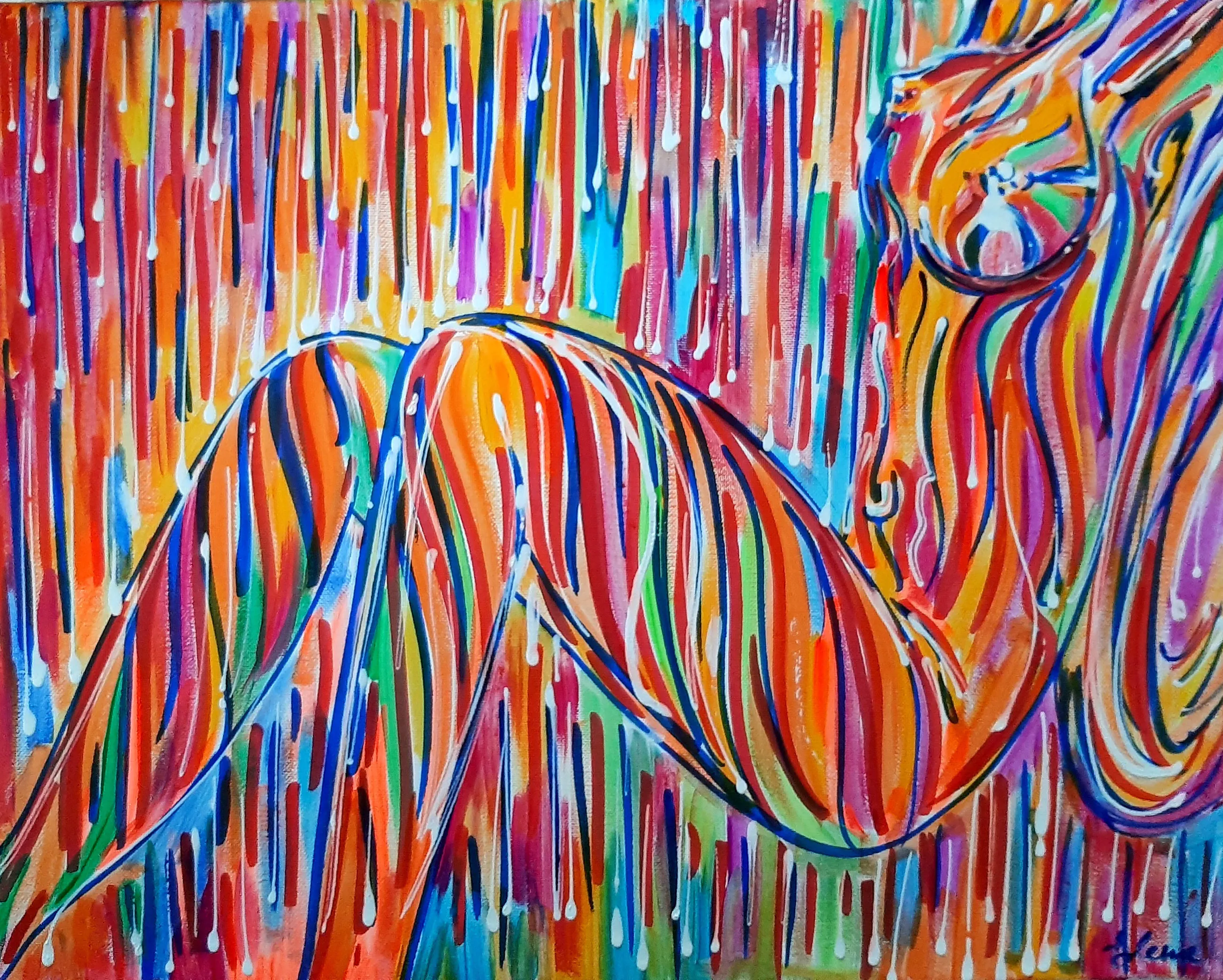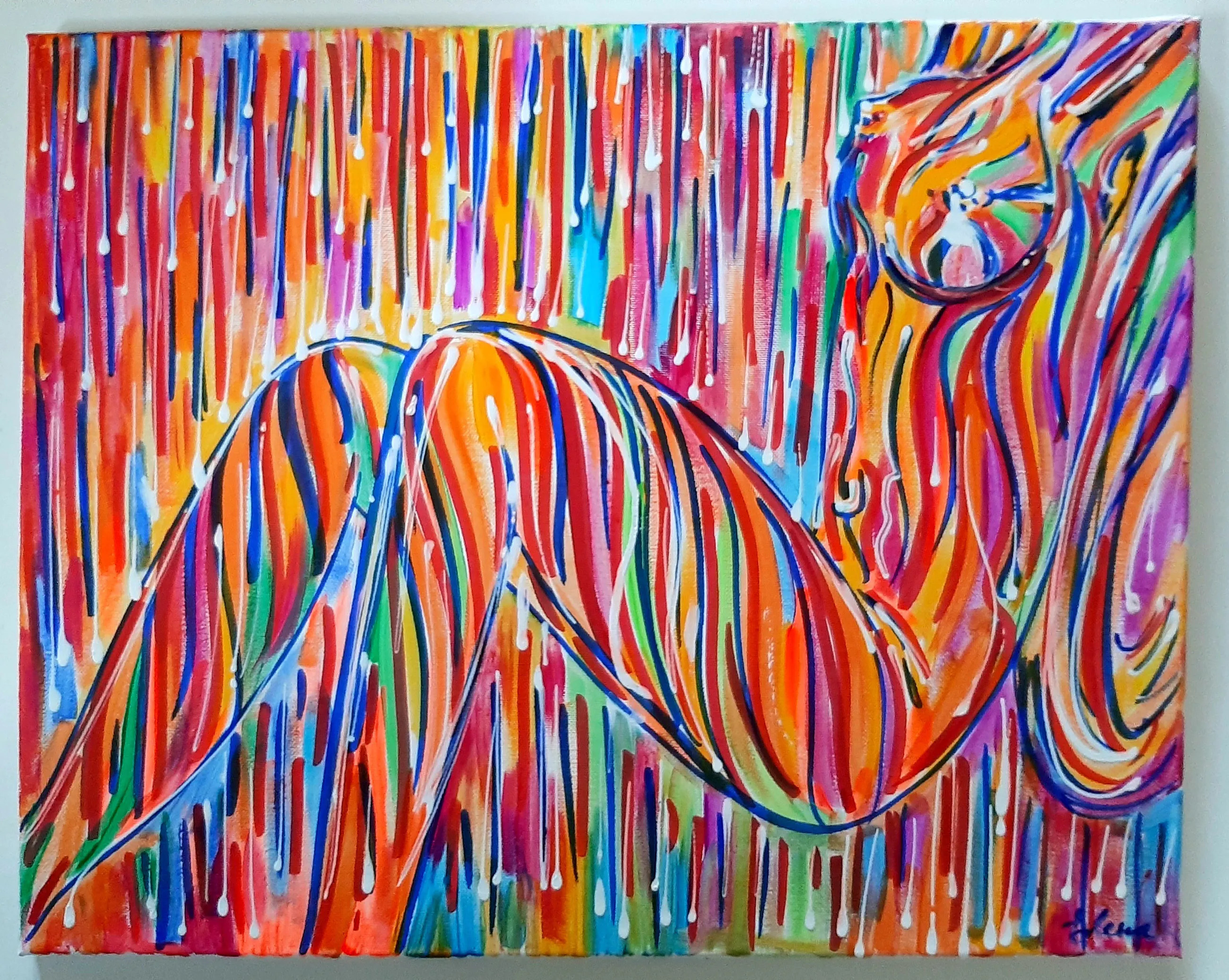 Origineel schilderij: acrylverf op doek. Ingelijst .