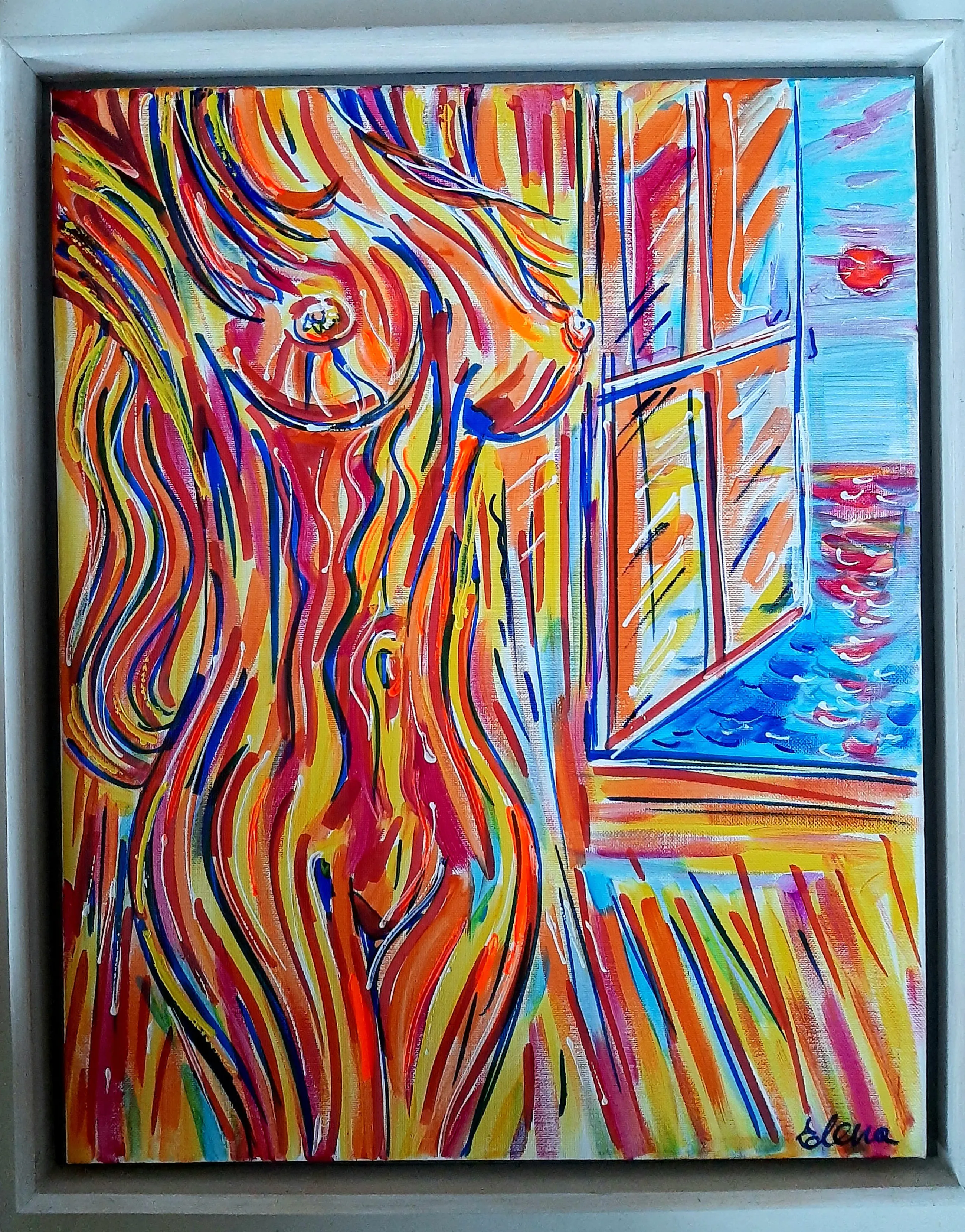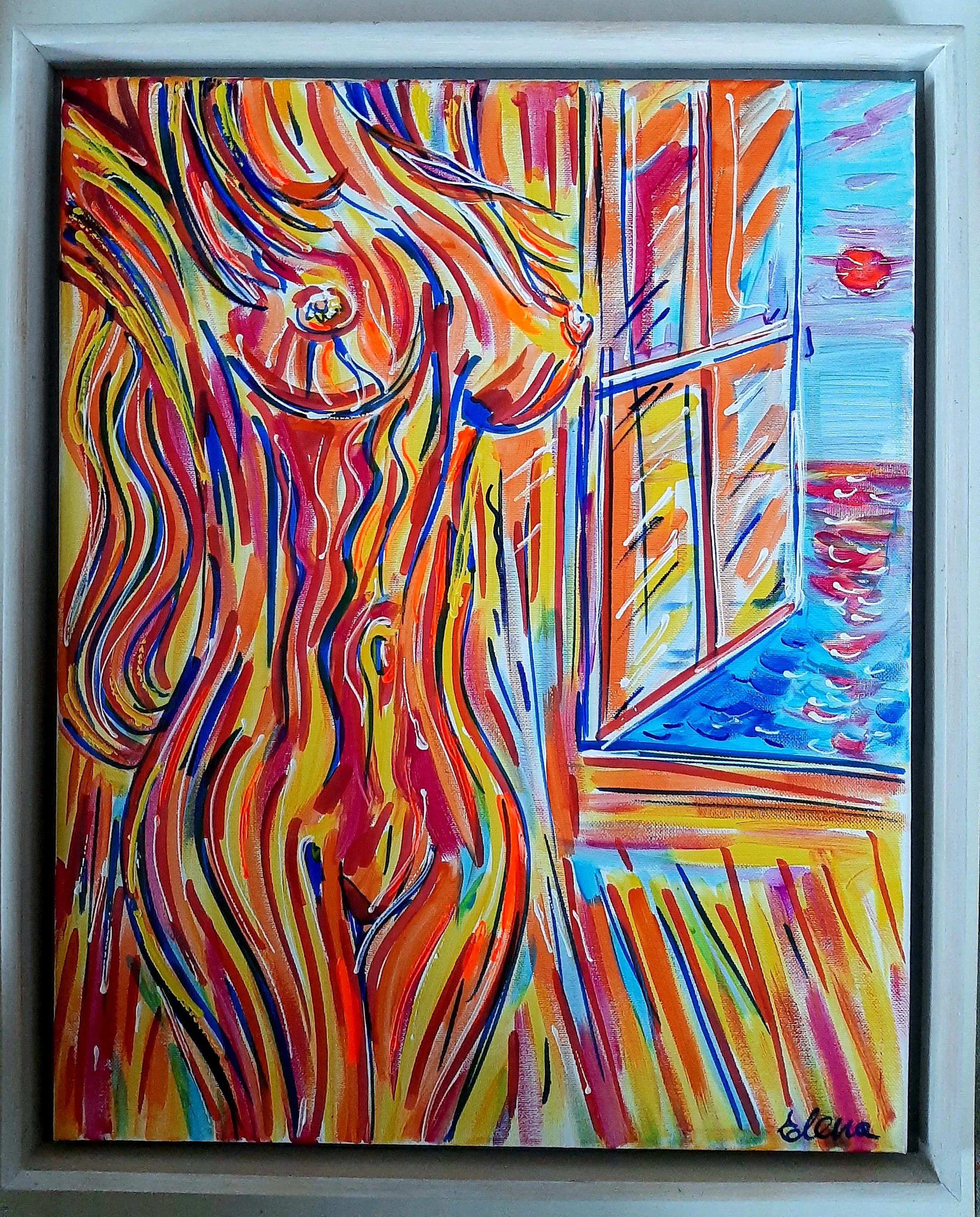 Origineel schilderij: acrylverf op doek. Ingelijst .