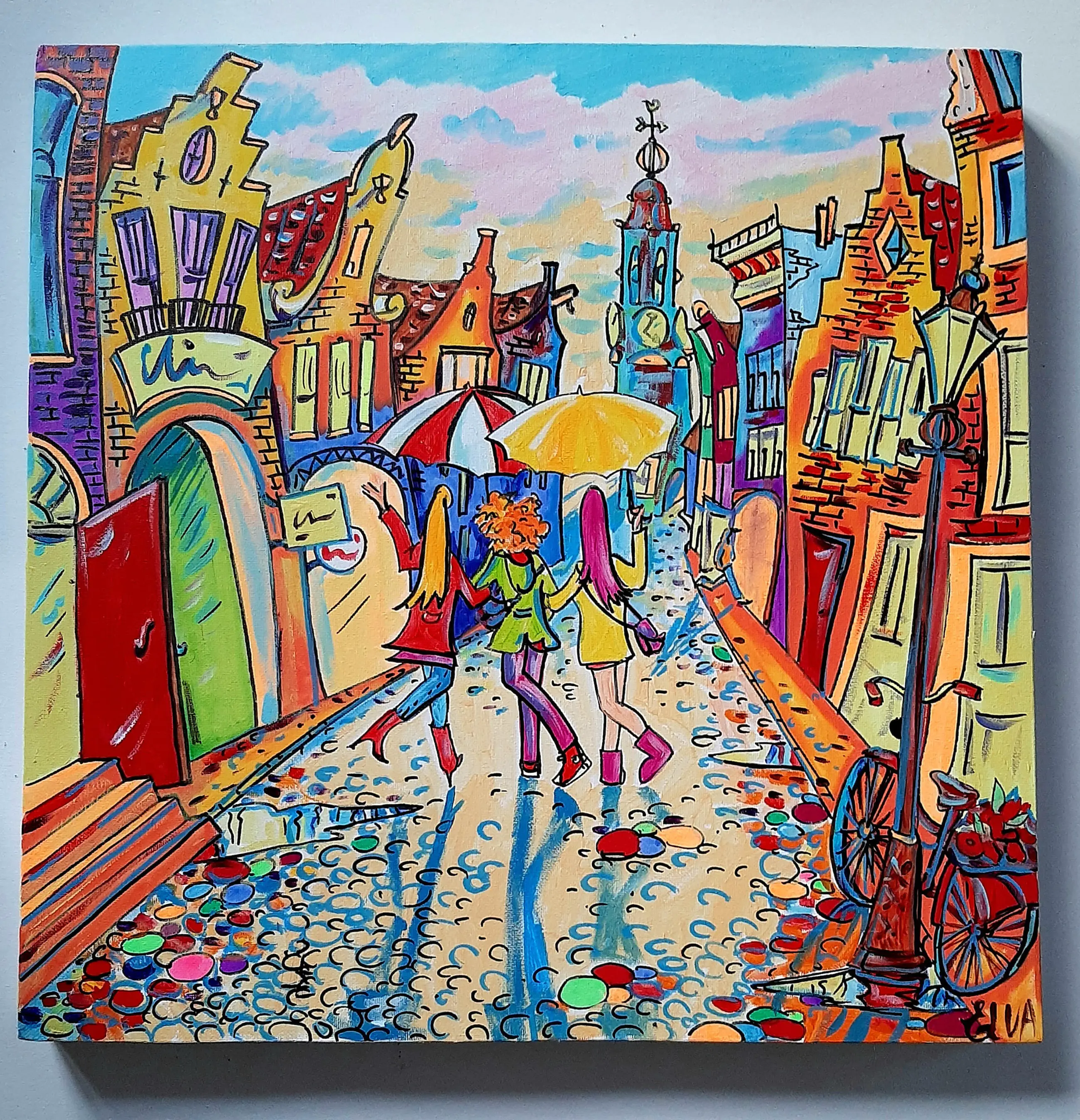 Dit prachtige schilderij behoort tot het penseel van de beroemde Nederlandse schilderes Elva Polyakova, vroeger Elena Polyakova. Acrylverf op 3 D canvas, 50 x 50 x 4 cm, gesigneerd "ELVA" rechtonder, medeondertekend op de achterkant.