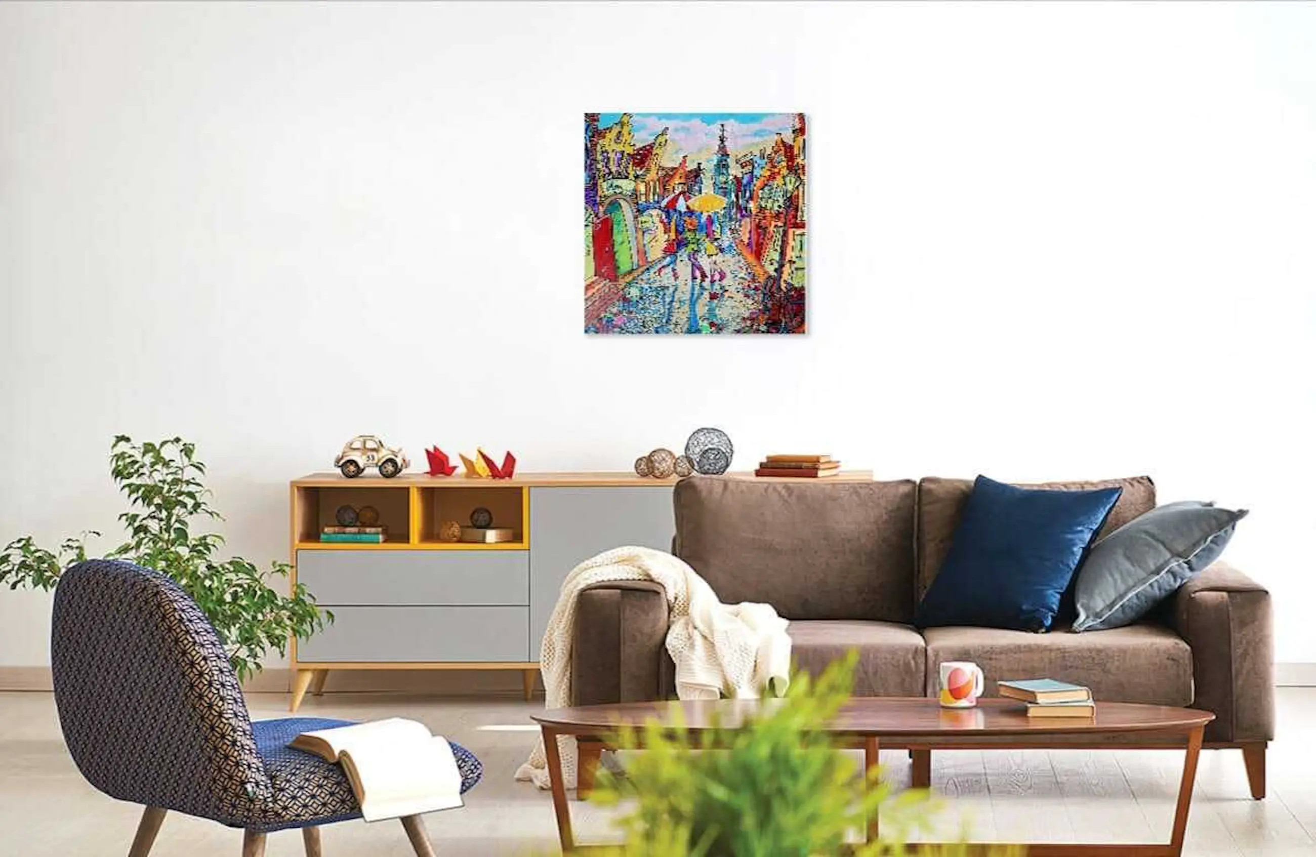 Dit kunstwerk is gemaakt in de beste tradities van de Europese schilderkunst. Een mooie combinatie van lyriek en expressieve energie van kleuren.