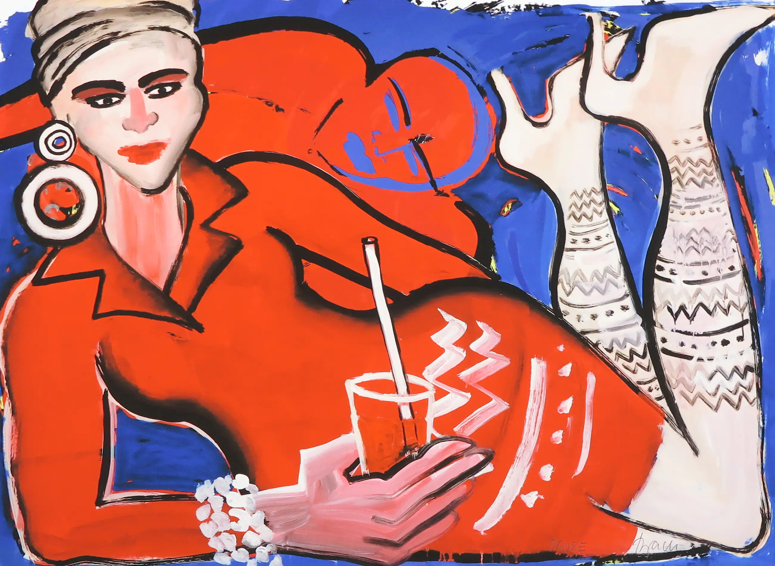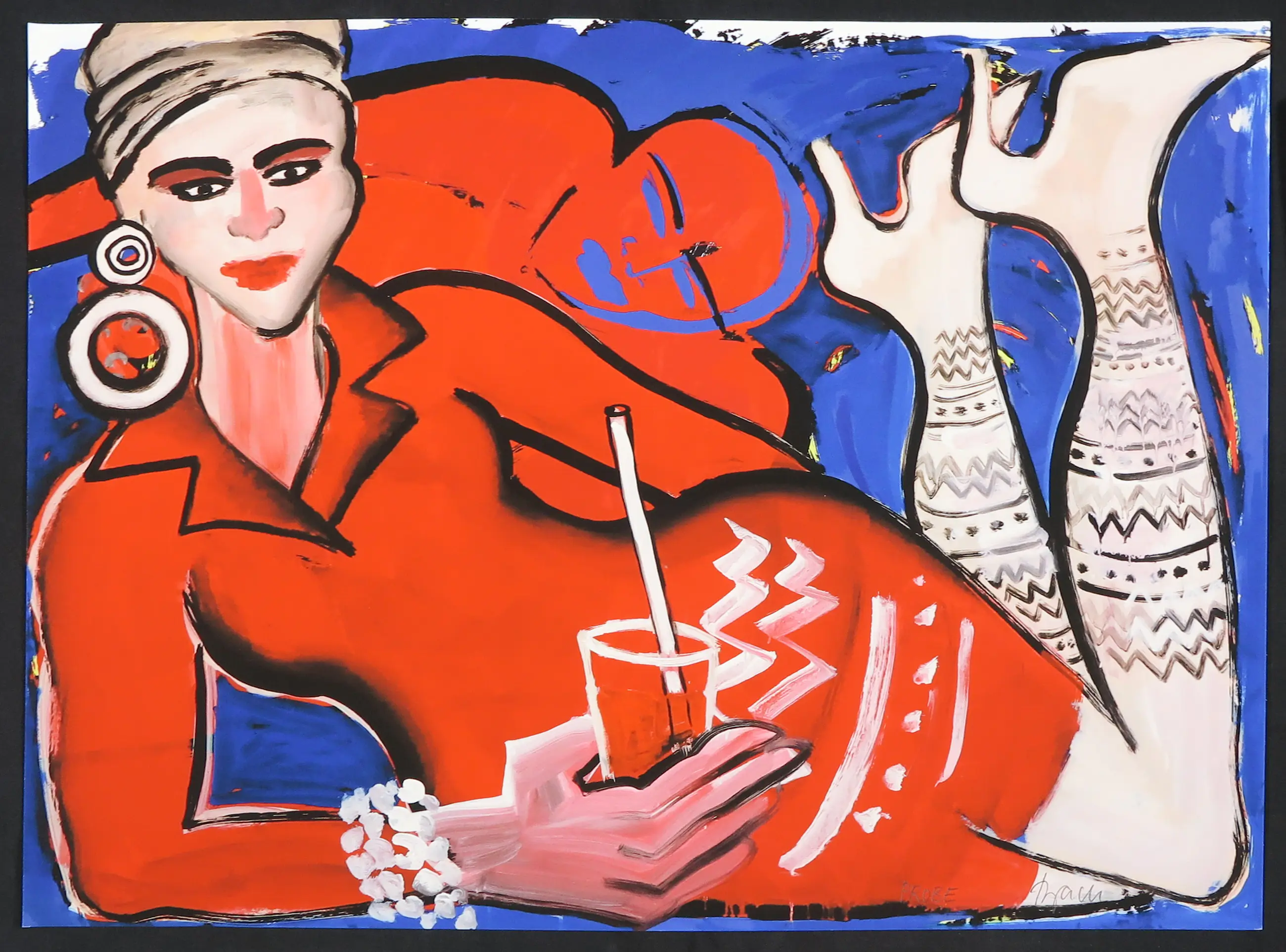 Signierter Druck von Elvira Bach mit für sie charakteristischen Bildelementen.