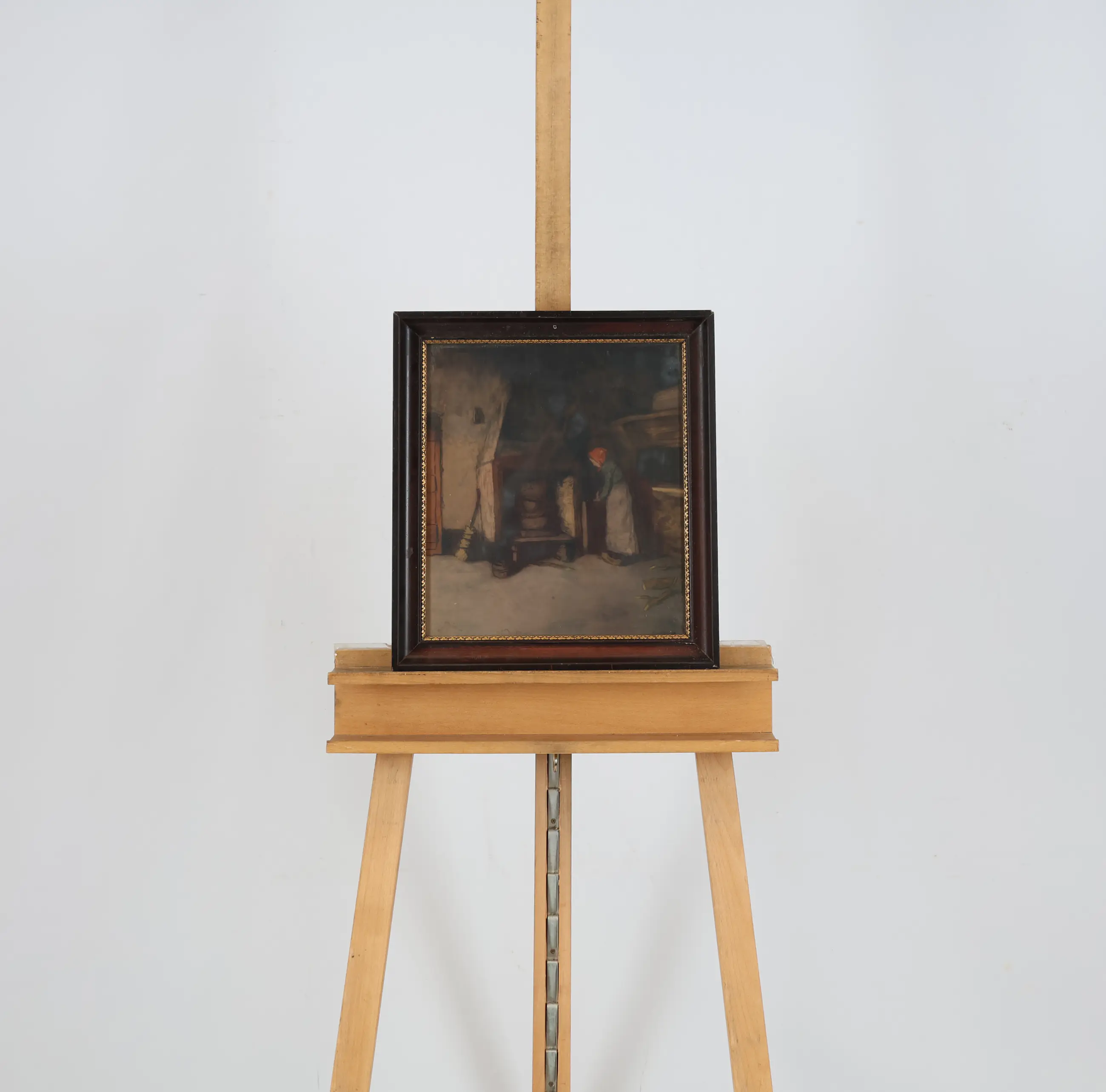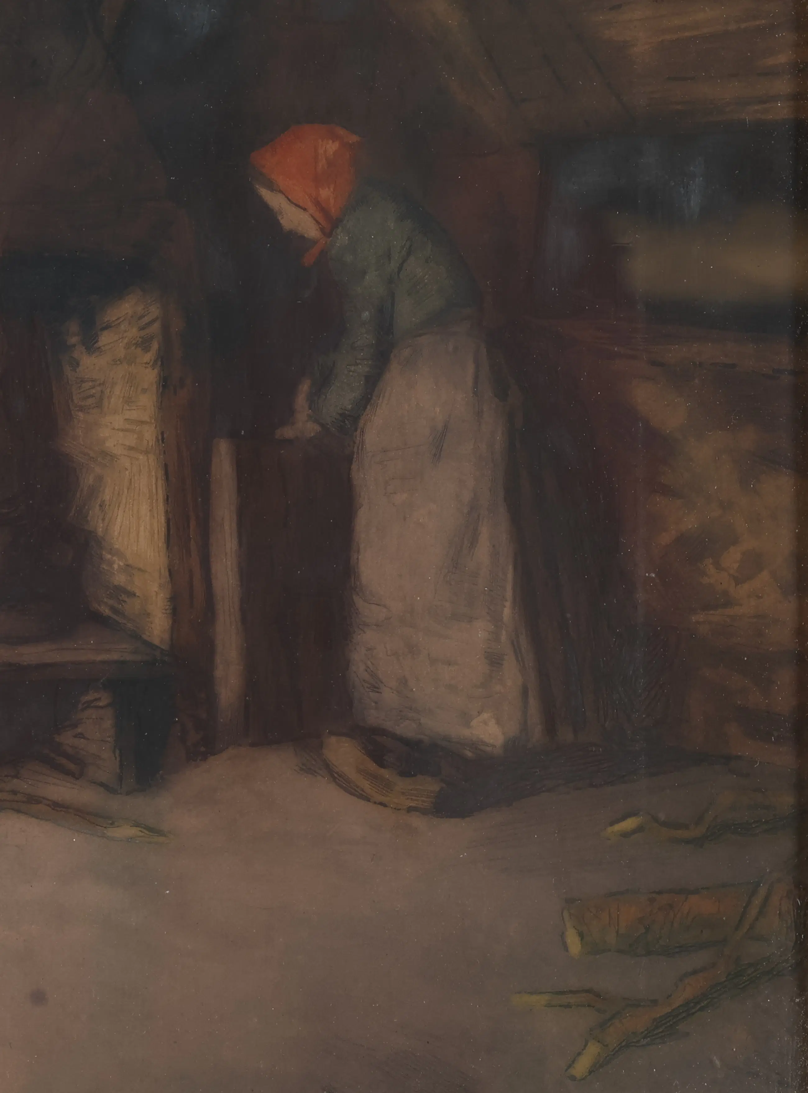Deze lithografie biedt een inkijkje in een negentiende-eeuws huishouden en is gemaakt door Emanuel van Beever. Van Beever was schilder, tekenaar, etser en graficus, bekend om zijn boerderijstillevens, interieurs, dorps- en stadsgezichten. Vooral zijn sfeervolle interieurstukken waren geliefd en vonden zelfs hun weg naar Engeland en Canada.