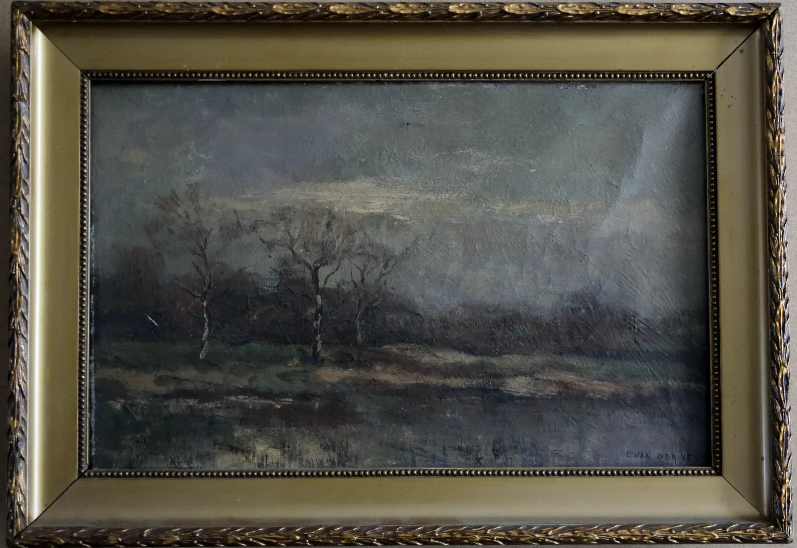Gesigneerd met : E. van der Ven rechtsonder.