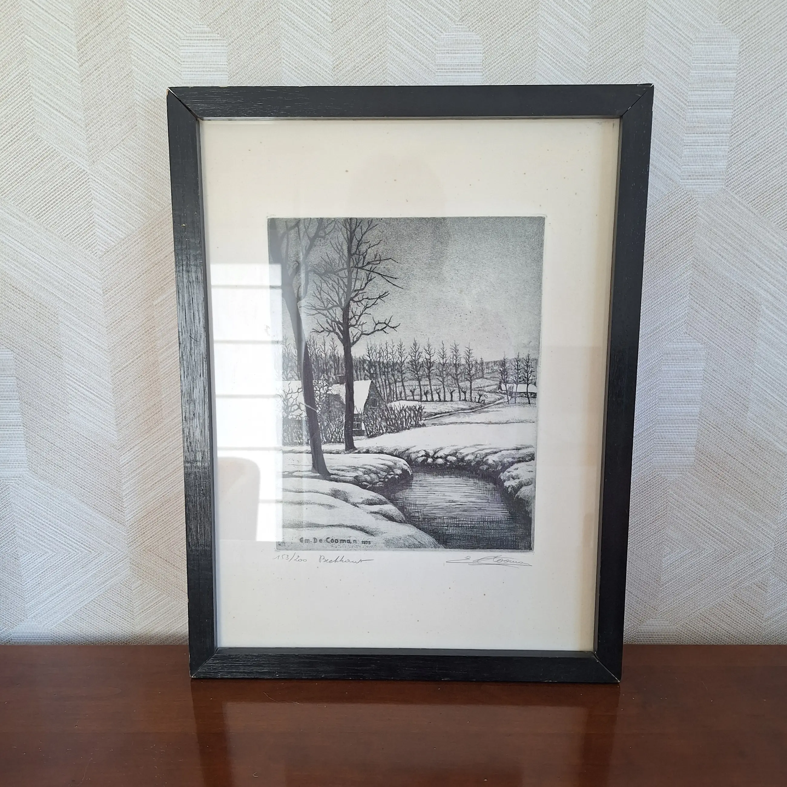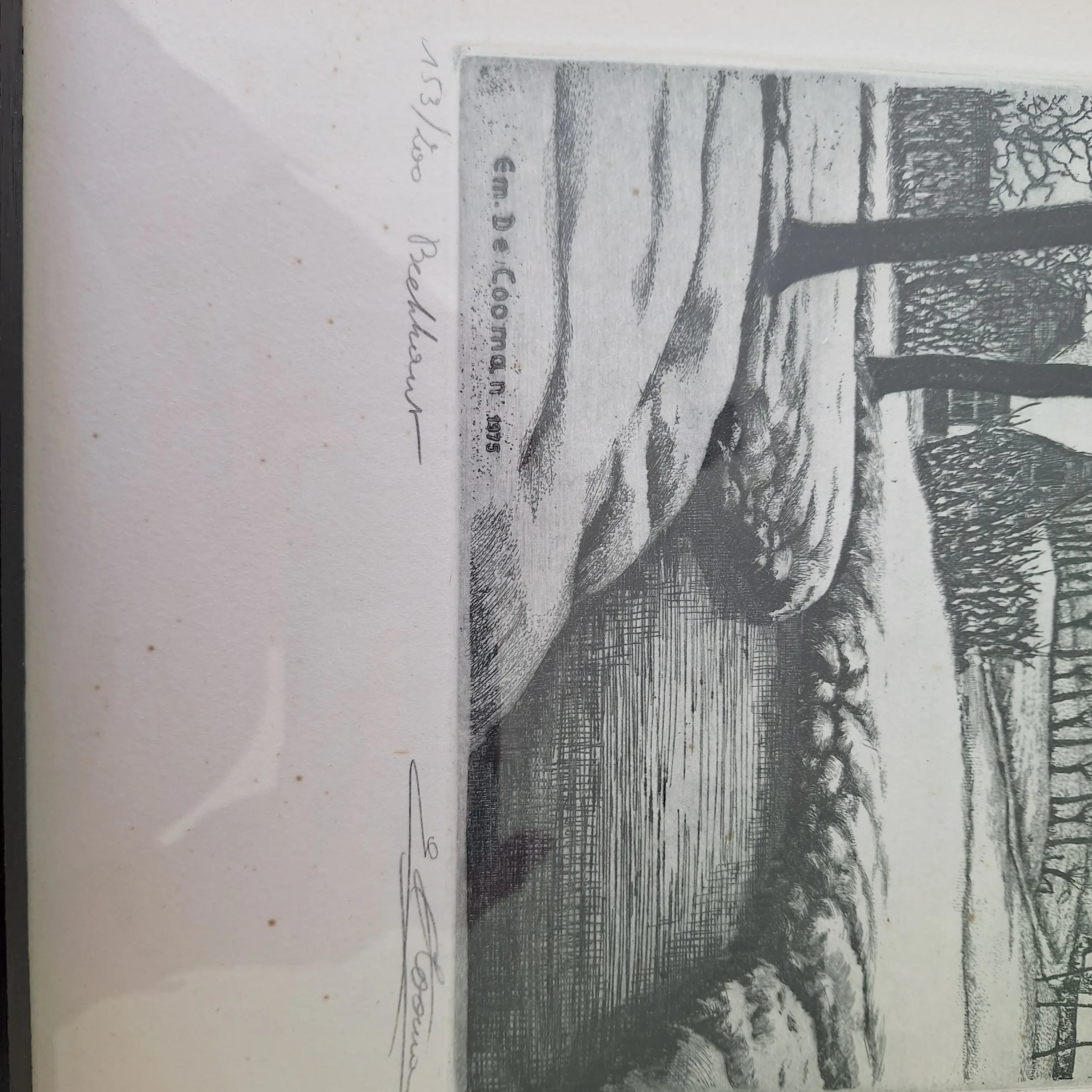 Dit is een ingelijste ets van de Belgische kunstenaar Emiel De Cooman (1922-2021).