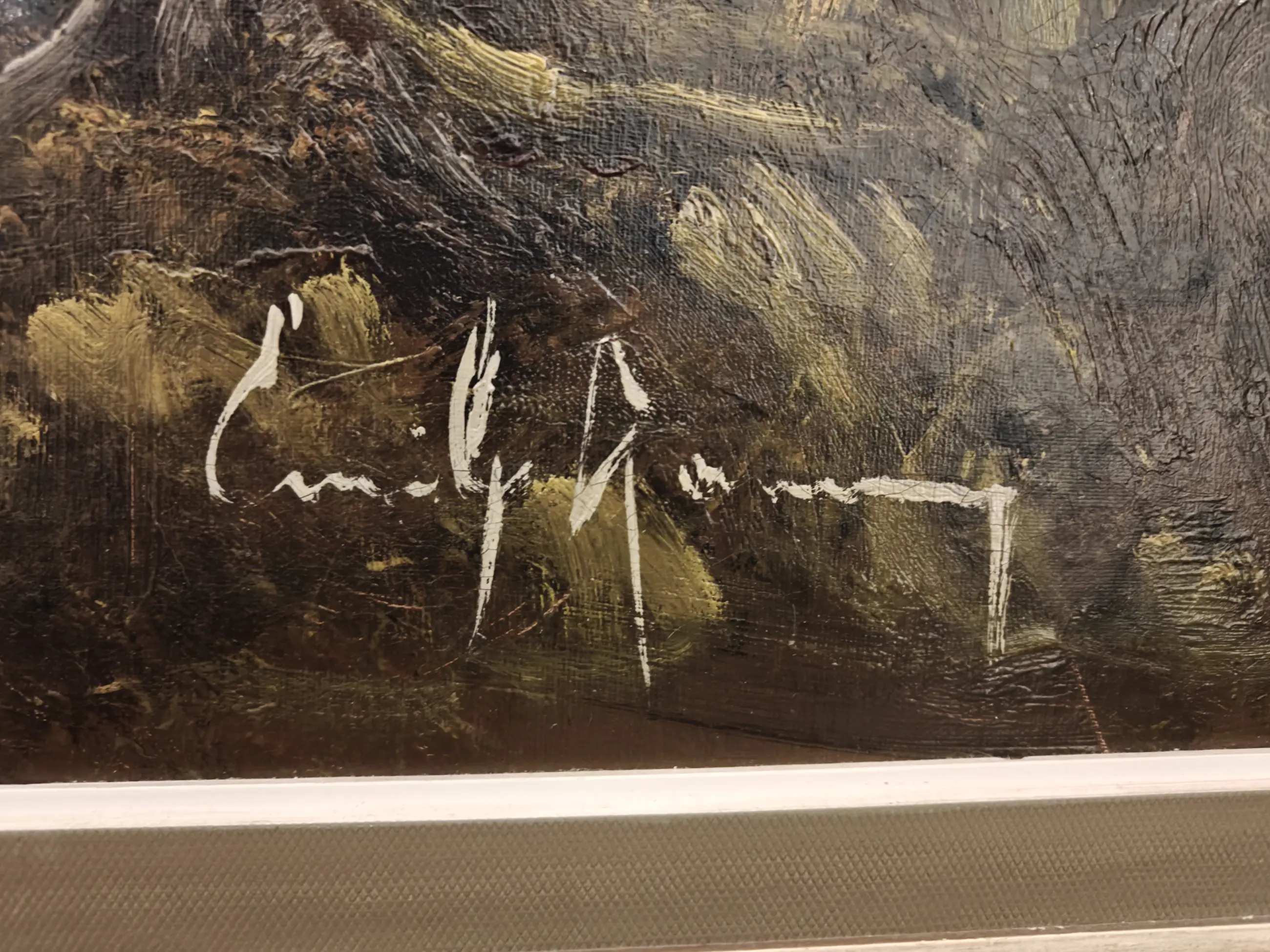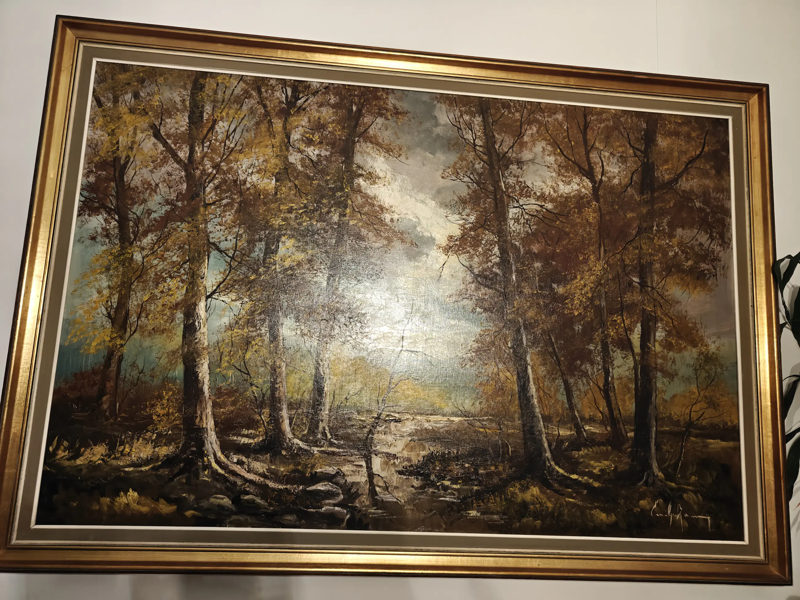 Schilderij van Emiel Lammers. Olieverf op doek, ingelijst. Afmetingen 164x114 incl lijst. Gerestaureerd in 2018.