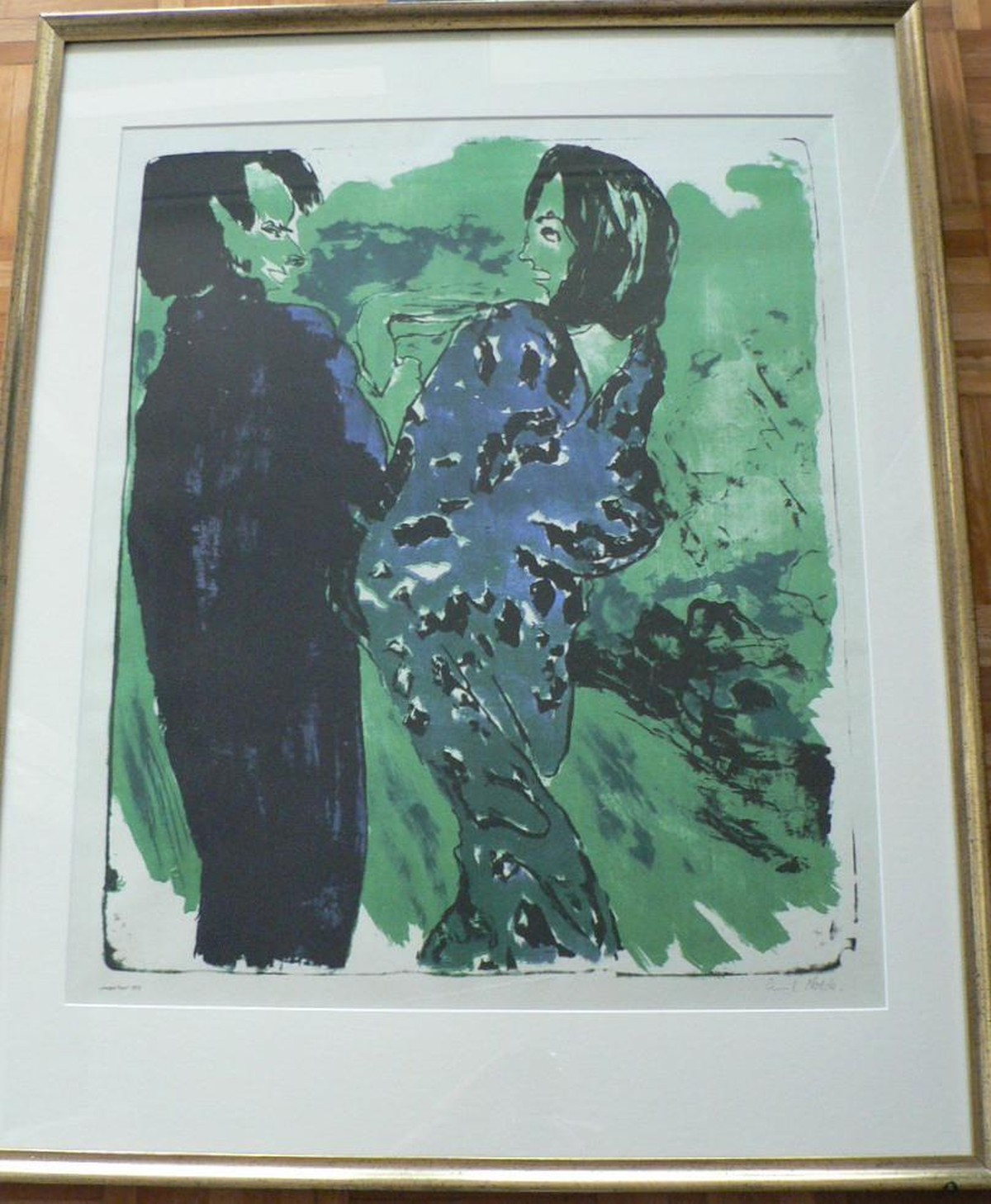 Offset Litho von Emil Nolde mit aufweniger Galerierahmung links unten bez. Junges Paar 1913