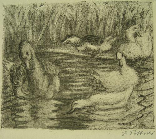 Emil Pottner - 5 Enten im Wasser und am Ufer, Radierung,handsign.