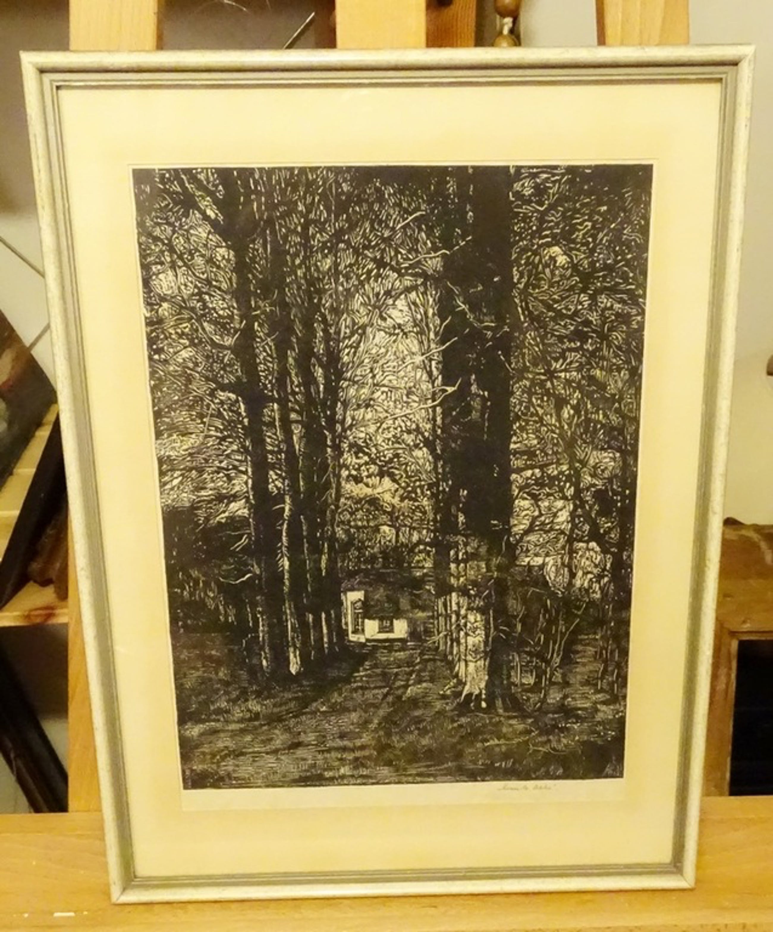 Mooie compositie met majestueuze bomenlaan. Het werk is in prima staat.