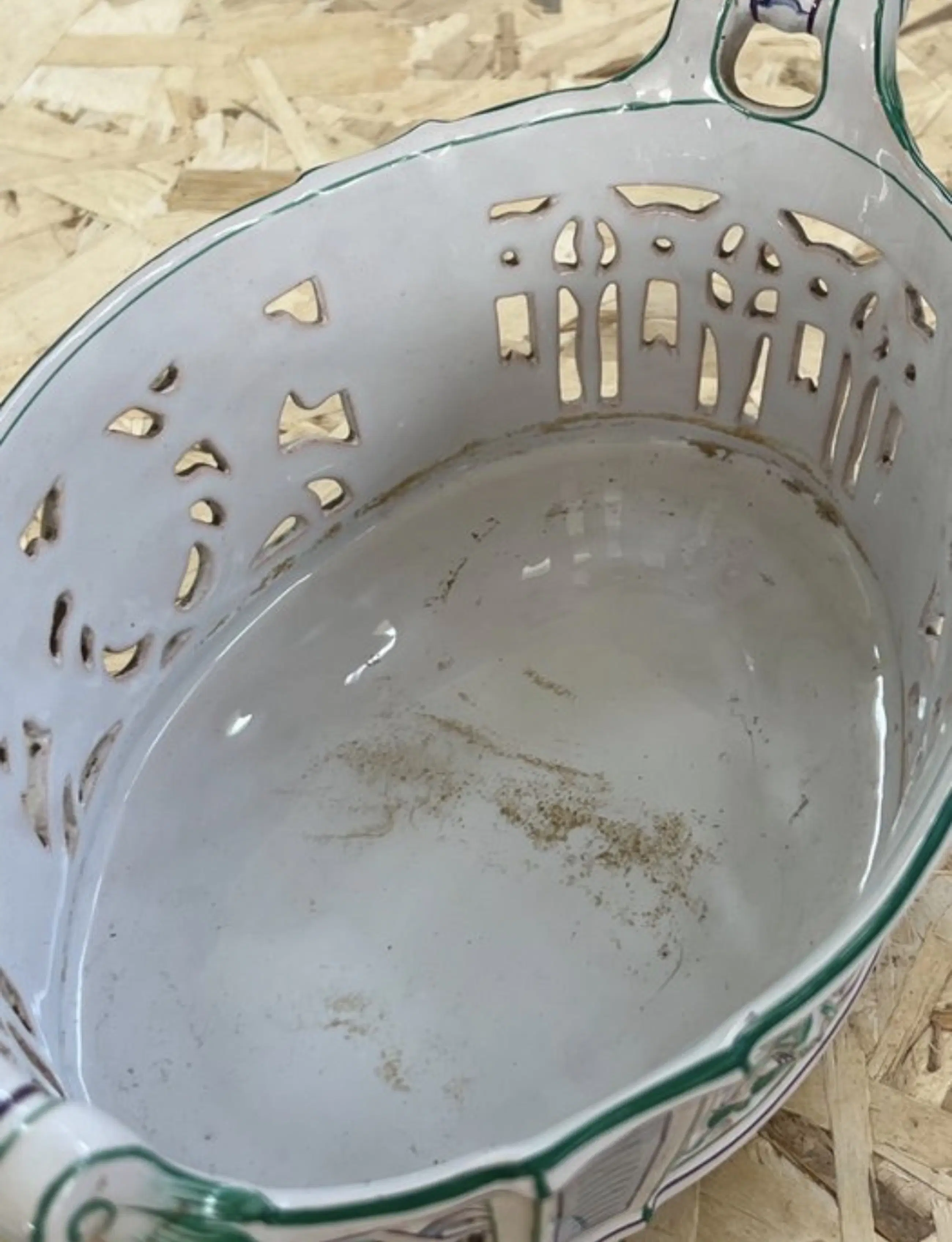 Breng een stuk Franse kunstgeschiedenis in huis met deze prachtige, handbeschilderde aardewerk jardinière (tafelstuk). Dit verfijnde object is het resultaat van de samenwerking tussen de iconische ontwerper Émile Gallé en de prestigieuze faience-fabriek Saint-Clément.