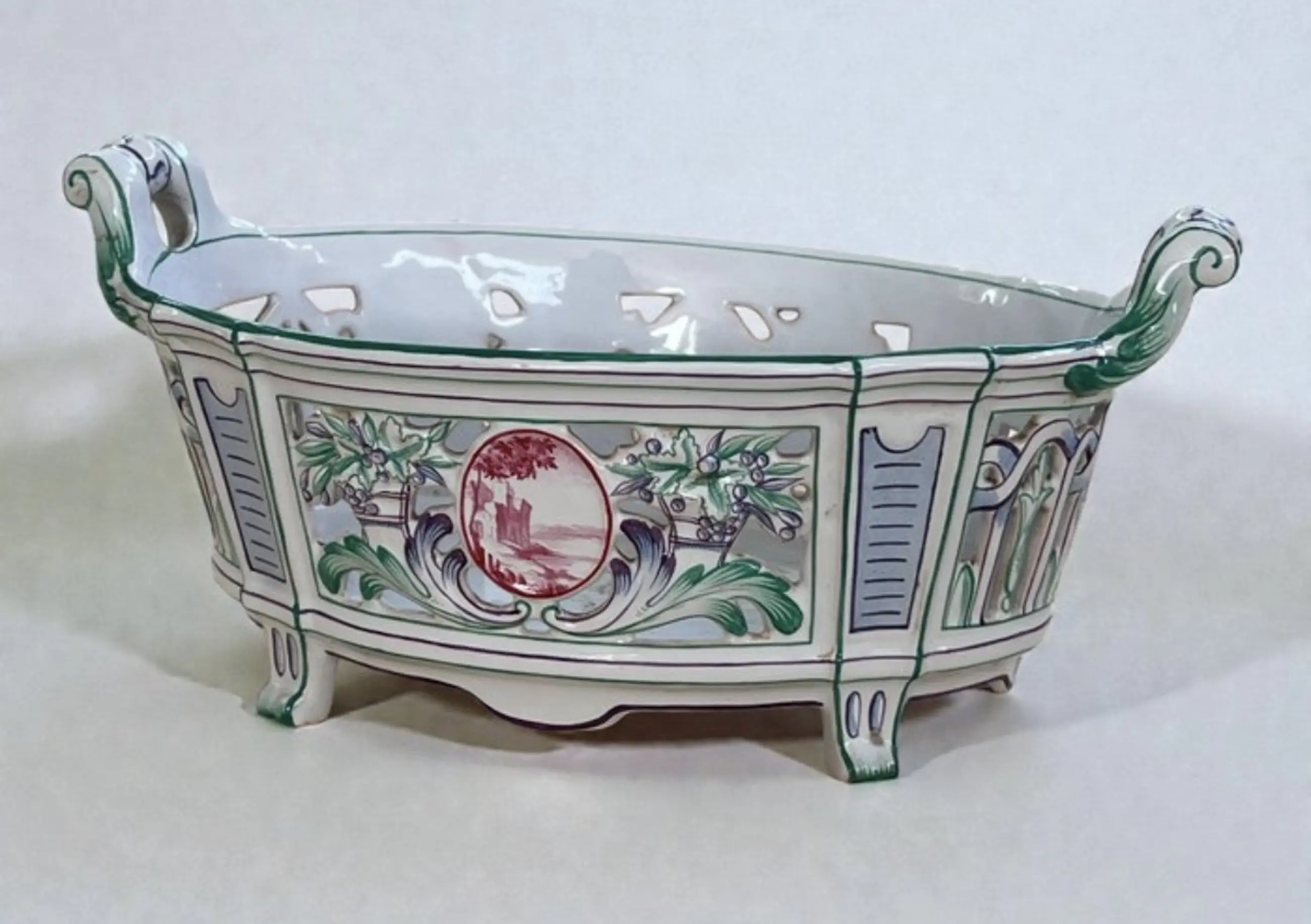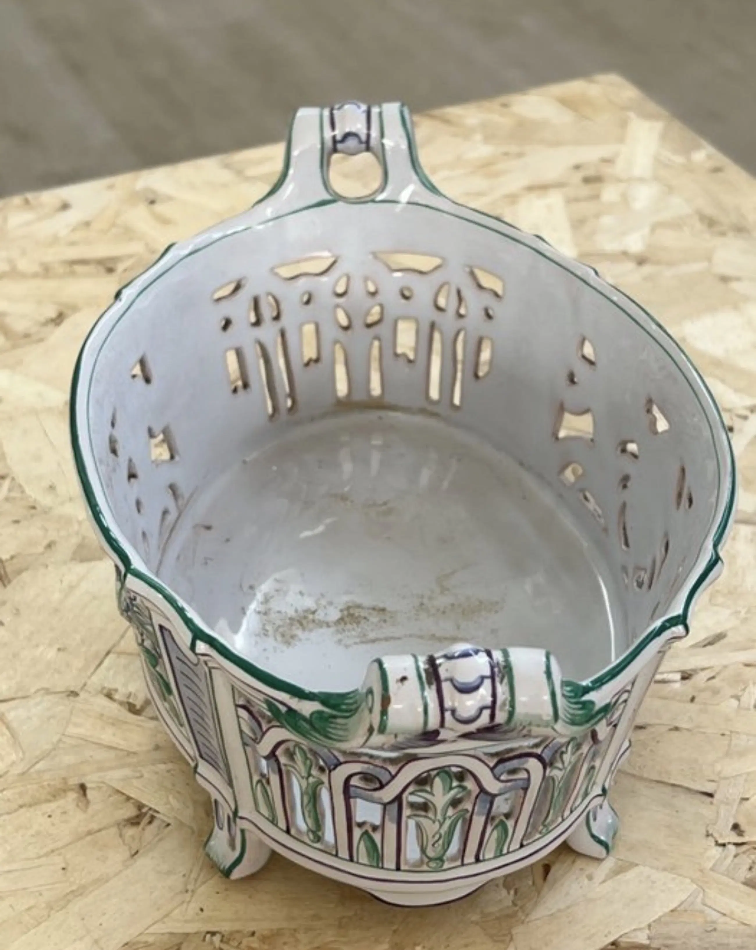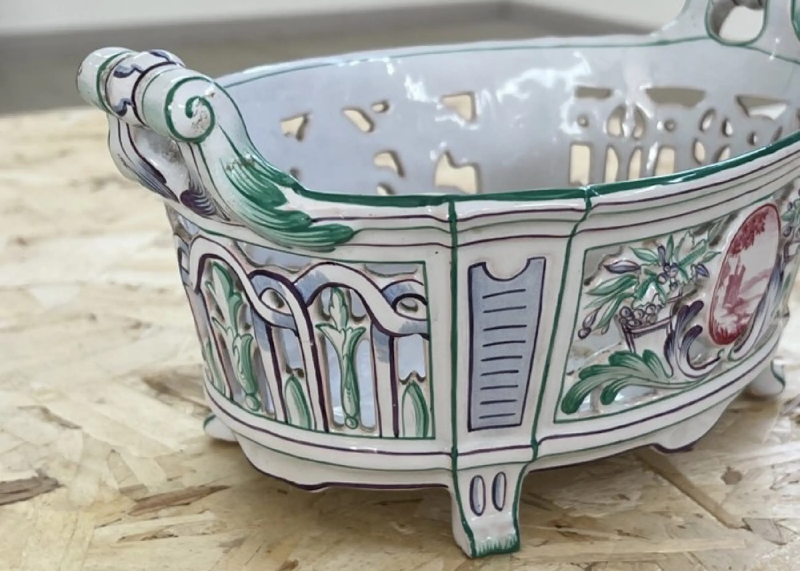Dit stuk stamt uit de periode voordat Gallé zich volledig op glaswerk richtte. Het toont zijn vroege beheersing van vorm en kleur in keramiek. De combinatie van het delicate vlechtwerk (pierced work) en de schilderkunstige details maakt dit tot een museaal object dat in elk klassiek of eclectisch interieur de aandacht trekt.
